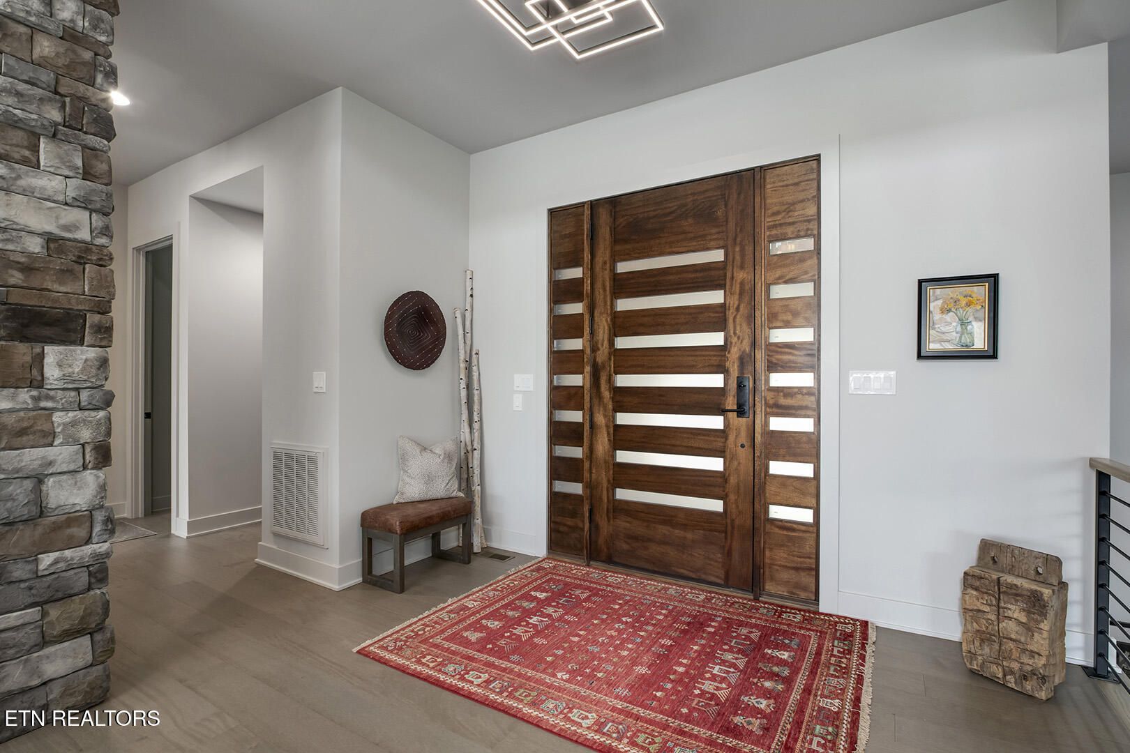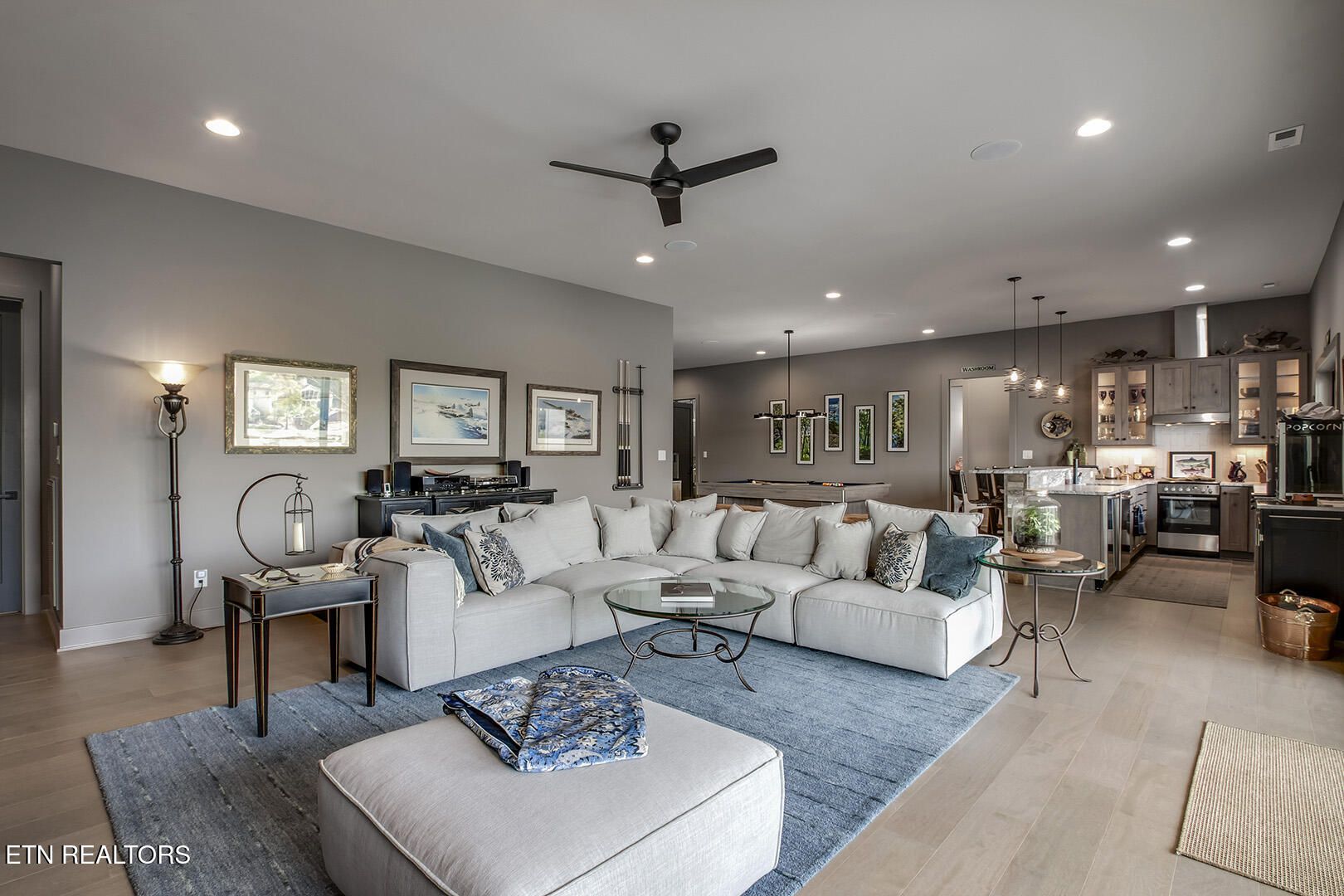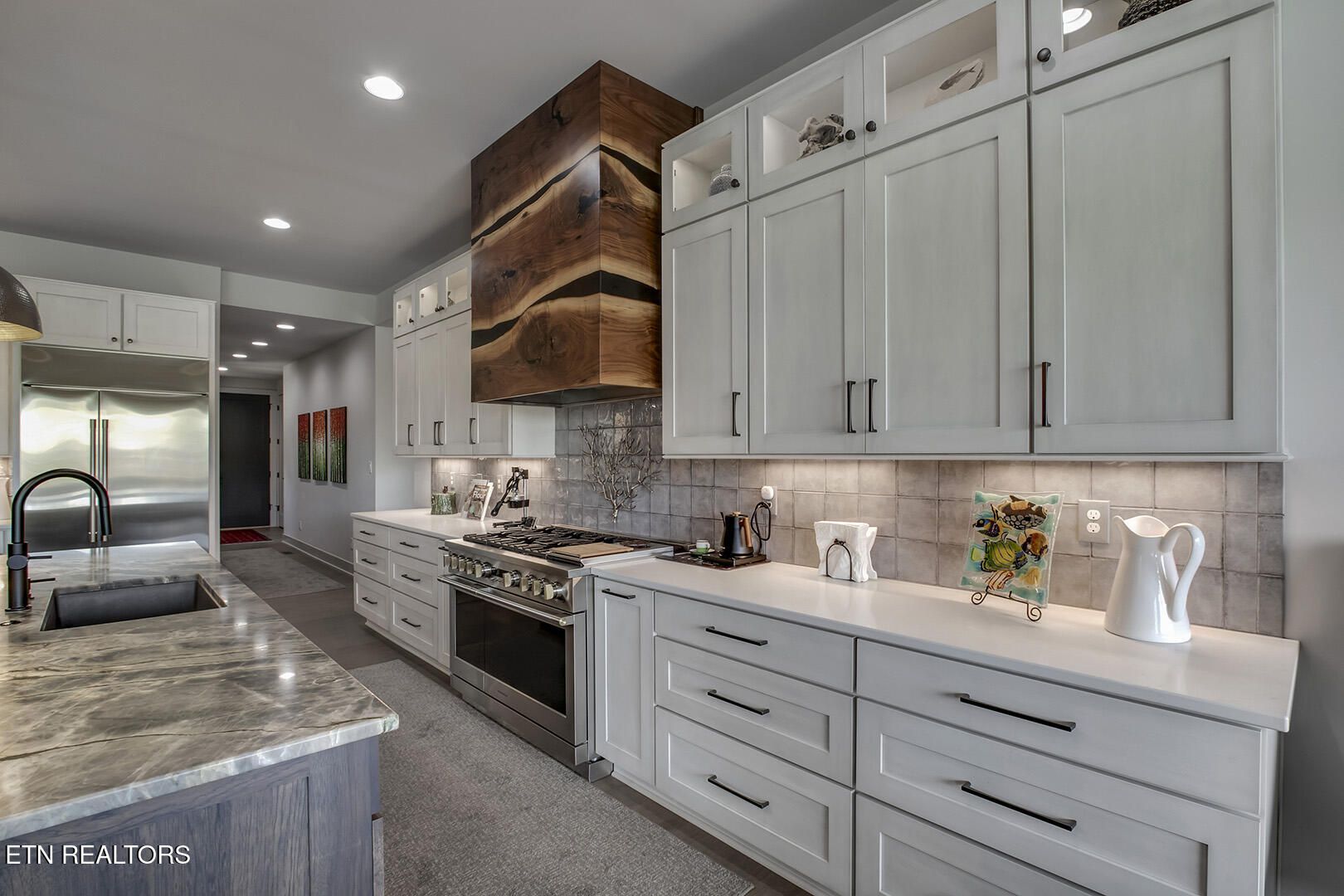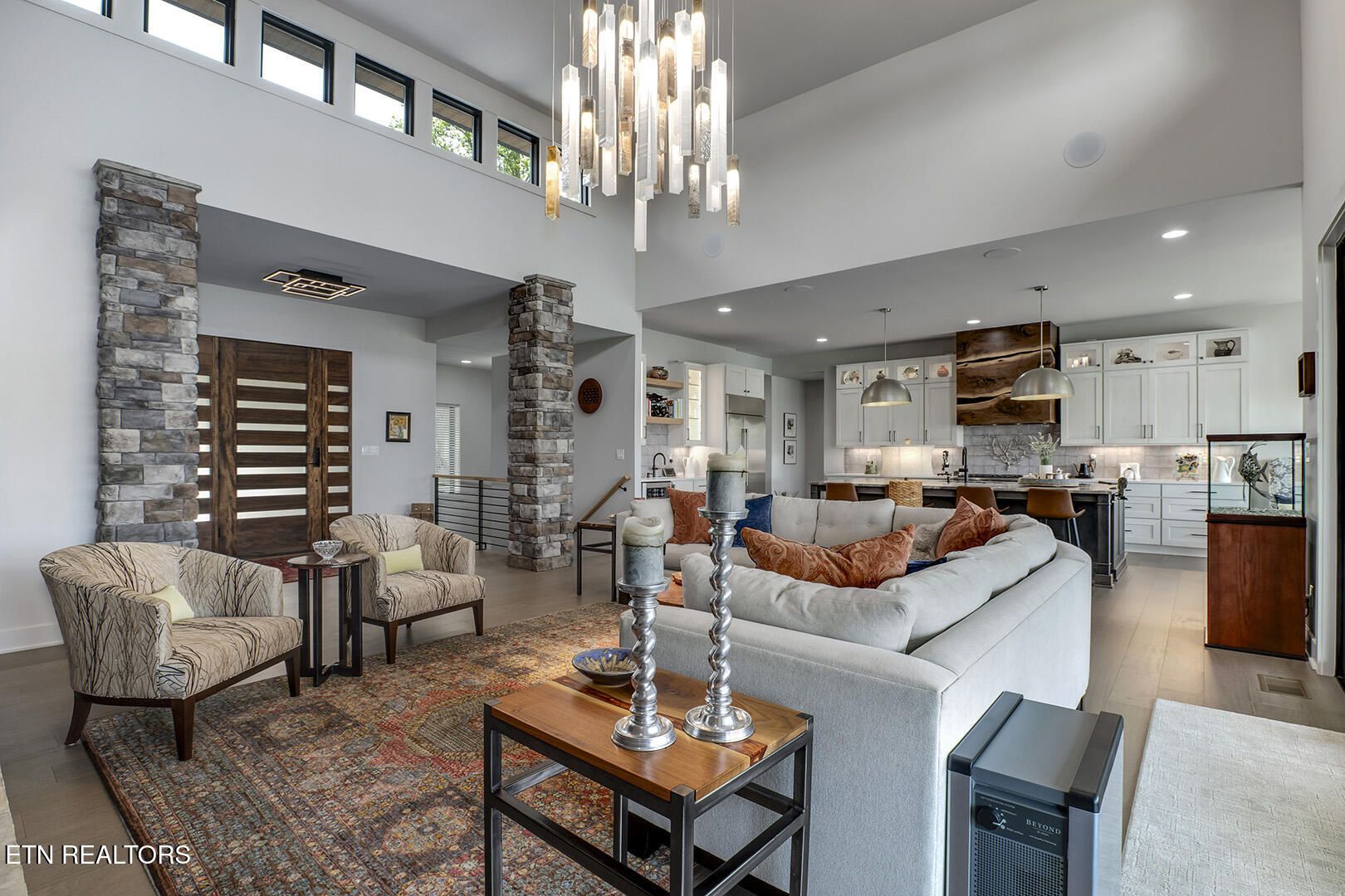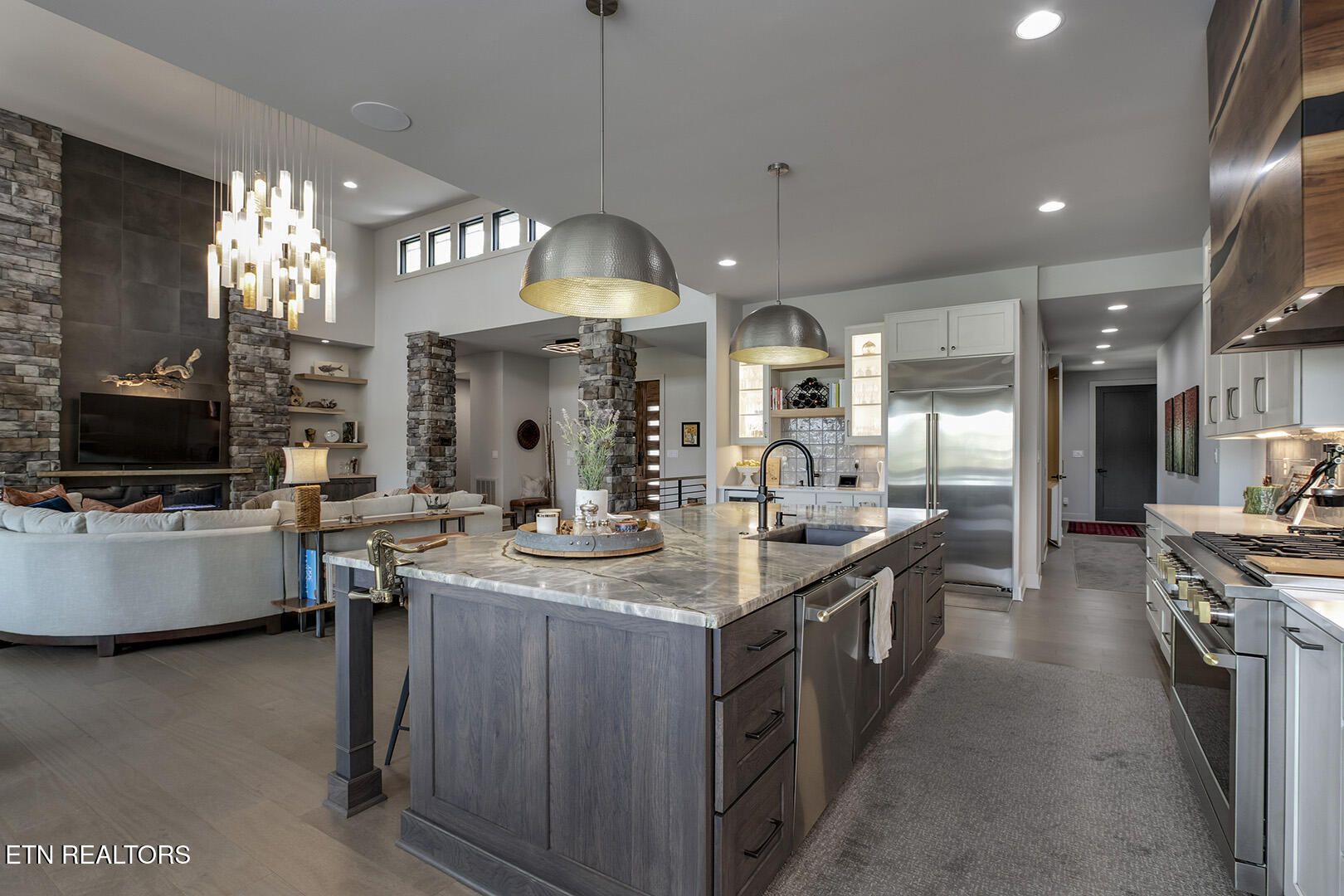 Lakefront Luxury Estate in Tellico Village. Experience the Pinnacle of Lakefront Living in this 2022 Parade of Homes masterpiece, ideally located to showcase breathtaking views of the tranquil Ski Cove in the Tommotley Neighborhood at the sought-after north end of the Village. With over 4,600 square feet of elegant design, this estate brings together expansive entertaining areas and the convenience of main-level zero-threshold living along with elevator access to the walkout lower level. You have Sophisticated Interiors and Main-Level Retreats. Step into an inviting open-concept sanctuary, highlighted by a stunning gas linear fireplace and expansive floor-to-ceiling windows. The main floor is thoughtfully designed with two lavish primary suites and a professional office featuring partner built-in desks. The premier master retreat provides a spa-like ambiance with a custom walk-in shower, heated flooring, and a heated towel rack. The secondary master suite offers a beautiful built-in steam shower. Every bedroom is equipped with a private ensuite bathroom, each finished with high-end tile, fixtures, and hardware. You have Exceptional Kitchens and Entertaining Spaces. The chef's kitchen stands out with its spacious layout, incorporating premium Monogram appliances, a generous walk-in butler's pantry, and ample storage. The lower level is designed for entertaining, featuring a second full kitchen and bar with a distinctive flip-out window for effortless indoor-outdoor service. The home is wired for sound and includes a central vacuum system and geothermal heating and cooling, ensuring a comfortable, low-maintenance environment suitable for any gathering. Outdoor Amenities and Lake Access. Outdoors, professionally landscaped and lighted grounds guide you to a first-class private dock. Designed for the ultimate lake lifestyle, the dock is equipped with a slip and lift for a 23-ft boat, dedicated jet ski and kayak lifts, and more. The oversized garage is meticulously organized with built-in cabinets and a spacious utility sink. This home was Crafted for Excellence. From designer finishes to deep-water access, every aspect of this Tellico Village estate is designed for those who seek the very best in life.
