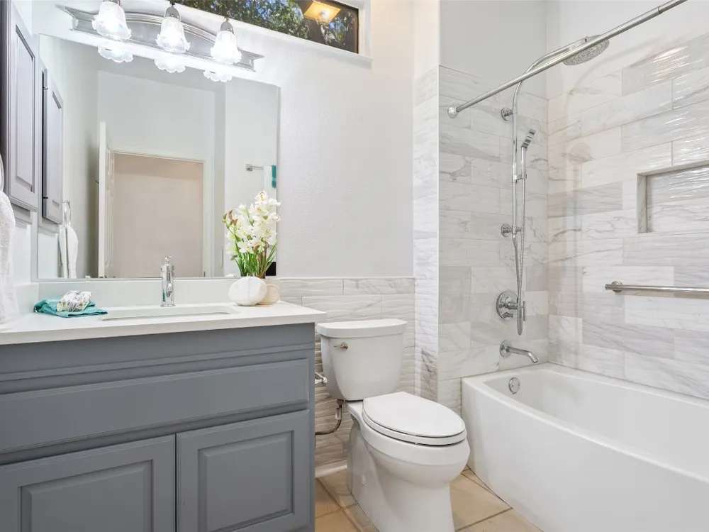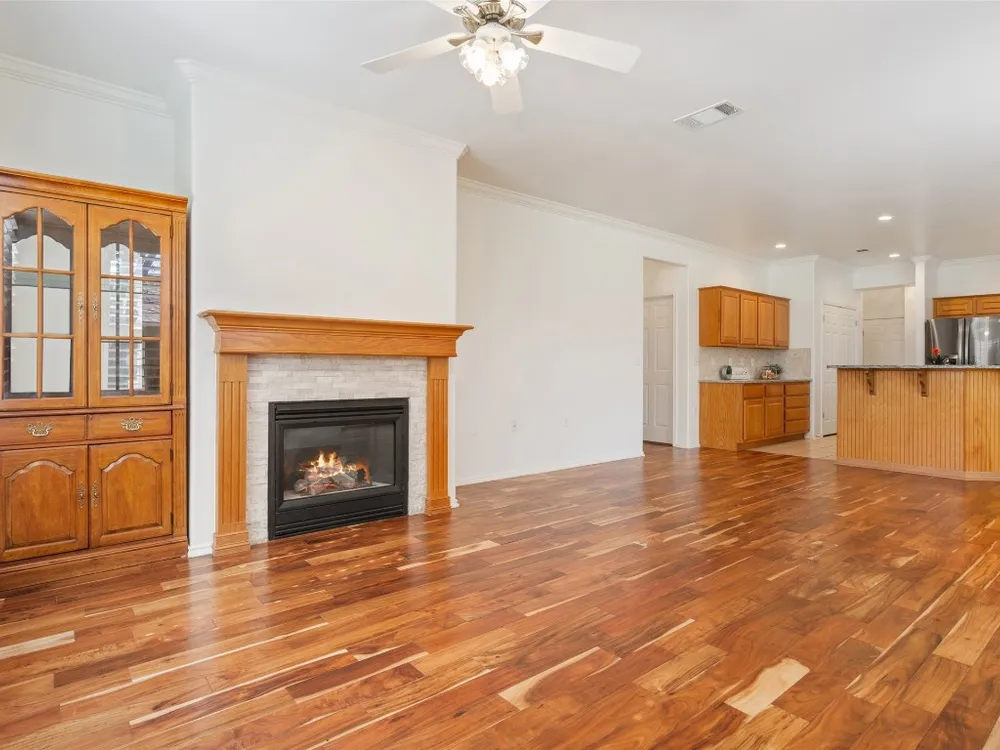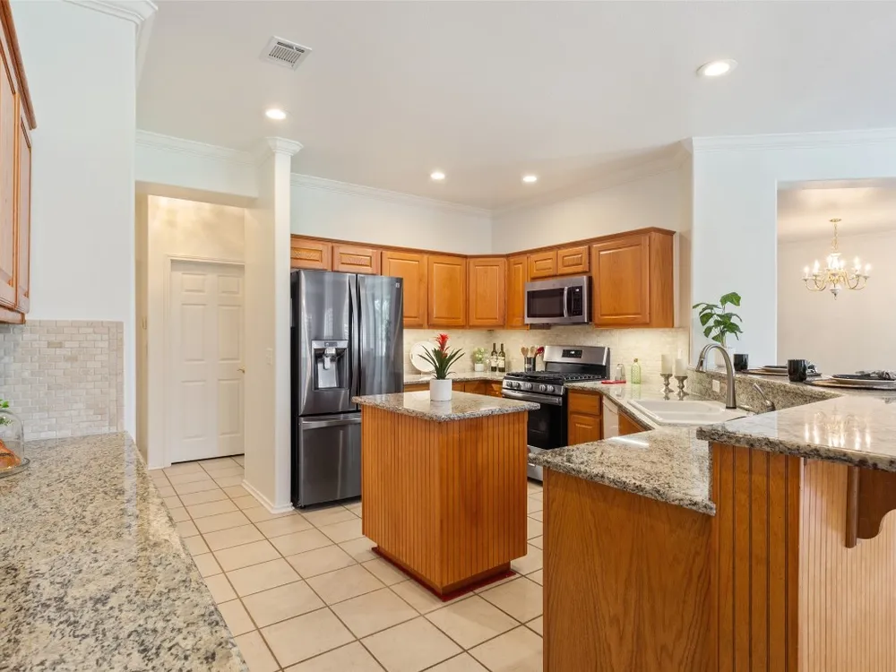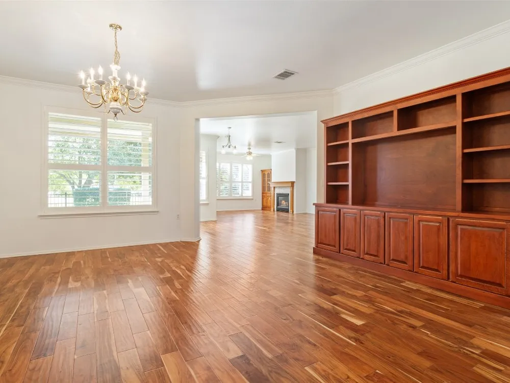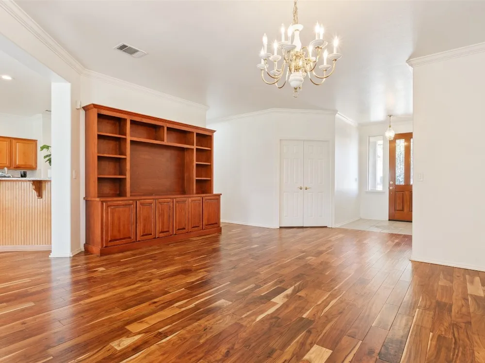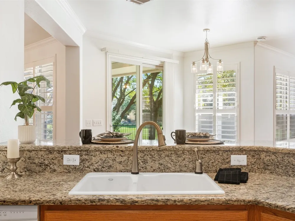 - Breakfast Bar, Bookcases, Built-in Features, Ceiling Fan(s), Crown Molding, Separate/Formal Dining Room, Double Vanity, Entrance Foyer, Granite Counters, High Ceilings, Kitchen Island, Multiple Living Areas, Multiple Dining Areas, Main Level Primary, NoInteriorSteps, Pantry, Quartz Countertops, Recessed Lighting, Storage, Soaking Tub, Bar