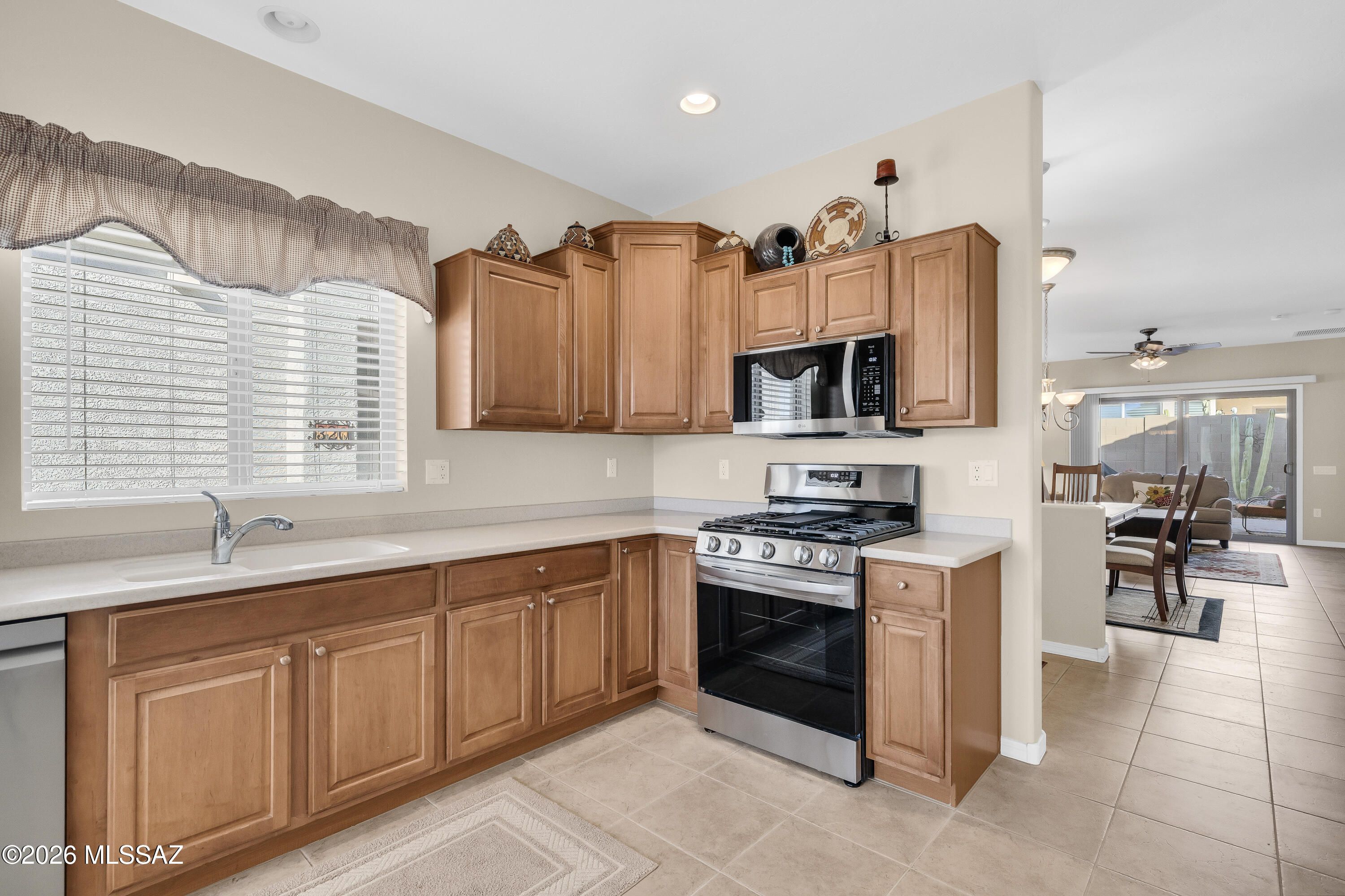 Enjoy all that 55+ living has to offer in this thoughtfully upgraded, immaculately cared-for, turn-key, single-owner home located in Sonora by Del Webb. The kitchen shines with upgraded cabinetry, sandstone countertops, and brand-new appliances--including a gas range/oven, microwave, dishwasher, and 1.25 HP garbage disposal. Major updates include a new HVAC (2026), new windows and sliders (2024-2025), and newer carpet in the primary suite. The backyard features a raised back wall for added privacy, retractable sunshade, gas grill hookup, and an outdoor fan. With a home in excellent condition like this one, you will have more time to enjoy the Sonora Clubhouse--meeting neighbors, playing pickleball, swimming in the heated pool, and so much more.