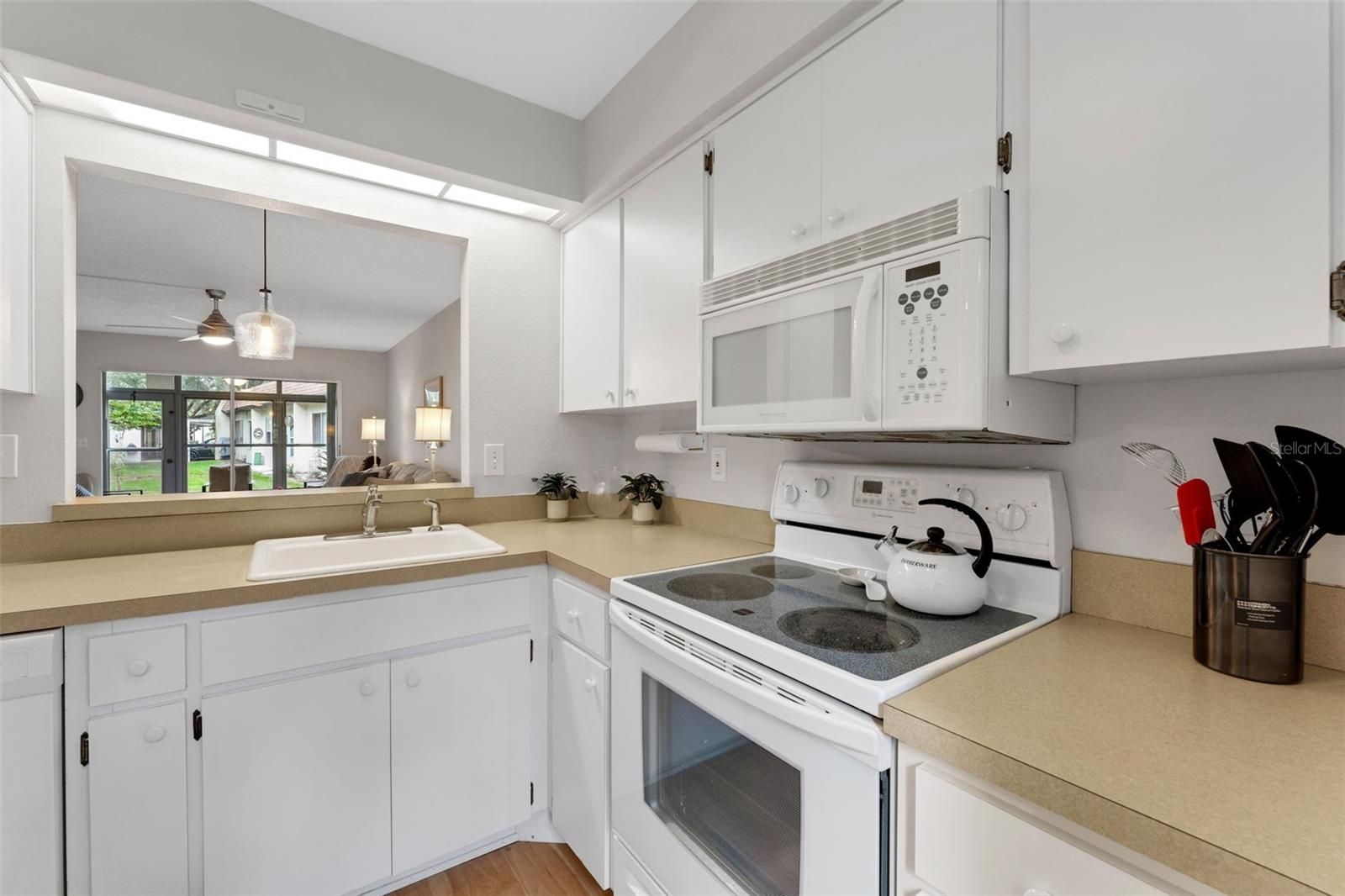 This END UNIT with 2 BEDROOMS, 2 FULL BATHS condo that includes a COVERED CARPORT with STORAGE LOCKER (large enough for bikes, kayak, or decorations) PLUS a FLORIDA ROOM that looks over Green Space that extends your living space beyond the 866 sq ft under air. The home features Light colored, wood-like Laminate flooring, AN INSIDE LAUNDRY CLOSET, plus a DISHWASHER and a BUILT-IN MICROWAVE in the kitchen. The kitchen with plenty of counter space and storage cabinets overlooks the Dining area and has a large window that brings in natural light. Updates also include a NEW ELECTRICAL PANEL in 2020, HVAC in 2019, New Ceiling Fans throughout, and it has been painted with pleasing, neutral colors that will go with any decor. Being Sold Furnished or Unfurnished. The Mission Grove Community has its own pool, shuffleboard, pool pavilion, and laundry facilities. The $674 monthly HOA fee covers the building insurance, the roof, cable, internet, water, sewer, trash, and ground maintenance, giving you the freedom to come and go as you please. The $164 monthly HOA fee gives you the "BIG CLUB" with GOLF with NO GREEN FEES on 3 executive courses, FREE Boat or RV Storage on a secured lot, 2 Heated POOLS, Ceramics, Stained glass, Woodworking workshops, Card games, Board Games, Shows, 2 PONTOON boats for cruising Lake Tarpon, just to name a few. Highland Lakes on Lake Tarpon, where Relaxation and Recreation come together in this "55 or better" community. Convenient to shopping, quaint downtown Palm Harbor, the Beaches: Honeymoon Island, Sunset Beach, Fred Howard and Clearwater Beach, 2 International Airports, the perfect place for the full-time resident or a seasonal home.