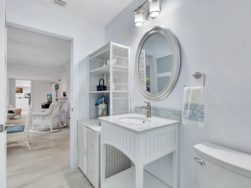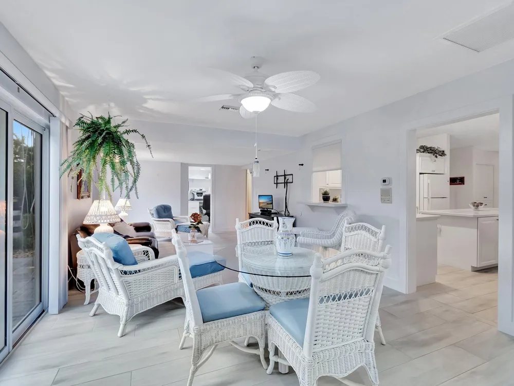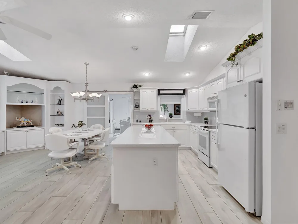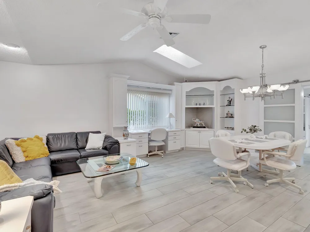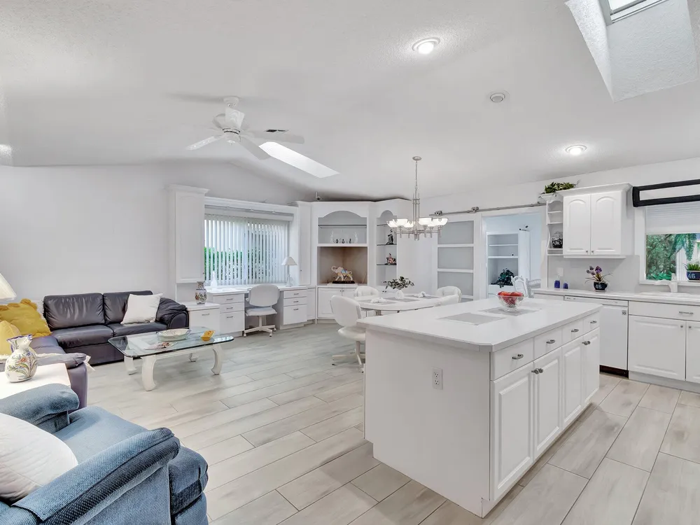 STUNNING HOME IN RAINBERRY BAY ACTIVE ADULT COMMUNITY. 2189 S. FT UNDER AIR. UNIQUE REMODEL LAYOUT.2 BEDROOM, 2.5 BATHS, PLUS FAMILY ROOM AND FLORIDA ROOM. PROFESSIONAL LANDSCAPED YARD LEADS TO DOUBLE GLASS DOOR ENTRY, OPENS TO LIVING ROOM, SEPARATE DINING ROOM AREA, VAULTED CEILINGS. KITCHEN WITH WHITE CABINETS, FAMILY ROOM AREA INVITES ENTERTAINING, BUILT IN DESK AREA, PANTRY. NEW LUXURY PORCELAIN PLANK FLOORING IN KITCHEN AREA AND FLORIDA ROOM, SEPARATED BY BARN DOORS FOR PRIVACY. SEPARATE OFFICE ROOM. HALF BATH. SEPARATE LAUNDRY ROOM WITH CABINETS. FULL IMPACT WINDOWS, 2 AC UNITS FOR COMFORT. PRIMARY BEDROOM HAS WALKIN CLOSET AND 2ND CLOSET. GARAGE WITH AMPLE CABINETS, WORK BENCH, ATTIC STORAGE. PRIVATE OPEN PATIO TO ENJOY FLORIDA SUNSHINE. LOCATION CLOSE TO BEACH AND DOWNTOWN.