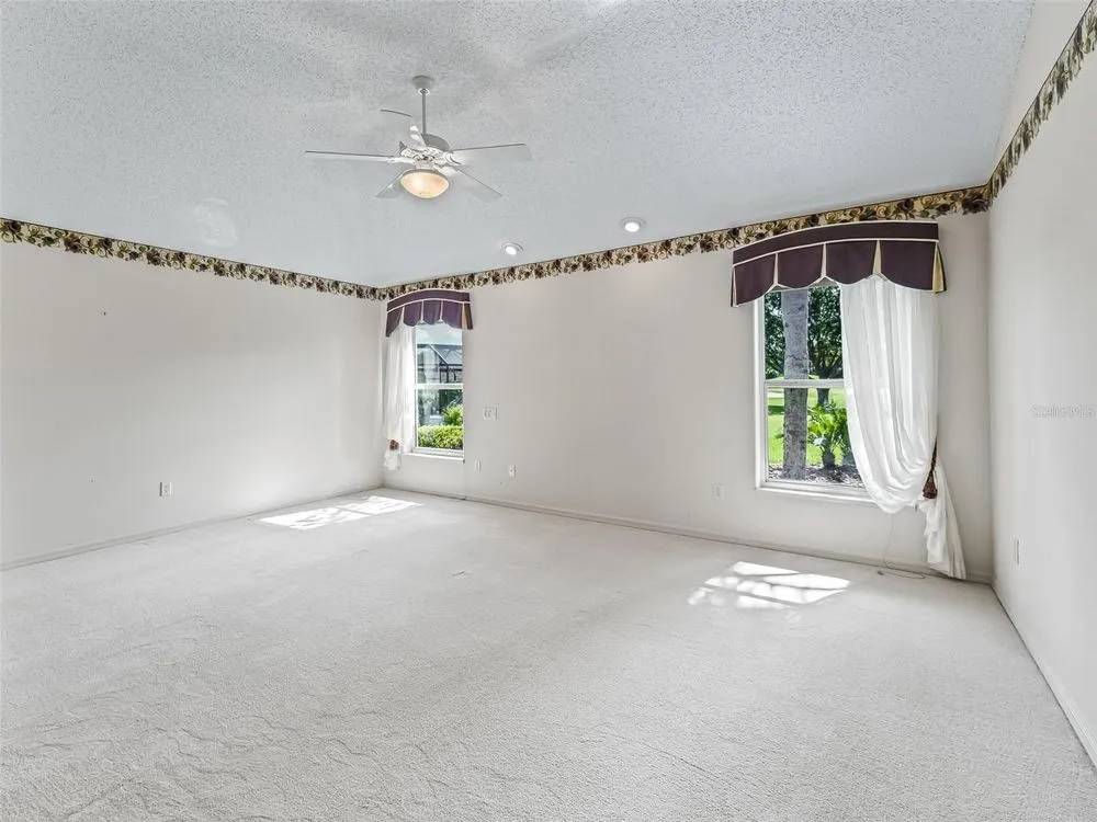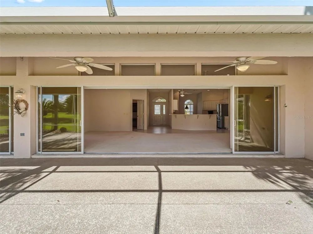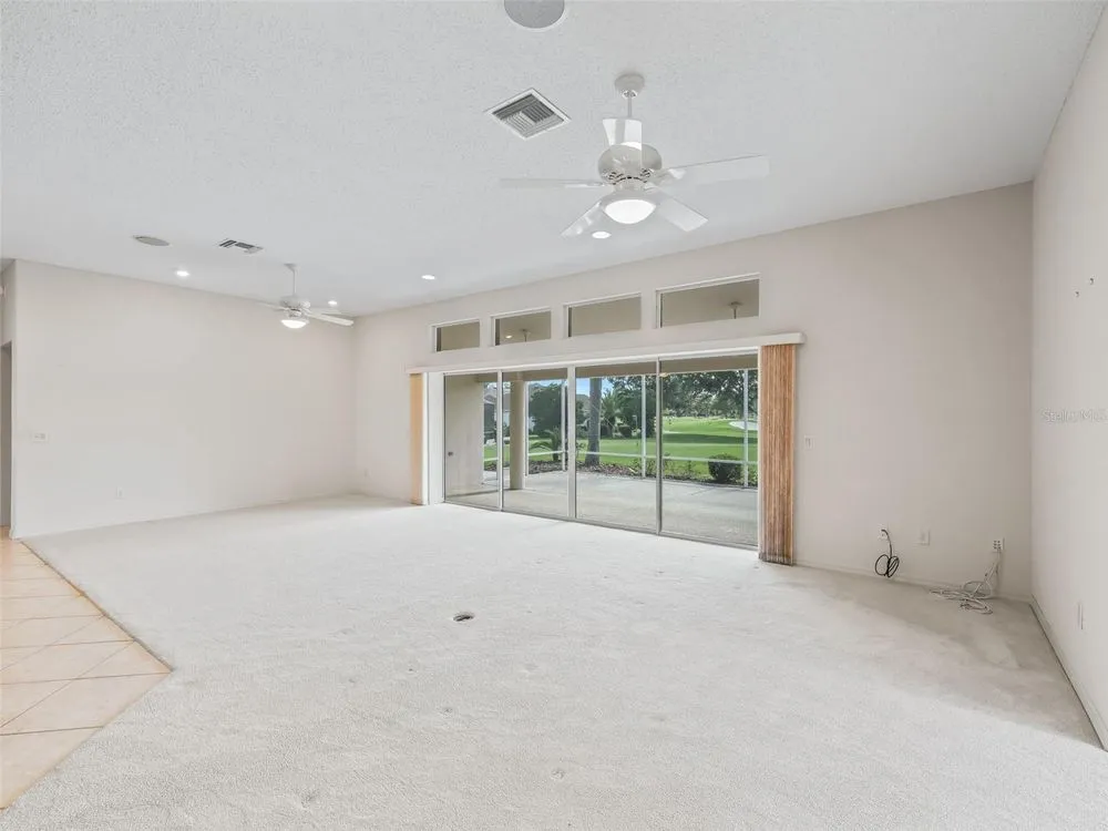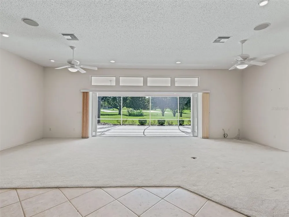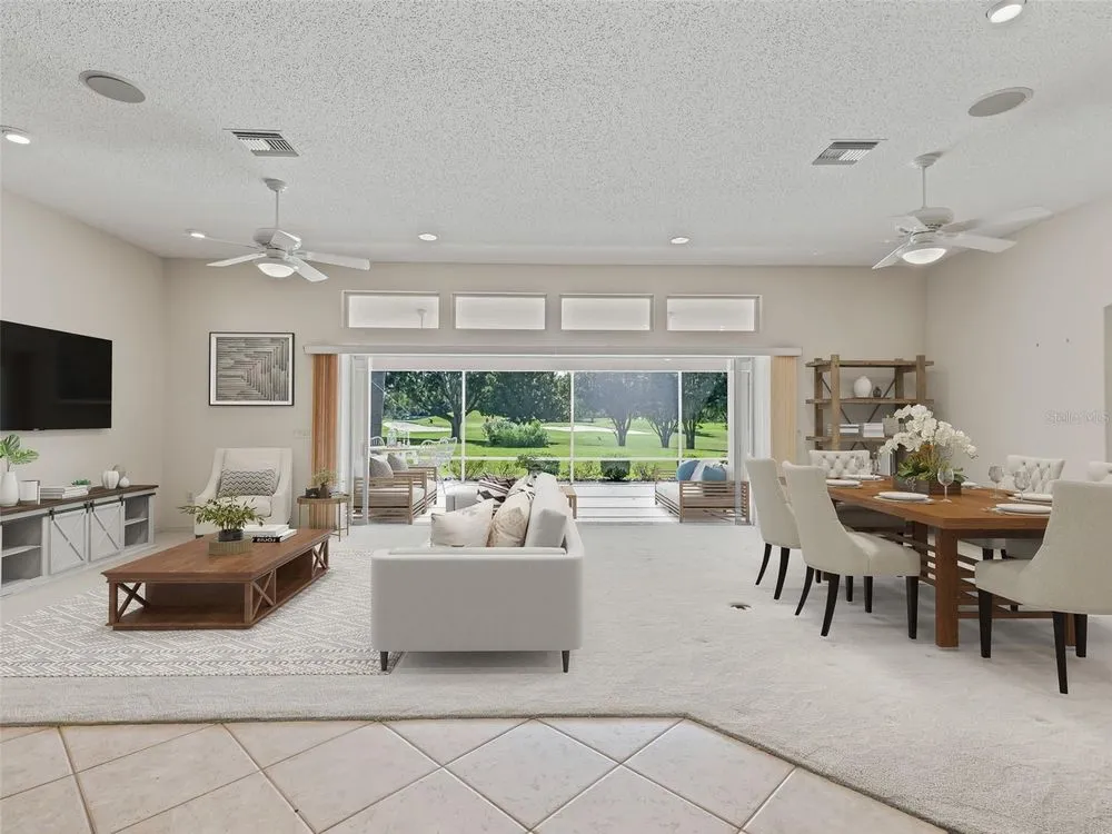 One or more photo(s) has been virtually staged. CUSTOM Magnolia Model with PANORAMIC GOLF & WATER VIEWS – AND PRIVACY! Must See! NO BOND! A designer home customized with PREMIER features with ROOM FOR A POOL! Welcome to this stunning home nestled on an oversized lot at the end of a quiet CUL-DE-SAC. Enjoy breathtaking views of the golf course and water from every room in the rear of the home—all while being less than a minute from shopping, dining, and essential amenities. Curb appeal abounds with a PAVER STONE drive/walkway and lush TROPICAL landscaping. Step inside to discover a thoughtfully designed open-concept layout featuring 12’ ceilings, BULLNOSE corners, and TRANSOM windows above QUAD sliding glass doors (retractable), flooding the living space with natural light. This unique home includes a SOUNDPROOF MEDIA ROOM with ELEVATED flooring, a split-bedroom floor plan with FLEXIBLE 3rd bedroom/office PLUS a sunroom/den with separate access to the lanai. A 2024 roof with a GOLD PLAN 25/50 Year Warranty provides peace of mind! The 3-zoned AC system, SOLAR tubes, and AIR FILTRATION SYSTEM allow sunlight and clean fresh air throughout. The chef’s kitchen features an EAT-IN area, large breakfast BAR with judges paneling, CORIAN countertops, abundant cabinetry with pull-out shelves, a Whirlpool French door refrigerator, GE Profile range & microwave, Kenmore dishwasher, and seamless sink. The primary en-suite is a private retreat with HIS & HER WALK-IN closets, DUAL sinks, makeup area, WALK-IN shower, and an oversized linen closet. Guests and family will enjoy generously sized bedrooms and a full bath with a shower/tub combo. The spacious and extended lanai features a large screened birdcage with a covered seating area—perfect for entertaining or relaxing while enjoying serene views. ADDITIONAL HIGHLIGHTS - New 2024 Rheem Water Heater, EXPANDED 2-Car Garage with BUILT-IN Workbench Areas, Recessed Lighting and Slider Light Switches, Large Hall Closet, and a Beautiful Mix of Diagonal Tile and Newer Carpet. This home truly combines luxury, comfort, and functionality in a premium location. Ask for the detailed feature sheet and schedule your private tour today—this one won’t last! Convenient and less than a minute from Highway 466 where all shopping, banking, and amenities are located!
