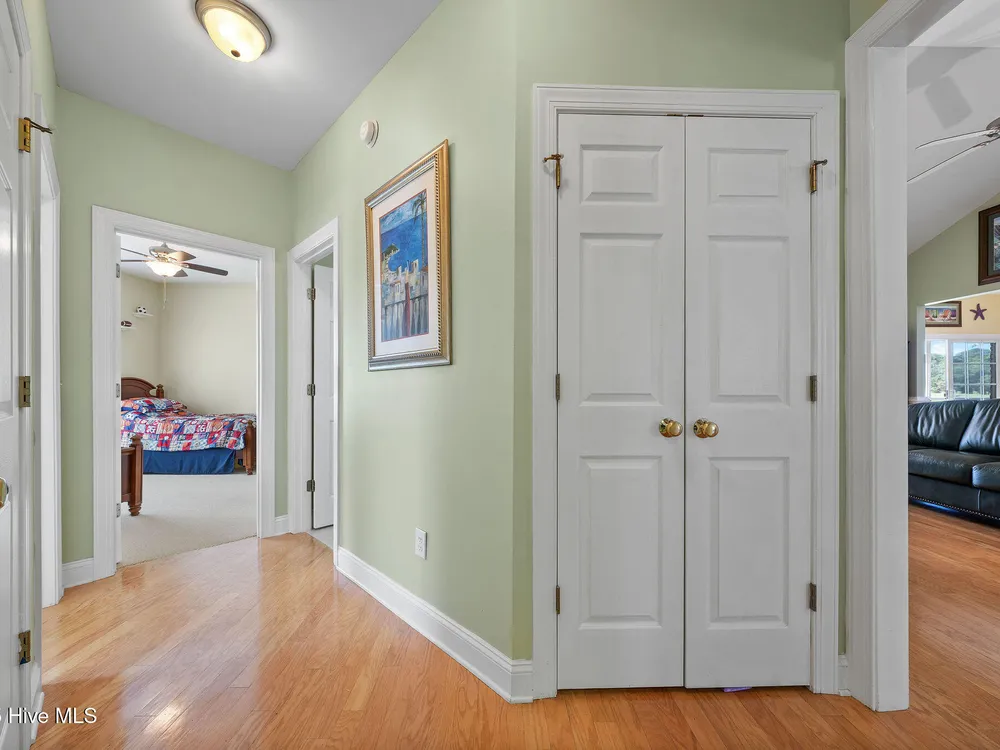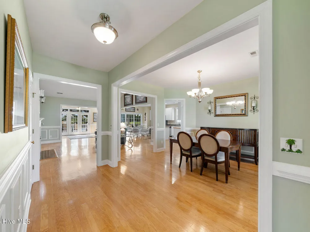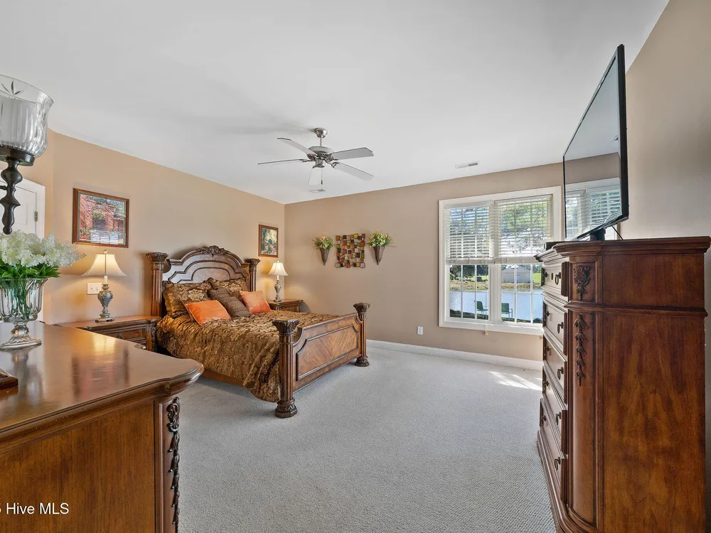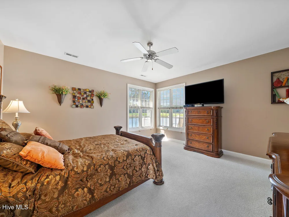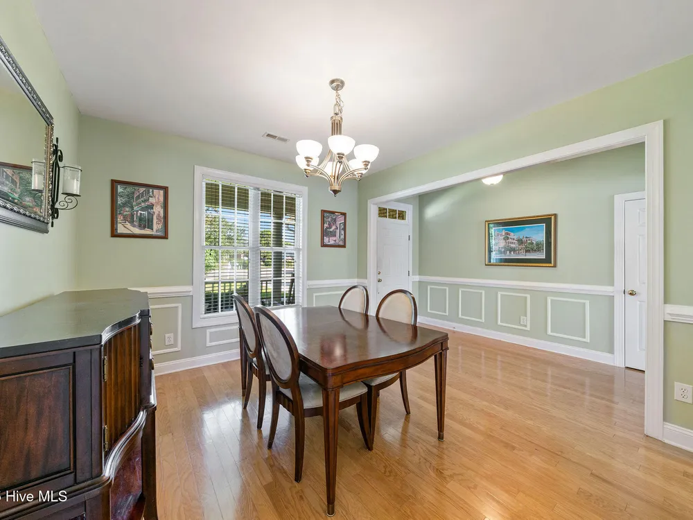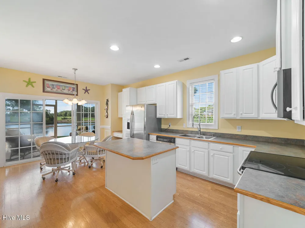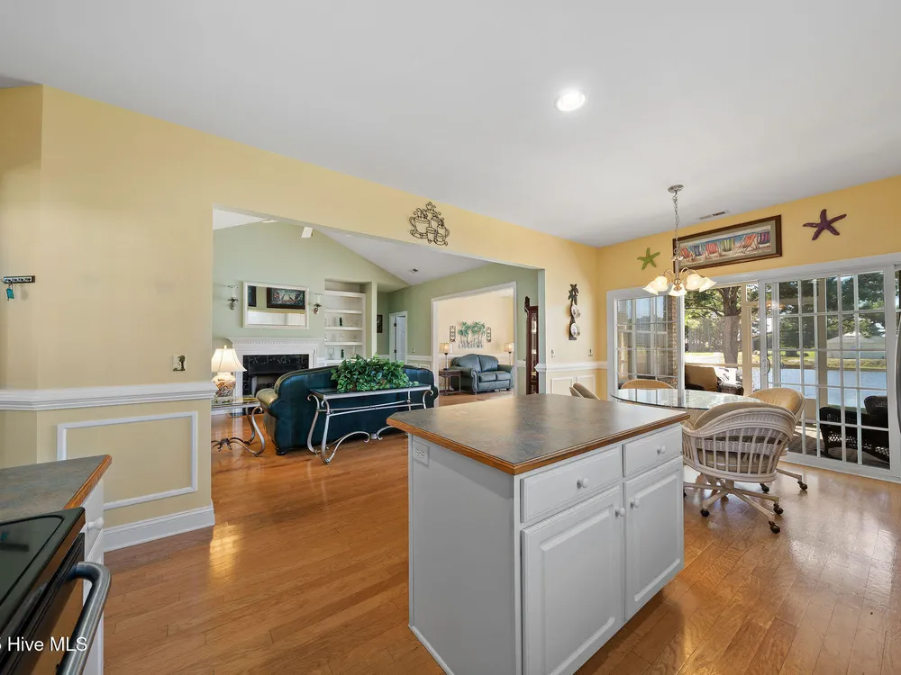 This classic all-brick home is located at the end of a private cul-de-sac enjoying expansive pond views and fairway views of the golf holes 1 and 9 of the Founders course in St. James Plantation. This 2600 heated square foot residence experiences the ultimate southern rear exposure and features 3 spacious bedrooms, study, bonus room, and three full bathrooms, offering a perfect blend of formal and casual spaces for entertaining and relaxing. The home is surrounded by neat, low-maintenance landscaping, adding to its charm and curb appeal. The Founders Club just a short distance away, offering an outdoor pool, tennis courts, golf practice areas, and beautiful clubhouse overlooking the marsh savannah of Beaver Creek. Follow the brick steps onto the rocking chair front porch and step through the front door framed by sidelights into a welcoming foyer. You'll find custom millwork wainscoting and durable engineered hardwood floors. Just off the foyer is a formal dining room which is the perfect area for larger friend/family gatherings. The great room features a gas fireplace with a mantle, custom built-in cabinets and shelving to the right. The great room is connected to the sunroom overlooking breathtaking views which opens to the deck. From the screened in porch experience panoramic pond views with the lush golf course beyond. Enjoy the mild Carolina weather and picturesque views from either the deck or concrete patio. The kitchen offers wood cabinetry, a center island, stainless steel appliances, a built-in desk, and a light-filled breakfast nook. Here, a 3 panel sliding glass door offers views of the pond, making it the perfect place to enjoy your morning coffee or casual meals. Just beyond the kitchen privately tucked away is a study/den. The owner's suite provides plenty of room and is flooded by natural light and pond/golf views. Double doors lead to an ensuite bathroom, complete with a dual sink vanity, make-up station, a walk-in shower, and large soaking tub. The