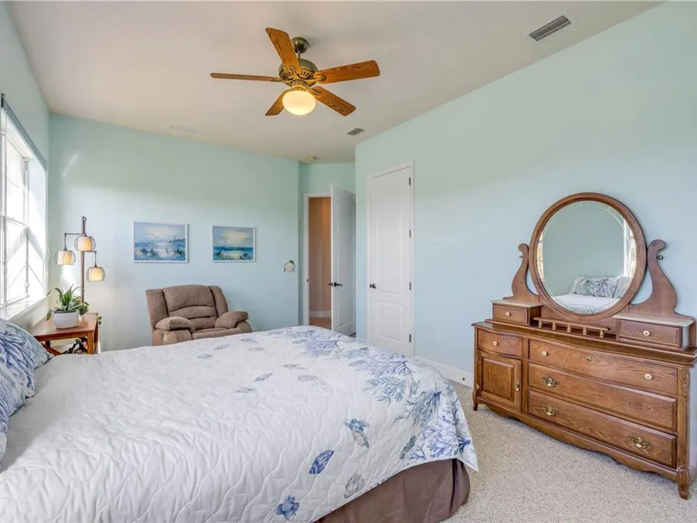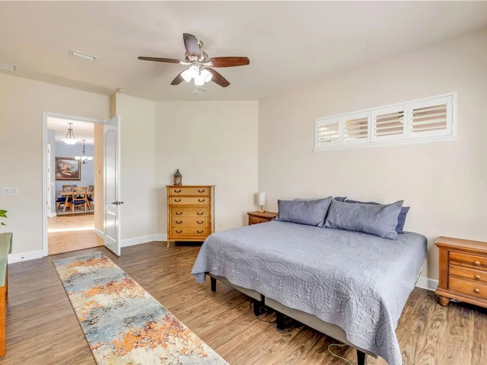 - Ceiling Fan(s), Eat-in Kitchen, Main Level Primary, Solid Surface Counters