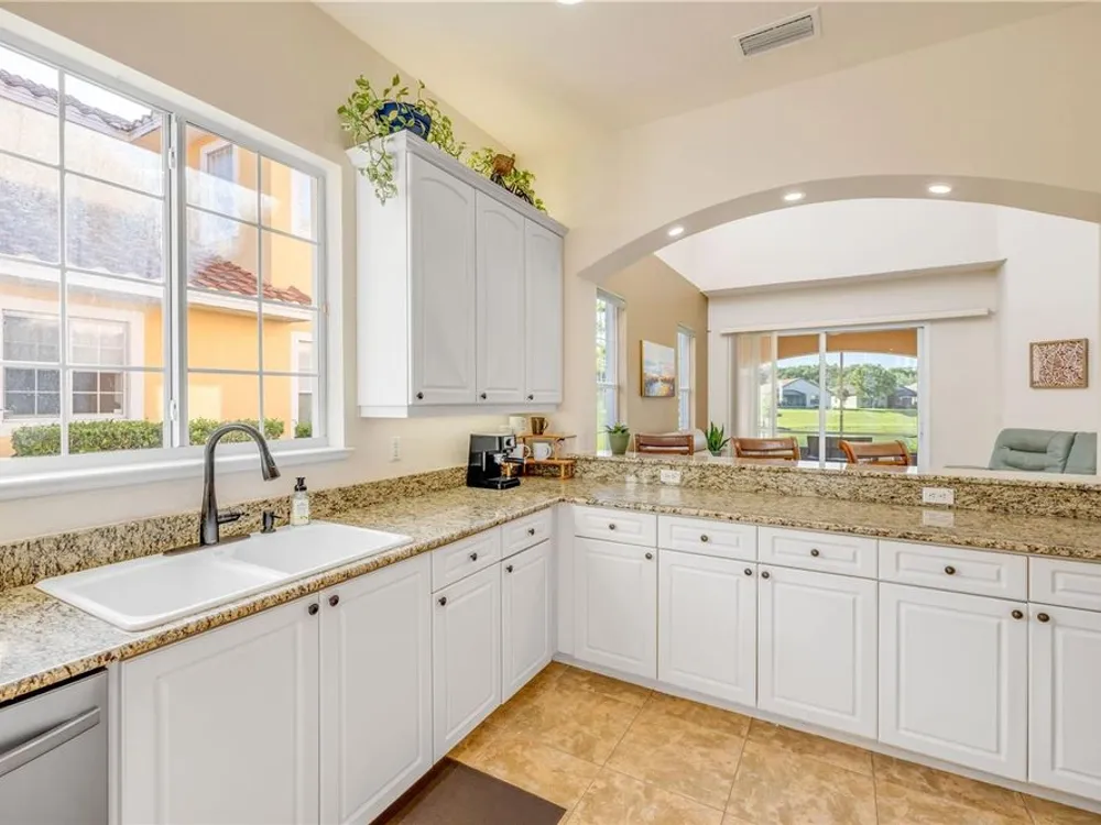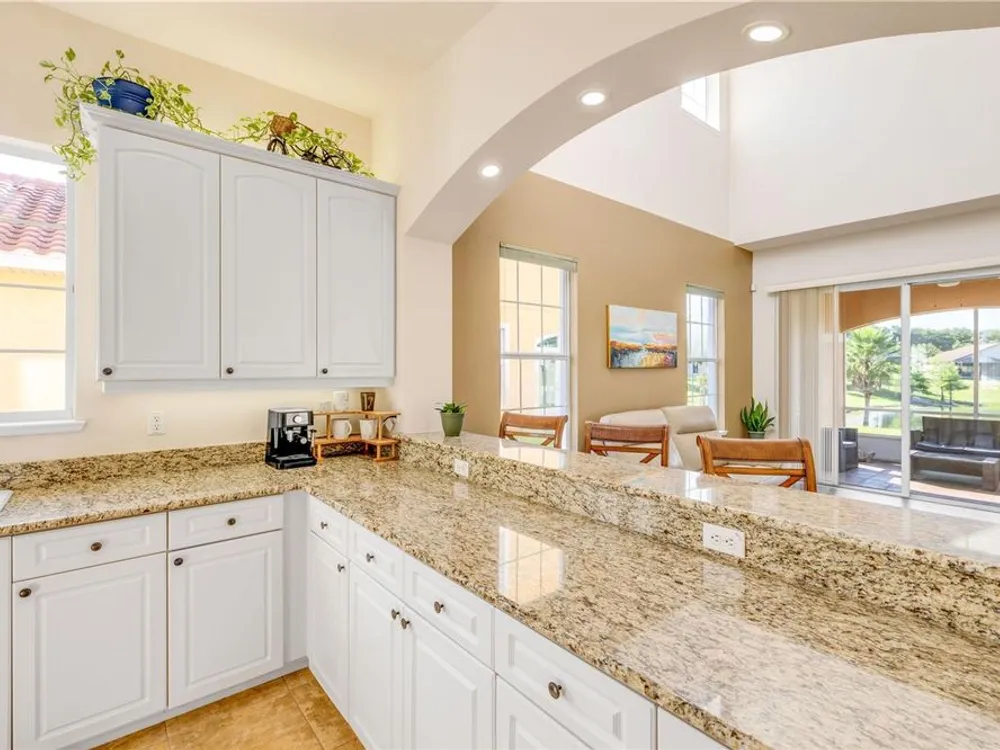 Live the Carefree Florida lifestyle in this stunning END UNIT lakefront home, perfectly situated on tree-lined streets just minutes from shopping, dining, beaches, and airports. This beautiful residence offers 3 bedrooms, 2.5 baths, a versatile loft, and a screened, tiled lanai overlooking the serene lake and fountain. A charming courtyard-style entry welcomes you as you arrive, while the tiled roof adds architectural elegance. Step inside to a spacious great room with soaring 20-foot ceilings—ideal for entertaining family and friends. The kitchen features granite countertops, abundant cabinetry, and opens to a formal dining area, making gatherings effortless. The first-floor primary suite offers warm wood floors, a large walk-in closet, and a luxurious en-suite bath. Upstairs, a carpeted loft, two generously sized bedrooms with lake views, and a full bath provide comfort and flexibility. Plantation shutters enhance both beauty and function, while easy-care wood floors grace the kitchen, dining, and great room. Enjoy morning coffee or evening sunsets from the tranquil screened lanai. Additional highlights include under-stair storage and an oversized 2-car garage. The Dunmore HOA covers lawn maintenance, irrigation, exterior painting, and termite protection. Residents have membership access to Halifax Plantation's golf course, tennis courts, and community pool. Owners can also enjoy the walking trails, while the clubhouse restaurant is open to the public. This home is more than just a residence, it's a place to make memories and truly embrace the joy of Florida living.