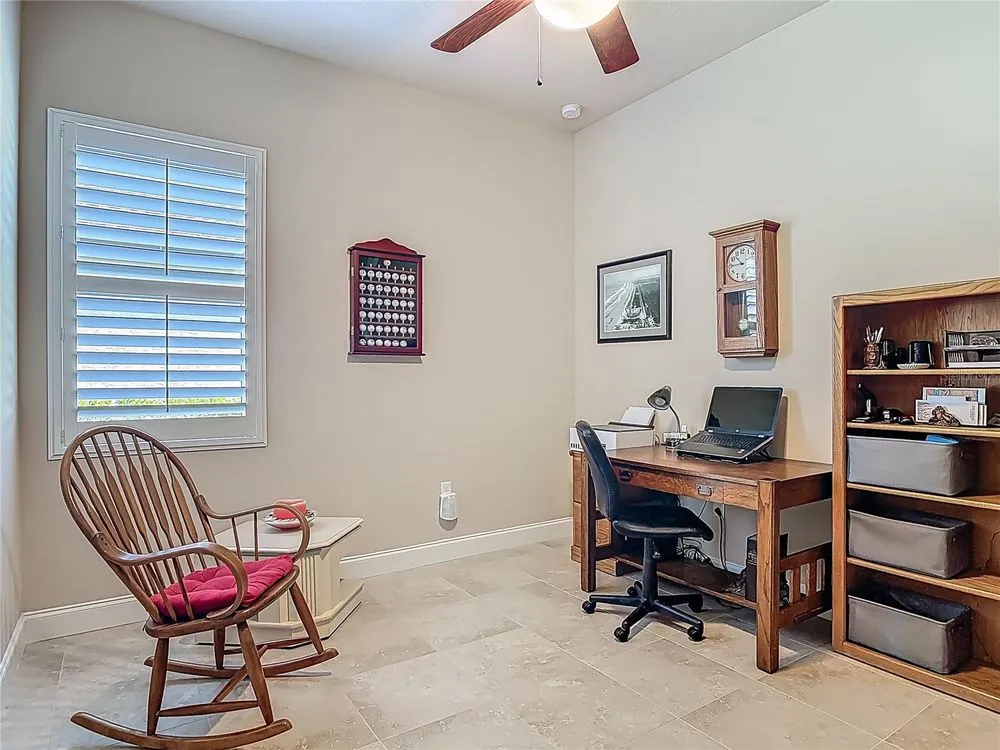 - Ceiling Fan(s), High Ceilings, Open Floorplan, Main Level Primary, Solid Surface Counters, Solid-Wood Cabinets, Split Bedrooms