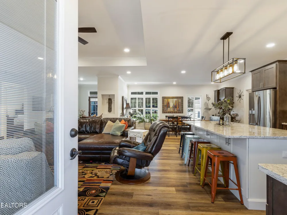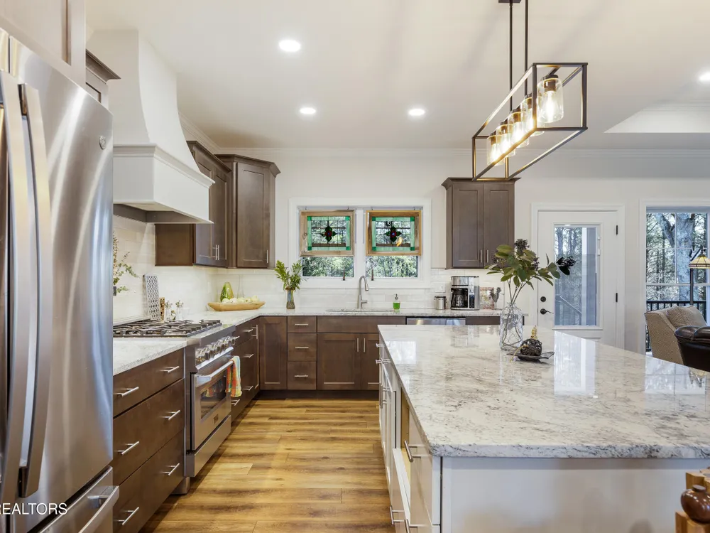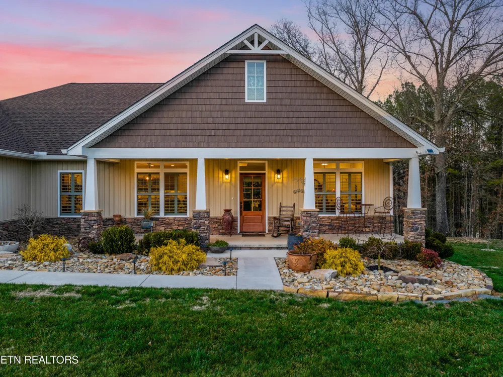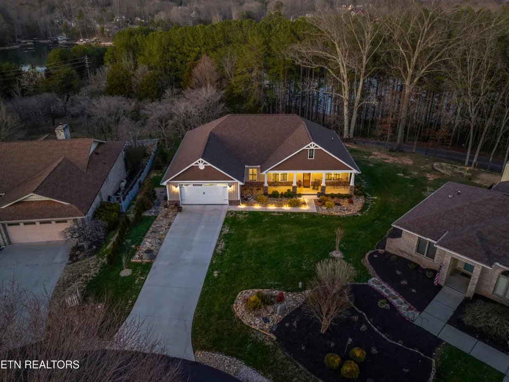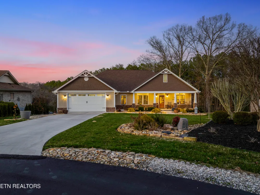 Nestled in the heart of one of East Tennessee's most desirable lakefront communities, this stunning home in Tellico Village is a rare opportunity to enjoy elegant living with modern comforts and captivating views of Tellico Lake. Built in 2022, this meticulously maintained residence offers over 2,000 square feet of thoughtfully designed living space, combining quality craftsmanship with everyday functionality in a peaceful, resort-style setting. From the moment you step inside, you're welcomed by an open-concept layout that feels both spacious and inviting. The heart of the home is the beautifully appointed kitchen, where a high-end gas range, ample cabinet space, and a large center island make it the perfect space for cooking, gathering, and entertaining. The living and dining areas flow seamlessly together, filled with natural light from large windows that frame the scenic lake views and bring the outdoors in. The home's design offers the perfect balance of private retreat and social space. The generously sized primary suite is a standout, featuring a luxurious walk-in shower, dual vanities, and a spacious walk-in closet that connects directly to the laundry room for added convenience. Thoughtful details like this elevate the home's everyday livability and reflect its modern design. Step out from the primary suite—or from the living room—onto a spectacular tri-level trex deck, where you can relax with morning coffee, host friends for dinner, or simply soak in the peaceful beauty of the lake. This deck offers multiple levels for lounging or entertaining and leads gracefully down to a beautifully landscaped yard finished with attractive, low-maintenance rock work, giving you more time to enjoy life and less time on upkeep. Whether you're full-time or seasonal, the outdoor space offers a rare combination of privacy, functionality, and incredible lake views. Inside and out, this home is built for easy, comfortable living. And to ensure long-term efficiency and peace of mind, the crawl space is fully encapsulated—a detail that adds value and improves indoor air quality year-round. If you're seeking a nearly new home with high-end finishes, thoughtful features, and a lake view that never gets old, this is your chance to make it yours. Schedule your private showing today and see why so many have fallen in love with the lifestyle and beauty of Tellico Village.