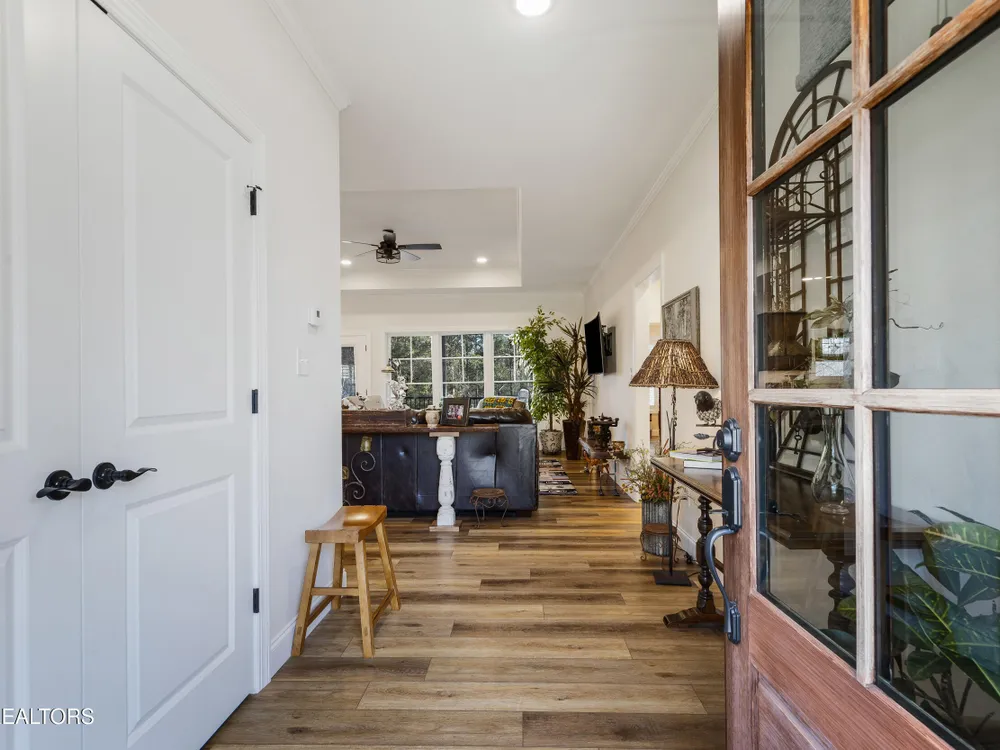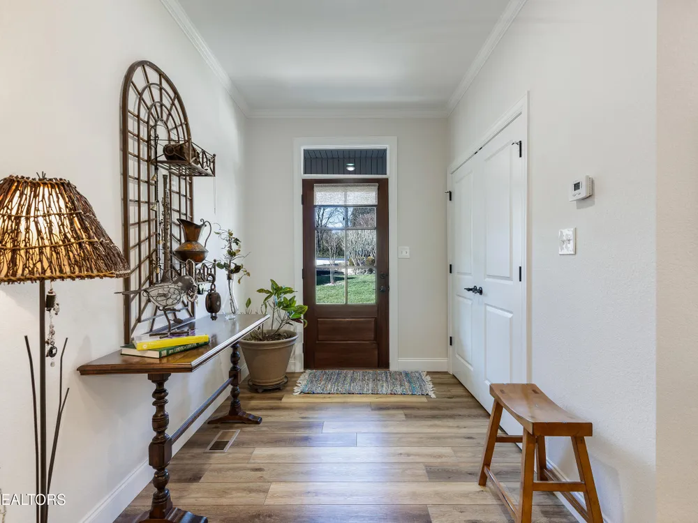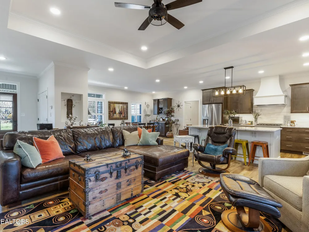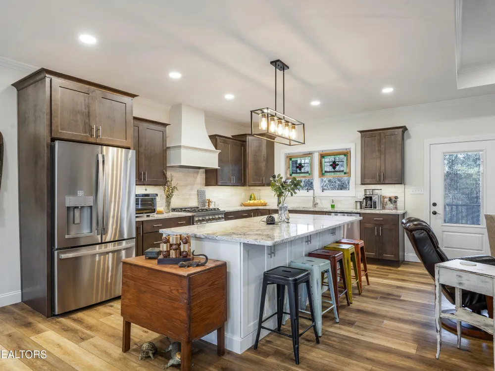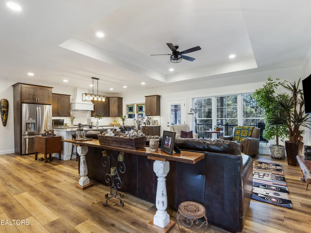 Nestled in the heart of one of East Tennessee's most desirable lakefront communities, this stunning home in Tellico Village is a rare opportunity to enjoy elegant living with modern comforts and captivating views of Tellico Lake. Built in 2022, this meticulously maintained residence offers over 2,000 square feet of thoughtfully designed living space, combining quality craftsmanship with everyday functionality in a peaceful, resort-style setting. From the moment you step inside, you're welcomed by an open-concept layout that feels both spacious and inviting. The heart of the home is the beautifully appointed kitchen, where a high-end gas range, ample cabinet space, and a large center island make it the perfect space for cooking, gathering, and entertaining. The living and dining areas flow seamlessly together, filled with natural light from large windows that frame the scenic lake views and bring the outdoors in. The home's design offers the perfect balance of private retreat and social space. The generously sized primary suite is a standout, featuring a luxurious walk-in shower, dual vanities, and a spacious walk-in closet that connects directly to the laundry room for added convenience. Thoughtful details like this elevate the home's everyday livability and reflect its modern design. Step out from the primary suite—or from the living room—onto a spectacular tri-level trex deck, where you can relax with morning coffee, host friends for dinner, or simply soak in the peaceful beauty of the lake. This deck offers multiple levels for lounging or entertaining and leads gracefully down to a beautifully landscaped yard finished with attractive, low-maintenance rock work, giving you more time to enjoy life and less time on upkeep. Whether you're full-time or seasonal, the outdoor space offers a rare combination of privacy, functionality, and incredible lake views. Inside and out, this home is built for easy, comfortable living. And to ensure long-term efficiency and peace of mind, the crawl space is fully encapsulated—a detail that adds value and improves indoor air quality year-round. If you're seeking a nearly new home with high-end finishes, thoughtful features, and a lake view that never gets old, this is your chance to make it yours. Schedule your private showing today and see why so many have fallen in love with the lifestyle and beauty of Tellico Village.