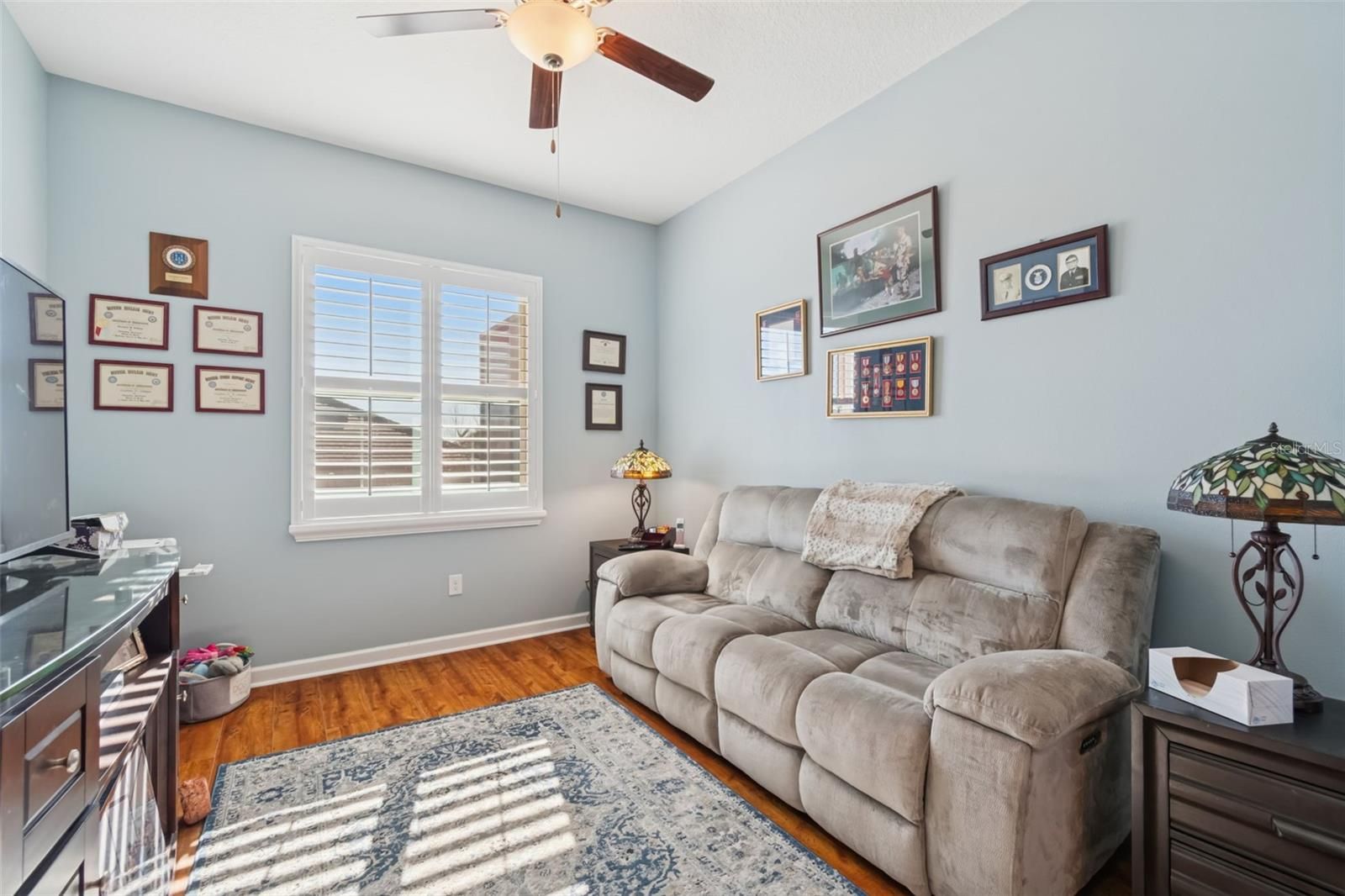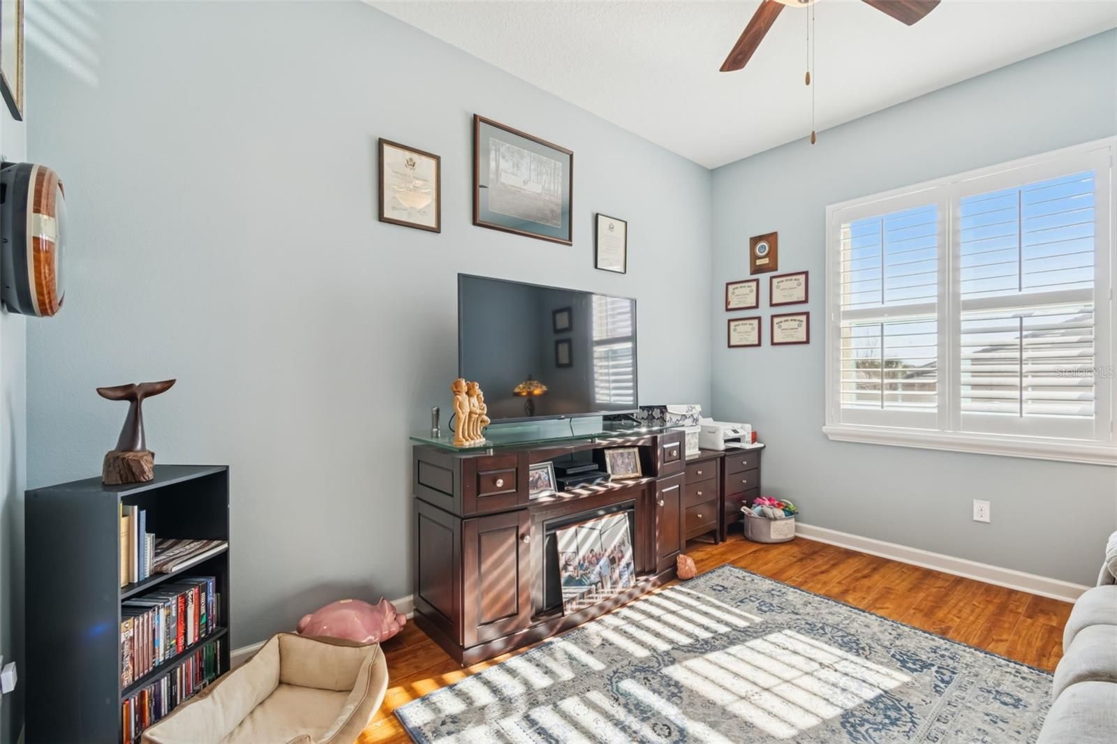 - Ceiling Fan(s), High Ceilings, In-Wall Pest Control, Open Floorplan, Walk-In Closet(s), Window Treatments