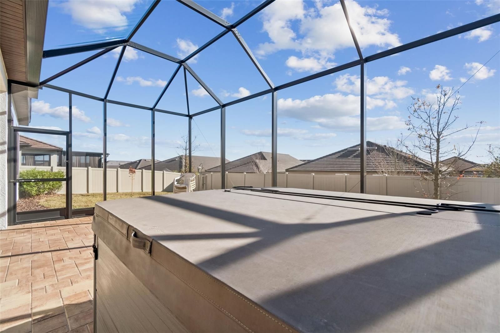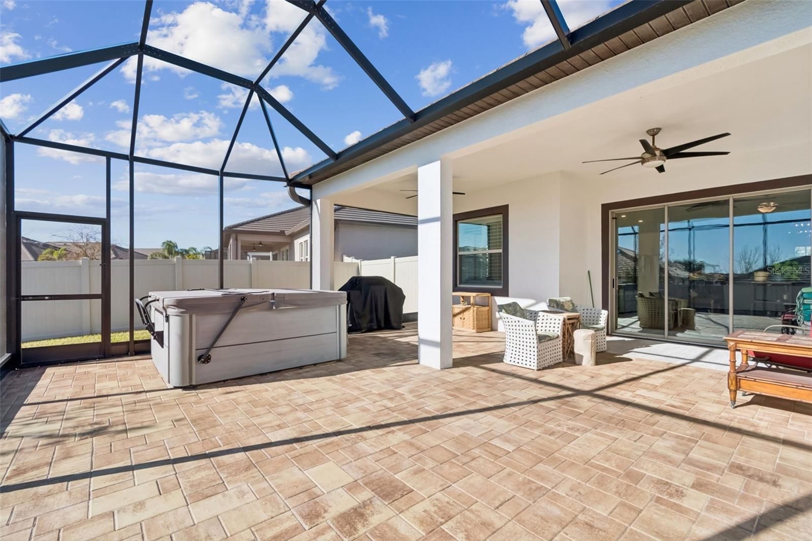 Experience true resort-style living in the highly sought-after 55+ active adult community of Medley at Mirada in San Antonio, Florida. Built in 2021, this move-in-ready 3-bedroom, 2.5-bath residence with a rare 3-car garage offers 2,350 square feet of thoughtfully designed living space, ideal for those seeking a vibrant, low-maintenance Florida lifestyle. Inside, the home features custom luxury vinyl plank flooring throughout. The open-concept design creates seamless flow between living, dining, and kitchen spaces. The kitchen is well-appointed with granite countertops, 42” cabinetry with crown molding, stainless steel appliances, an electric range, built-in microwave/oven combo, side-by-side refrigerator, and a spacious walk-in pantry, making it equally suited for daily living and entertaining. The luxury primary suite is a private retreat, showcasing an oversized curbless walk-in shower, dual vanities, private water closet, makeup counter/station, and an oversized walk-in closet. Two additional bedrooms offer flexibility for guests, a home office, or hobby space, while the convenient half bath is ideal for visitors. Outdoor living is a standout feature of this home. Enjoy a large covered lanai, perfect for grilling and relaxing, which opens to an extended paver patio with birdcage screen enclosure and hot tub. The fully enclosed vinyl-fenced backyard provides a level of privacy rarely found in active adult communities—ideal for peaceful mornings, entertaining, or pet-friendly living. Additional highlights include walk-up attic storage for seasonal organization and a 3-car garage offering ample room for vehicles, golf carts, and storage. Residents of Medley at Mirada enjoy an unmatched collection of resort-style amenities, including gated entry, luxury landscaping, and maintenance-free lawn and landscape care. Community features center around a private clubhouse with a restaurant and café/bar, state-of-the-art fitness center, heated resort-style pool, tennis, pickleball, bocce ball, and shuffleboard courts, billiards hall, ballroom, community rooms, fire pits, dog park and dog washing station, and a robust calendar of clubs, classes, and social events coordinated by a dedicated lifestyle team. A signature highlight of the community is exclusive access to the world-renowned 15-acre Mirada Crystal Lagoon, offering opportunities for swimming, kayaking, paddleboarding, and relaxing along sandy beaches—bringing a true vacation-inspired atmosphere home every day. The neighborhood also features walking and biking trails, golf cart-friendly streets, picnic areas, and scenic common spaces designed to support an active, connected lifestyle. Ultra-fast high-speed internet service is available community-wide, appealing to modern buyers and remote professionals. Conveniently located near everyday necessities, the home offers easy access to grocery stores, pharmacies, casual dining, healthcare services, and neighborhood conveniences, with expanded shopping, dining, and entertainment options nearby in San Antonio and Wesley Chapel, including major retail destinations. This exceptional property delivers the perfect blend of resort-style amenities, active adult living, privacy, and modern design within one of Pasco County’s most desirable 55+ communities.