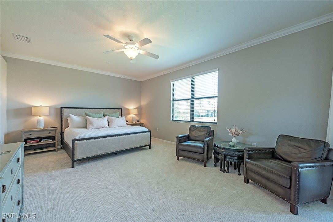 Soak in expansive, tranquil lake views from the comfort of your large, private screened lanai in this beautifully updated second-floor end-unit in Sonoma at Fiddler’s Creek. This light-filled, impeccably maintained residence offers three bedrooms, two full baths and a rare three-car tandem garage, providing ample space for bicycles, golf clubs, beach gear and more. Enjoy added privacy with no neighbors above or on one side, paired with serene surroundings and premium interior finishes. Hurricane-impact windows and doors offer peace of mind, while a smartly designed floor plan seamlessly blends comfort, functionality and style. Extensively updated, the home features new flooring in the main living areas, plush new carpeting in the bedrooms, custom closet systems for optimal storage and crown molding throughout. The gourmet kitchen showcases freshly painted white cabinetry with new hardware, granite countertops, a tile backsplash, recessed lighting and newer stainless steel appliances—including a natural gas range, microwave, dishwasher and refrigerator with icemaker. A sunny breakfast nook and elegant formal dining area offer flexible dining and entertaining options. The spacious living room is enhanced by wide sliding glass doors opening to the screened lanai, where new ceiling fans and a new screen enclosure invite outdoor relaxation in comfort. The luxurious primary suite captures calming lake views and offers private lanai access, a dual-sink granite vanity, full-width mirrors, soaking tub, separate walk-in shower with a new shower head and walk-in closet with custom built-ins. The two guest bedrooms share a beautifully appointed full bath with a shower-tub combo and updated fixtures. Additional upgrades include a newer washer and dryer, a 2021 HVAC system and an extra-long driveway accommodating up to six vehicles. Residents of Fiddler’s Creek enjoy world-class amenities at the award-winning, 24,000-square-foot club and spa, including fine and casual poolside dining, a full-service fitness center with personal training and group classes, resort-style pools with waterfalls and slides, spa services, sauna, steam room, active tennis and pickleball programs, bocce, and a vibrant calendar of social events. Exciting renovations to the club are scheduled for 2025. Optional memberships are available at The Tarpon Club for beach and marina access, and The Golf Club at Fiddler’s Creek, featuring a newly renovated course and clubhouse. Ideally near Publix, salons, urgent care and the executive airport, and just minutes from Marco Island and downtown Naples beaches, dining, art galleries, yoga and outdoor recreation. This is your extraordinary opportunity to live the resort lifestyle every day.