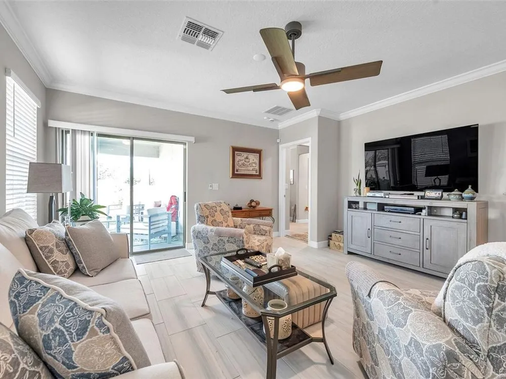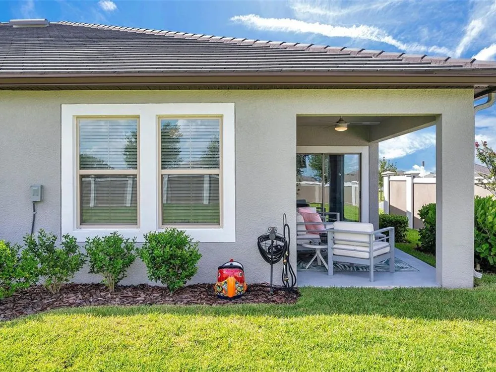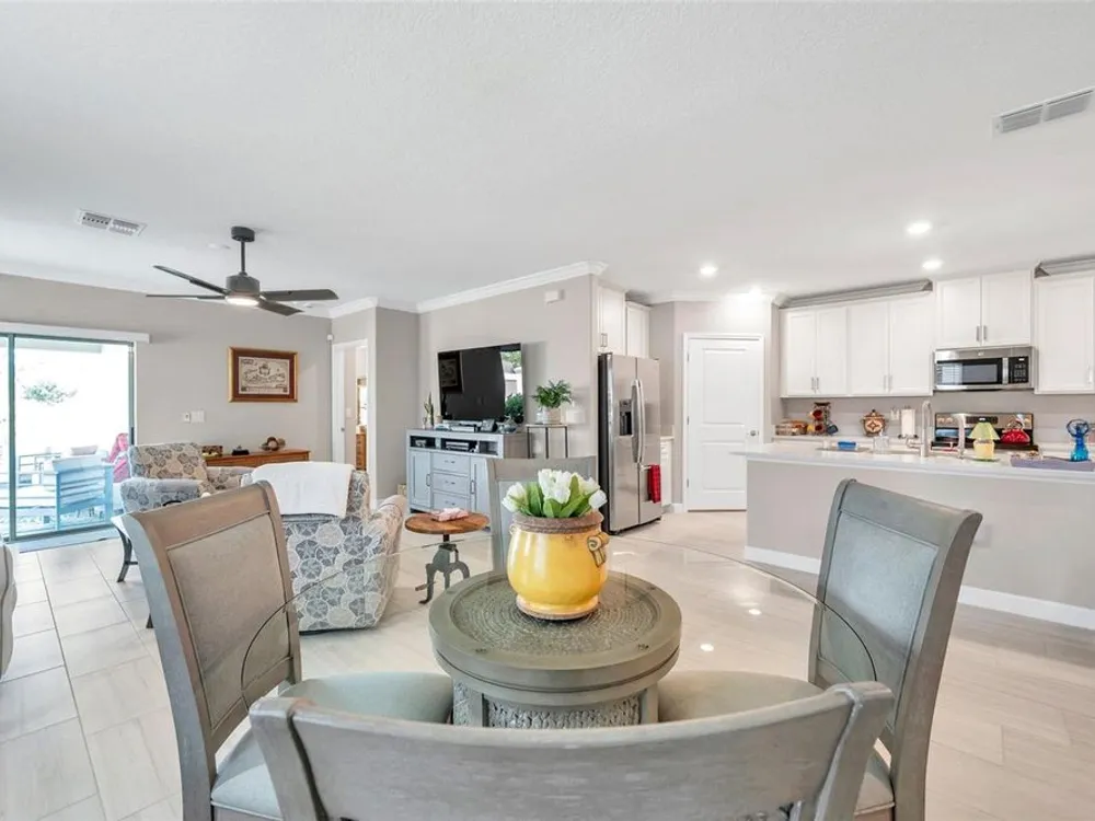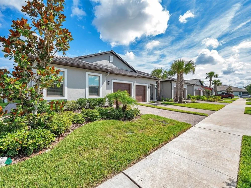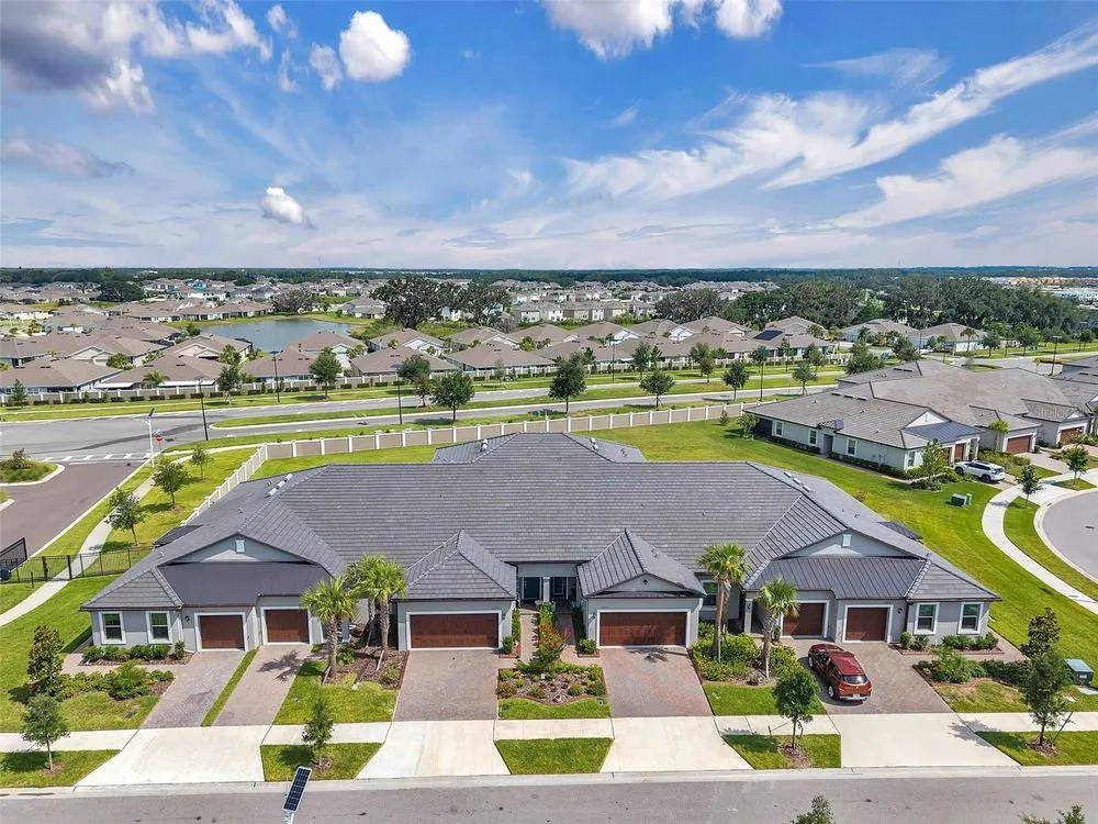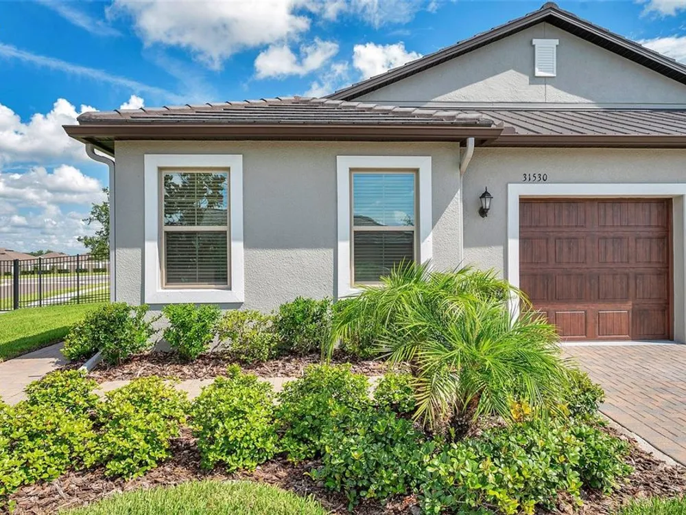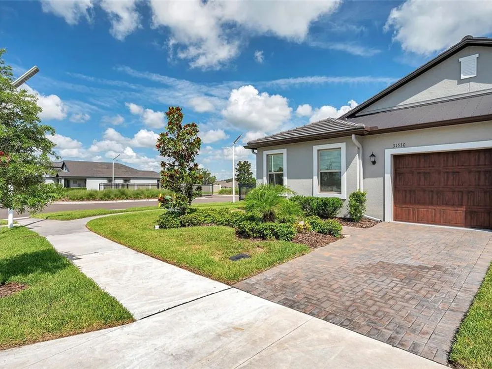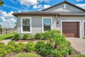 Maintenance-Free Villa in Gated 55+ Medley at Mirada! Welcome to this move-in ready end-unit villa in the highly sought-after 55+ Medley at Mirada community in San Antonio, Florida. This thoughtfully designed home offers 2 bedrooms, 2 full bathrooms, a versatile flex room, and a 1-car garage, all nestled in a gated, maintenance-free neighborhood with exceptional amenities. Step inside to an inviting open floor plan with a split-bedroom layout that maximizes privacy and functionality. You’ll find upgraded tile flooring laid in a stylish 70/30 offset throughout the main living areas, and plush carpeting in the bedrooms for added comfort. Crown molding (5¼") adds a polished touch to the living room, dining area, primary bedroom, and kitchen. The spacious kitchen is a chef’s delight, featuring a center island, 42" upper cabinets, a walk-in pantry, and upgraded quartz countertops with a 5" backsplash, complemented by stainless steel appliances. The adjoining living and dining areas flow seamlessly to the covered patio, offering the perfect space to relax or entertain in your backyard retreat. The primary bedroom boasts a large walk-in closet and a luxurious en-suite bath with dual sinks, upgraded quartz countertops with 5" backsplash, and a generous walk-in shower. The second bedroom is ideal for guests and is served by a hall bath with extended counter space, upgraded finishes, and a walk-in shower. Additional highlights include an inside laundry room and a flex room (10' x 12’) that offers endless possibilities - perfect as a home office, craft room, library, or den. Residents of Medley at Mirada enjoy exclusive access to the Medley Club, featuring a resort-style pool, fitness center with yoga, clubhouse events, pickleball and tennis courts, bocce ball, shuffleboard, dog parks for both small and large pups, and scenic walking trails. There’s even a Tot Lot for the grandkids! And that’s just the beginning—residents also have access to the incredible Mirada Lagoon, a beach-style oasis with swimming, paddleboarding, floating pickleball, waterslides, cabanas, mixology classes, bingo nights, and so much more. Live the lifestyle you’ve been dreaming of—schedule your showing today!