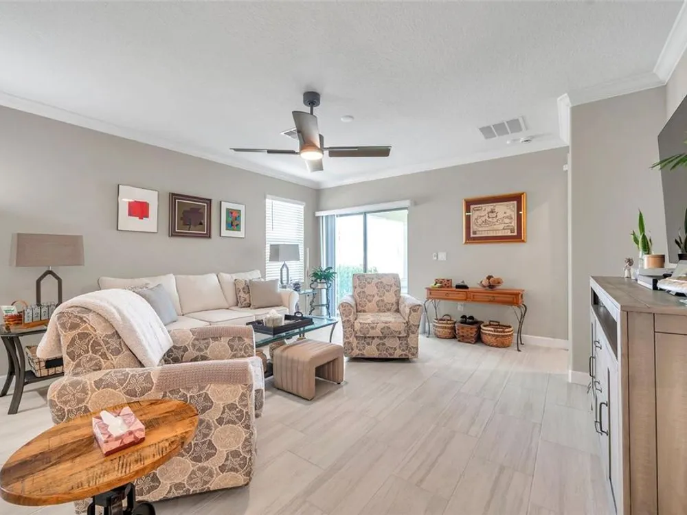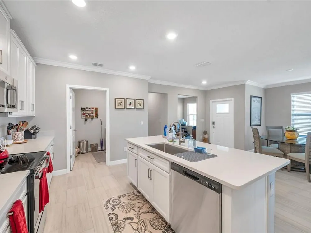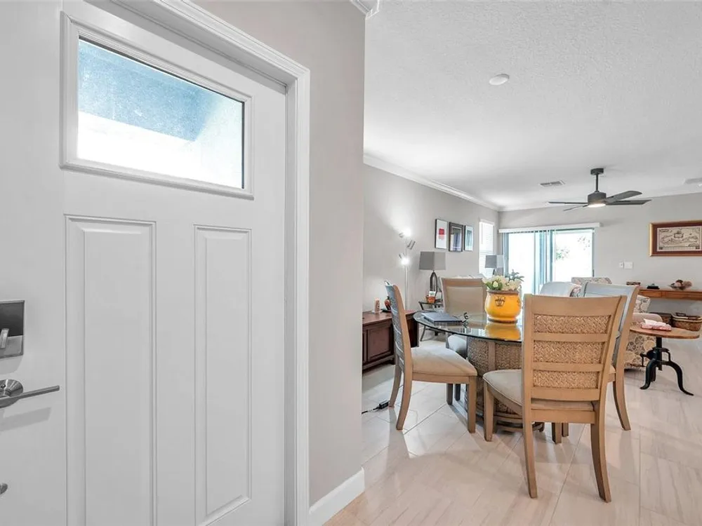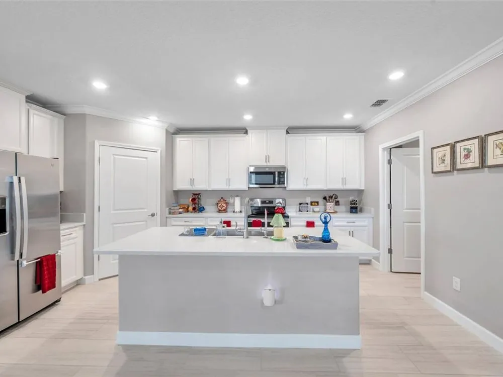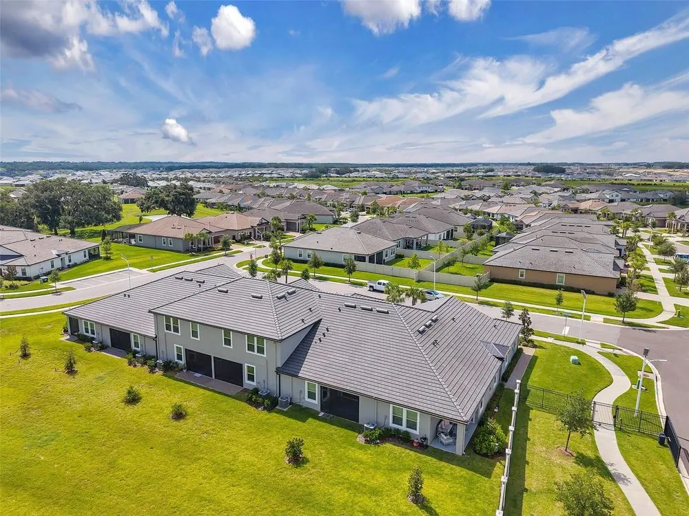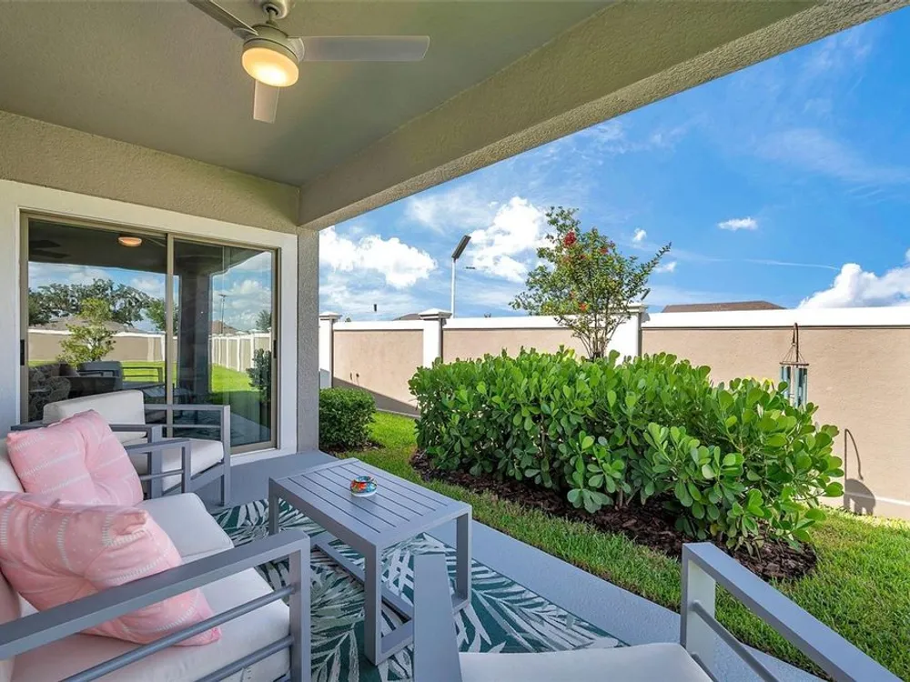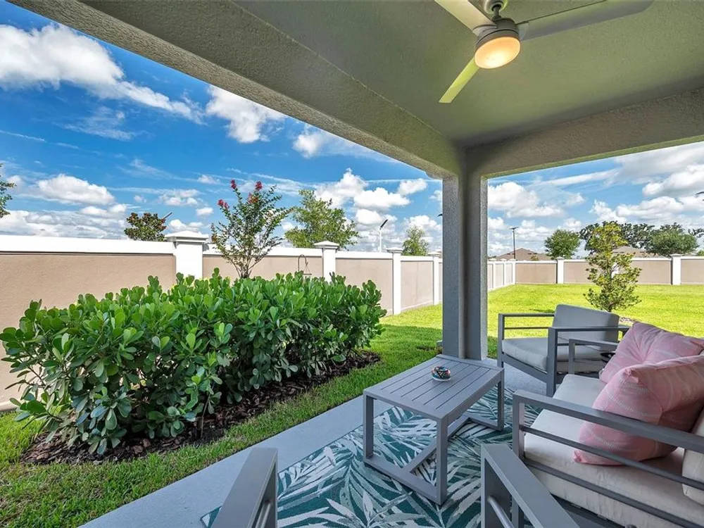 Maintenance-Free Villa in Gated 55+ Medley at Mirada! Welcome to this move-in ready end-unit villa in the highly sought-after 55+ Medley at Mirada community in San Antonio, Florida. This thoughtfully designed home offers 2 bedrooms, 2 full bathrooms, a versatile flex room, and a 1-car garage, all nestled in a gated, maintenance-free neighborhood with exceptional amenities. Step inside to an inviting open floor plan with a split-bedroom layout that maximizes privacy and functionality. You’ll find upgraded tile flooring laid in a stylish 70/30 offset throughout the main living areas, and plush carpeting in the bedrooms for added comfort. Crown molding (5¼") adds a polished touch to the living room, dining area, primary bedroom, and kitchen. The spacious kitchen is a chef’s delight, featuring a center island, 42" upper cabinets, a walk-in pantry, and upgraded quartz countertops with a 5" backsplash, complemented by stainless steel appliances. The adjoining living and dining areas flow seamlessly to the covered patio, offering the perfect space to relax or entertain in your backyard retreat. The primary bedroom boasts a large walk-in closet and a luxurious en-suite bath with dual sinks, upgraded quartz countertops with 5" backsplash, and a generous walk-in shower. The second bedroom is ideal for guests and is served by a hall bath with extended counter space, upgraded finishes, and a walk-in shower. Additional highlights include an inside laundry room and a flex room (10' x 12’) that offers endless possibilities - perfect as a home office, craft room, library, or den. Residents of Medley at Mirada enjoy exclusive access to the Medley Club, featuring a resort-style pool, fitness center with yoga, clubhouse events, pickleball and tennis courts, bocce ball, shuffleboard, dog parks for both small and large pups, and scenic walking trails. There’s even a Tot Lot for the grandkids! And that’s just the beginning—residents also have access to the incredible Mirada Lagoon, a beach-style oasis with swimming, paddleboarding, floating pickleball, waterslides, cabanas, mixology classes, bingo nights, and so much more. Live the lifestyle you’ve been dreaming of—schedule your showing today!