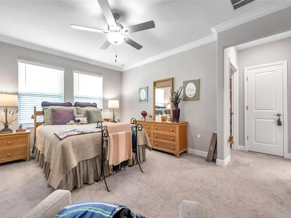 - Ceiling Fan(s), Crown Molding, Living/Dining Room, Open Floorplan, Split Bedrooms, Thermostat, Walk-In Closet(s), Window Treatments