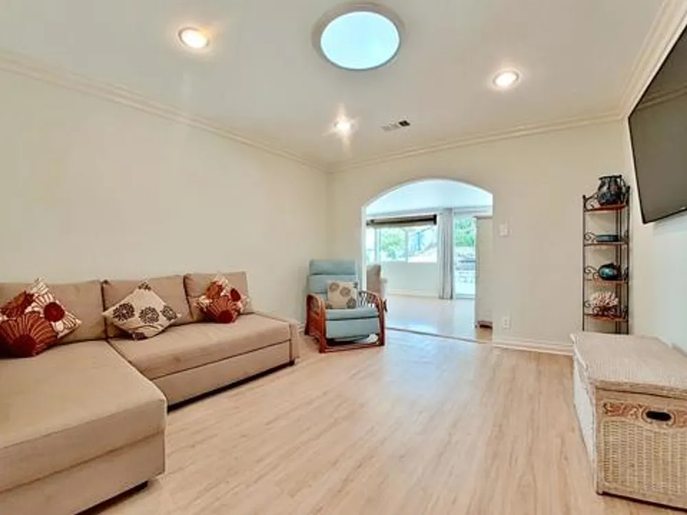 Light-Filled Home with Flexible Living & Peek Ocean Views Welcome to a spacious, sunlit residence that blends comfort, versatility, and location. The inviting floor plan features both a bright living room and a cozy family room, enhanced by upgraded flooring, plush carpet, recessed lighting, and a beautifully finished stone shower. The primary suite includes cedar-lined closets, while central A/C keeps the home cool on warm days. A large rear addition opens exciting possibilities—ideal for a Jr. ADU, caretaker’s suite, or extended living area, complete with its own bedroom, living space, bathroom, and private entrance. Need more options? The family room can be converted into an additional bedroom to suit your lifestyle. Outdoors, the backyard is designed for both function and enjoyment, featuring a built-in BBQ, tiered garden areas, and generous side access for RV or boat parking. From the welcoming front patio, take in peek ocean views and coastal breezes. Conveniently located near freeways, public transportation, shopping, and dining, this property offers both practicality and potential.
