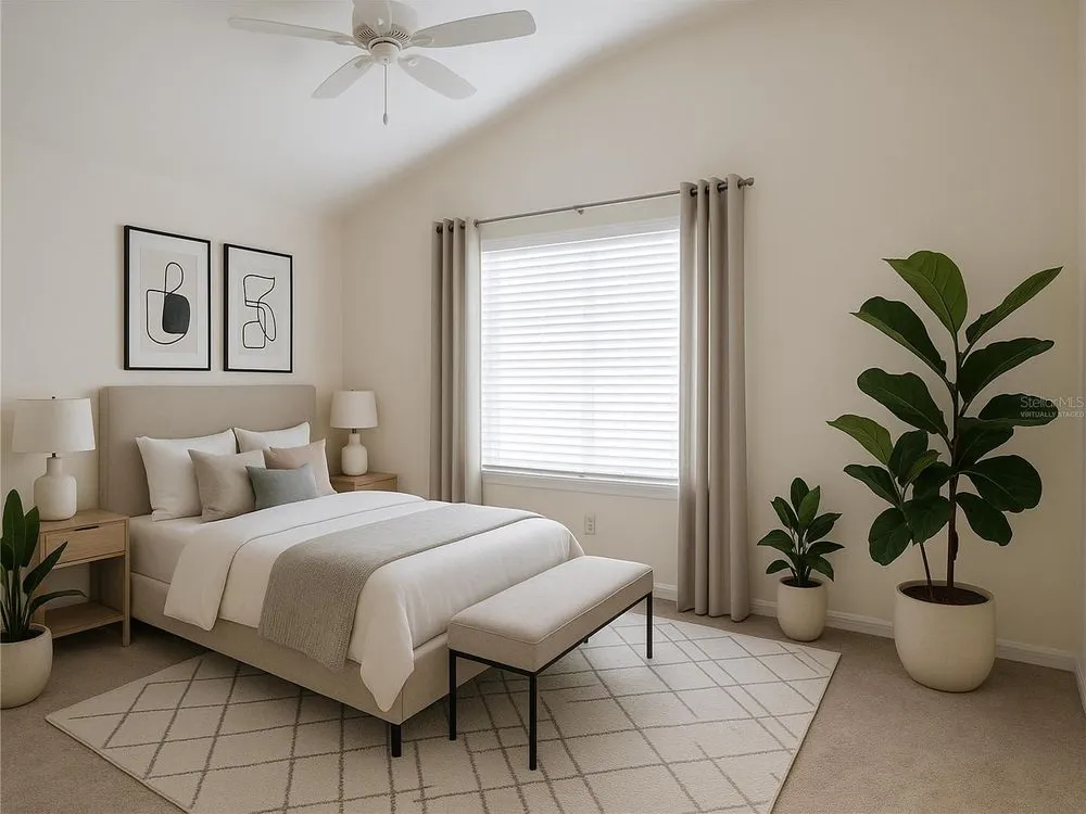 - Ceiling Fan(s), Open Floorplan, Main Level Primary, Solid Surface Counters, Thermostat, Vaulted Ceiling(s), Walk-In Closet(s)