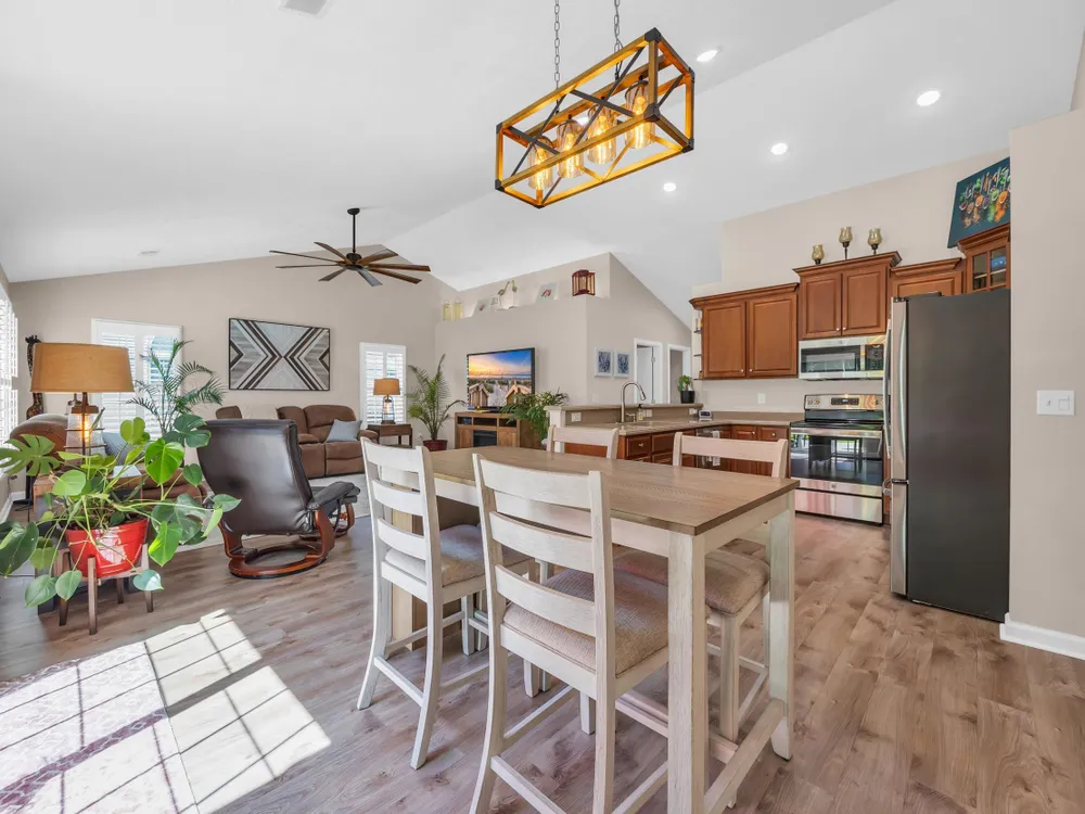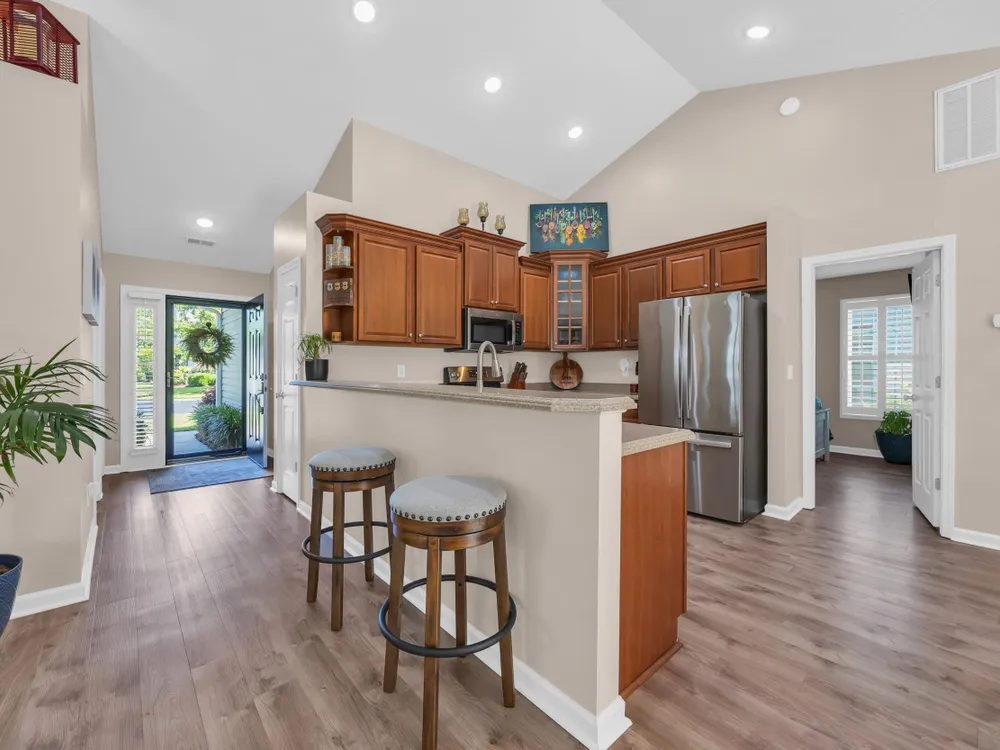 Welcome to 3154 Shorecrest Bay Drive – an impeccably maintained, turn-key Ranch-styled home in the Gated and highly sought-after community of Shallow Creek Bay, located within the prestigious Prince Creek enclave of Murrells Inlet, South Carolina. This 3-bedroom, 2-bath gem is nestled in a peaceful setting and offers both comfort and style with soaring ceilings, an Open Floor Plan, and thoughtful upgrades throughout. Step inside to find Luxury Vinyl Plank flooring, Plantation Shutters on every window, and stylish new lighting and ceiling fans. The fully renovated Primary and Guest Bathrooms deliver a spa-like feel, while the upgraded kitchen and living spaces create an inviting atmosphere for everyday living and entertaining. Recent updates include a newer HVAC system, water heater, garage door motor and springs, plus a beautifully extended back patio added in 2023. The Private Backyard is a tranquil retreat with manicured landscaping, upgraded exterior lighting, and lush green space for relaxation. The finished 2 Car Garage features Epoxied floors, modern ceiling fans, and sleek New Image Cabinetry (negotiable with sale). As part of a Gated Community with a 24-hour staffed entrance, residents of Shallow Creek Bay enjoy exceptional amenities: 2 Pools, Walking trails, Tennis and Pickleball Courts, Volleyball, Bocce Ball, a Clubhouse, and a Pavilion with a Fireplace. Trash pickup is also included. Conveniently located near the renowned TPC Myrtle Beach Golf Course, the Murrells Inlet MarshWalk, Wacca Wache Marina, shopping, dining, medical facilities, and just minutes from the beach, this home truly offers the best of living an Active Coastal Lifestyle. Don’t miss your opportunity to own this exceptional home in one of the area's most desirable gated communities. Schedule your private showing today and imagine living in Murrells Inlet- officially nicknamed the Seafood Capitol of South Carolina !