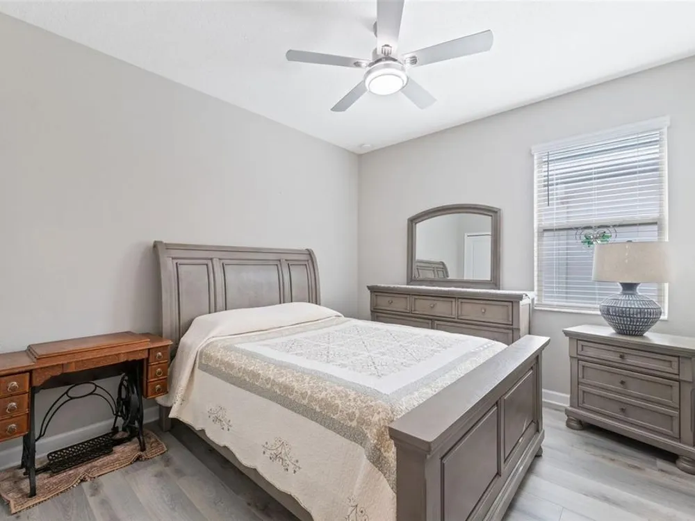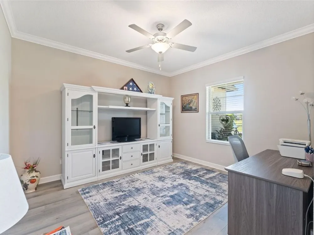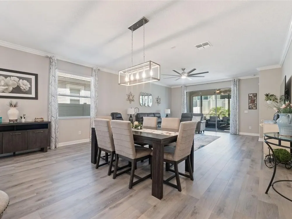 Welcome to your Dream Home in the popular Mirada Lagoon Community. Located in the Medley 55+ neighborhood which offers almost countless activities and amenities. This stunning 2 bed 2 bath + flex room home is very spacious and has an awesome open floor plan. This single story 1770 Sqft is full of upgrades noticeable from second you pull up . The perfectly manicured yard with curbing on flower beds. Also, the mulch has been replaced to rock for a better look and better drainage. The front door has been upgraded to a gorgeous glass insert. upon entering you notice the upgraded Luxury Vinal floors through the majority of house. This was not original but was a massive upgrade by homeowner. You will notice the crown molding through out ,plus great chandeliers and oversized fan. When entering the kitchen you will see beautiful stainless appliances , quartz countertop with a back splash that ties the room together. Fans in all bedrooms and flex space. Master bedroom is very spacious with plenty of light. Master bath has quartz countertops with Jack and Jill sinks. Stunning ceramic tile stand up shower with a corner bench. Upgraded hybrid water heater and Culligan water softener / treatment system "fully paid off" The real treat is the giant back yard 33 x22 patio. 10 x 18 enclosed under roof . A great place for a party!!! Garage is 20 x20 plus has a *8 x 9 work shop or golf cart area .Mirada is a golf cart community. Medley at Mirada is a Resort Style * no maintenance living in the exclusive 55+ gated community featuring private amenities . The community features beautiful Clubhouse, restaurant/ bar, 24 7 fitness center, large pool with lap area , pickle ball courts , tennis courts ,dog park , indoor dog wash station billiards and more. Events offers Zumba, water aerobics. Mahjong, Tai Ch i, and assorted card games. Also has a large banquet hall for events like concerts etc. The Mirada community has Florida's Largest Man Made Lagoon " 15 acres ".Community residents have access to lagoon at no charge and get 25 guess passes and really reduce prices on additional passes and upgrades. The lagoon does a monthly calendar. it does concerts , bingo, trivia night, movie night and much more. Many residents enjoy the swim up bar , restaurants , or just relaxing. Include with your HOA fee you get private landscaping ,exterior maintenance , high speed internet and expansive cable package. CDD is included in your property tax amount.