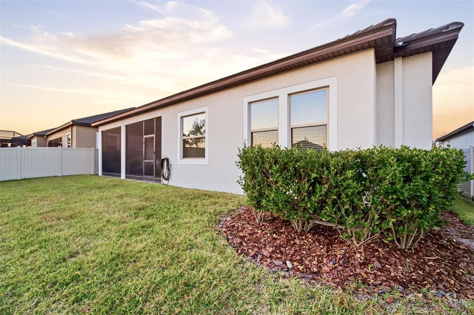 Enjoy MAINTENANCE FREE living in the 55+ GATED Medley section of the Mirada Lagoon Community, in this meticulously UPGRADED Halos model (Radiance Series) which offers 3 bedrooms, 2.5 baths, and 2,350 sq. ft. of thoughtfully designed living space—truly exceptional value for discerning buyers. Great CURB APPEAL with Concrete flat tile Roof, Tropical Landscaping, Brick PAVER driveway, walkway and COVERED front PORCH! Once inside, Elegant Foyer greets you with 17" ceramic tile on diagonal and TRAY ceiling separating guest wing (secondary bedroom and bath) from Common area. Split bedroom plan offers the expansive owner’s suite, featuring a luxurious bath with dual sink areas and separate mirrors, along with a generous walk-in closet complete with custom organizers and a stunning quartz-topped center island. The STUNNING state-of-the-art kitchen is OPEN to the Great Room and provides abundant storage, center Island breakfast bar, Butlers pantry and WALK in pantry while a versatile flex room serves perfectly as an office, den or guest retreat. Great room OPENS to screened rear lanai which overlooks the partically FENCED (3 sides..just needs gates to complete) backyard to enjoy the Florida sunsets! A second-floor storage room helps keep your home organized and clutter-free. This property is MOVE IN READY and loaded with over $40,000 in premium upgrades, including a seco custom-built butler’s pantry with wine cooler, Culligan whole-house water softener and carbon filtration system, custom entertainment unit with electric fireplace in Great room, upgraded GE Profile appliances (plus a 2024 refrigerator), 42” wood laundry cabinets with utility sink, and custom organizers in all three walk-in closets. Additional highlights include upgraded lighting and fans, and energy-efficient systems such as a Carrier 15 SEER AC and a 2024 hybrid 50-gallon water heater for low energy bills! Best of all, Medley’s exterior maintenance provides true peace of mind, with services including full lawncare (mowing, mulching, trimming, blowing, fertilizing, and insect control) plus scheduled exterior painting every seven years. Added value continues with a Tier 1 pest-control system with bait stations and a yearly termite bond, along with the additional storage space in the upstairs room off the 2 car garage with GOLF CART garage parking too! This is the perfect blend of luxury, convenience, and carefree living in the Resort Style 55+ section of MEDLEY in Mirada offering exclusive amenities including Clubhouse, onsite restaurant, beach entry pool, pickleball courts, fitness center, ballroom with banquet facilities and planned classes, activities, events and excursions. Located North of Tampa, just off Major highway for easy access to Wesley Chapel, Ocala, Orlando, Lakeland, Airports and Florida Beaches! CALL TODAY to see why this IS the place to BE!