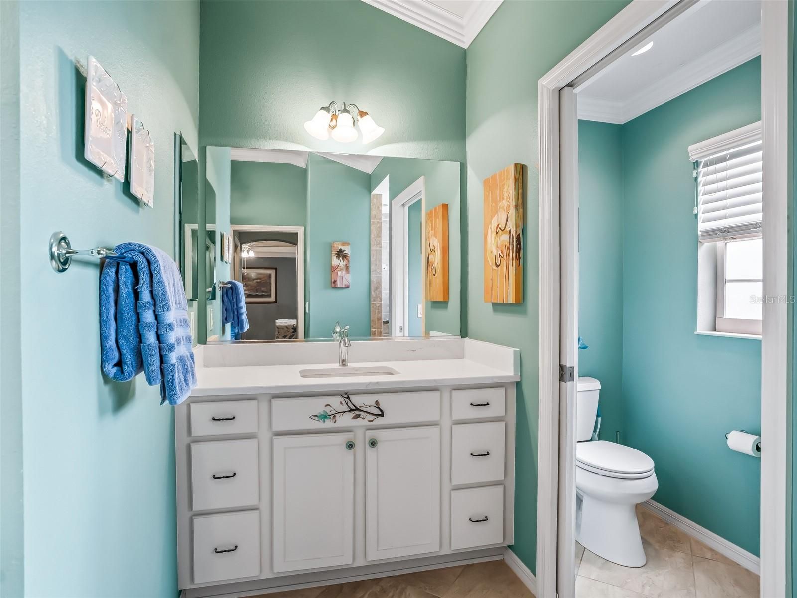 A steal of a price for this high end high quality home inside and out! This Begona model is rich with charm and character. Plantation Shutters throughout, pocket doors, Split bedroom arrangement, 3rd bedroom used as a TV viewing area, 2nd bedroom is the perfect guest suite. In the Kitchen, Roll out shelving in lower kitchen cabinets and the wall pantry makes a happy cook for sure, wrap around breakfast bar has new Quartz countertops, breakfast nook with bakers rack with customized table and chairs are optional to stay. The ensuite primary bath has separate dual sinks and matching his and hers walk in closets with organizers and pocket doors. Both the primary bath and the guest bath have new sinks, faucets and countertops and ceramic tile flooring in 2025. The walk in Roman shower has shower benches and new shower head. The private water closet has a frosted window for natural light. The volume ceiling in the primary bedroom is complimented by a new lighted ceiling fan and custom laminate flooring. The laundry room is located off the kitchen and has a utility sink, washer & dryer stay, flooring is ceramic tiled. Expanded 2 car garage with solid door and 2ndary electric overhead screen door is great for seasonal weather changes, (2017 Quietech Yahama golf cart can be purchased separately with details at the home). This home has Twilight outdoor lighting enhancement for evening beauty and the meticulously groomed professional landscape package sets this stylish home apart from others. There's a Roof fan and some area of the attic is floored, Garage shelving stays. Optional interior furniture package will be considered- separately. Ceramic tile flooring, privacy screens and sliding windows were added upgrades in the Lanai. A stylish frosted overlay on the end windows adds to the peace and privacy of this 'any occassion' Lanai. New Bosch dishwasher, stove and refrigerator are all part of the updates here. Garbage disposal new in 2025, plus replaced sink and new circulating pump for kitchen hot water. Some Interior lights and fixtures have been updated too. Entry door has new leaded glass with leaded side window. Quartz countertops are new throughout the home in 2025. The exteror of this home has been freshened and the driveway was freshly painted and sealed. There are 3 solar tubes not to be missed!! The finishing touch is the crown molding throughout this home. The mature landscape and new irrigation control system were installed in 2023. New 40 gal electric Rheem hot water heater installed in 2024, New liftmaster garage door openers in 2024, New thermostat in 2024, New exterior LED recessed lights in eaves. Low bond balance. Enjoy nearby golf at Bonifay Golf and Country Club or Volusia Executive golf course or choose from 4 other nearby courses. Medical and shopping are a 5 minute drive away. Another great asset is the short drive to Sumter Landing Square or enjoy all of the eateries at Brownwood Square. Location Location Location in the Villages of Sanibel!