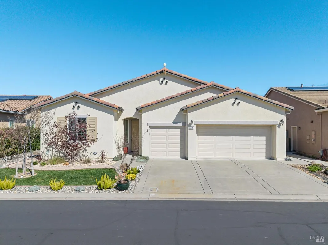 Popular Verano Floor Plan with solar, 3 bedrooms, 2.5 baths, and 3 car garage. Beautiful plank tile floors throughout most of the home, spacious primary and guest suites, ceiling fans, and chocolate-stained cabinets, and retractable screen door on the entry door are just of the few wonderful interior appointments. The beautiful kitchen features granite countertops, decorative tile backsplash, a large central island with built-in breakfast table, and sleek stainless appliances including electric cooktop and refrigerator. The laundry room includes a large pantry closet as well as cabinets above the included washer and dryer. Outside, you'll enjoy a lovely covered patio and delightful landscaping. Water treatment and fire suppression systems are also provided in this home. Life in Trilogy offers access to abundant amenities, including an 18-hole golf course, resort-style clubhouse, fitness center, indoor and outdoor pools, tennis, pickleball, a full-service spa, bocce ball, clubs, events, and activities for every interest. Enjoy the Trilogy lifestyle while living your best life in this fabulous cheerful home. Trilogy is a 55+ community.