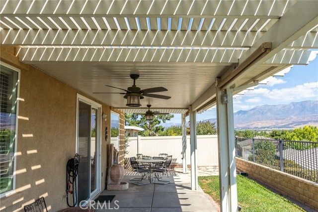 Stunning Heritage III Home with Unmatched Privacy, Panoramic Views & Resort-Style Amenities! Welcome to one of the most desirable homes in the prestigious 55+ guard-gated community of Four Seasons—Beaumont. Perched at the tip of a scenic cul-de-sac and bordered by serene walking trails instead of neighboring homes at the end of the cul-de-sac, this immaculate residence offers the perfect blend of privacy, luxury, and breathtaking mountain views. Featuring approximately 2,076 sq. ft., this thoughtfully designed single-story home includes 2 spacious bedrooms, 2 full baths, and a versatile den/office with double door entry. The open-concept layout flows seamlessly from the chef’s kitchen—complete with granite countertops, upgraded cabinetry, stainless steel appliances, and a large island—into the expansive great room and formal dining area. Custom enlarged picture windows frame the alpine vistas, while the gas fireplace and built-in entertainment center add warmth and elegance. Interior upgrades abound: 20" ceramic tile flooring, crown molding throughout, recessed lighting, ceiling fans, wide baseboards, and coordinated custom paint. The luxurious master suite boasts a remodeled bathroom with a jetted tub, walk-in shower, double vanity with makeup counter, and generous his-and-hers closets. Step outside to a beautifully landscaped, drought-tolerant yard designed for easy upkeep and maximum enjoyment of the surrounding natural beauty. The Alumawood patio cover provides shade for relaxing or entertaining while soaking in the panoramic views. ????? **Location Highlights:** - Direct access to scenic walking trails—no neighbors to the right! - Easy freeway access and close proximity to shopping, dining, casinos, Cabazon Outlets, and Palm Springs ?? **Community Amenities Include:** - The Lodge clubhouse with bistro, movie theater, pool hall, and beauty salon/spa - Three heated pools and spas, including “The Summit” indoor aquatic center - Tennis, pickleball, basketball, bocce ball courts - State-of-the-art gym and hiking trails - Daily and weekly social events that make every day feel like a vacation With a location that offers both tranquility and convenience, this home is truly one-of-a-kind. Whether you're entertaining guests or enjoying a quiet evening surrounded by nature, this property delivers the lifestyle you've been dreaming of. Don’t miss your opportunity to own this exceptional home—schedule your private tour today!