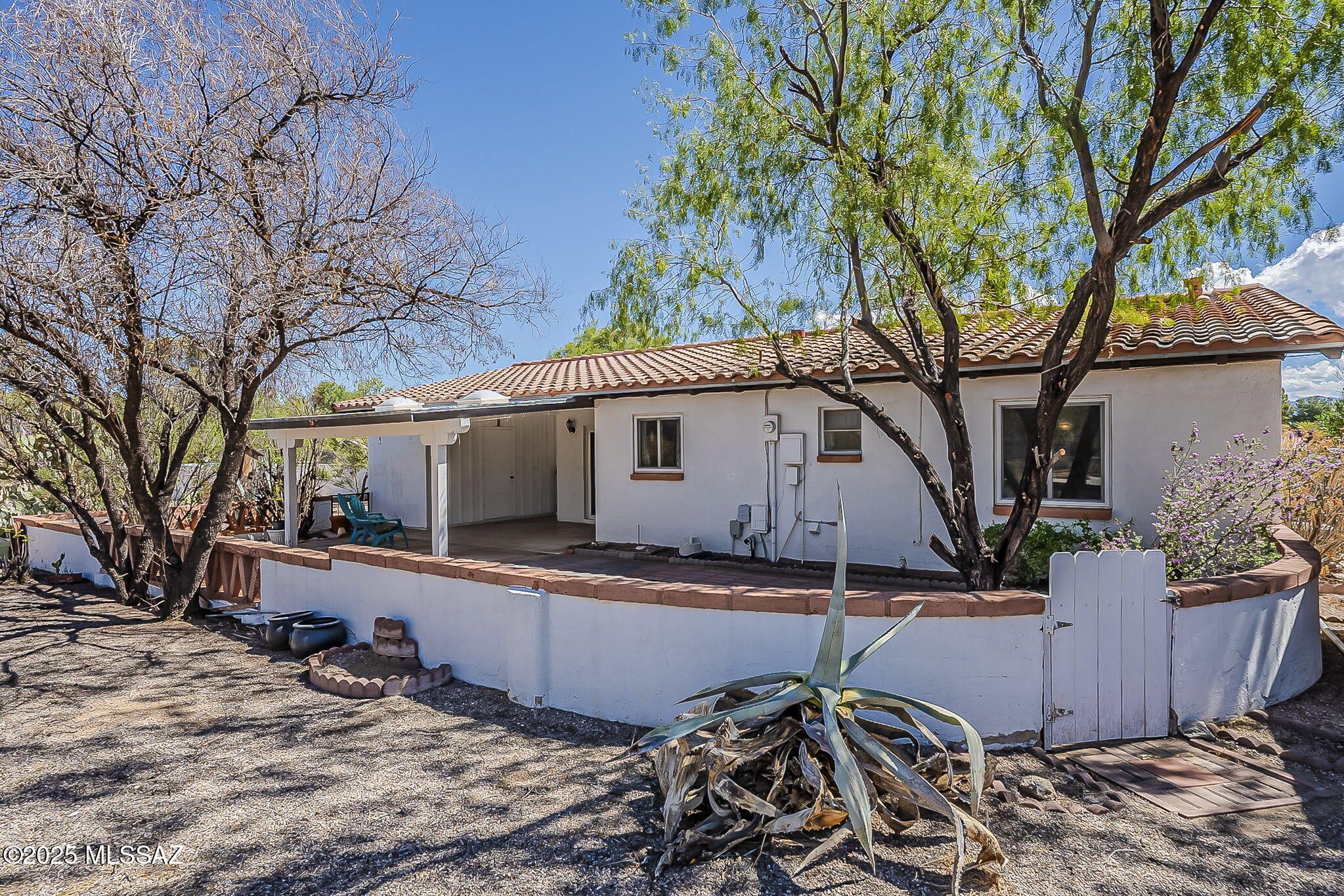 Welcome to this delightful 2 bedroom, 2 bathroom single story home located in a 55+ community in Green Valley! Nestled on a nice cul de sac lot with mountain views from the front, this home offers an inviting layout with a bright living area and a cute kitchen, perfectly designed for everyday living. An attached workshop/storage room just off the carport is ideal for hobbies, tools, or extra storage. Backyard features a covered patio, separate area with a stone fireplace and a large TuffShed with its own A/C unit, two entrances and endless possibilities for a workshop, private retreat or creative studio. Located close to shopping, dining, golf, I-19 access and all the amenities Green Valley is known for, this home provides the perfect blend of comfort and convenience!