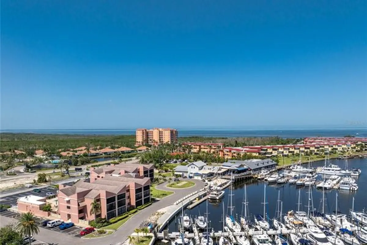 Enjoy front-row seats to the boating action from this charming 1-bedroom, 1-bath Keel Club condo overlooking Burnt Store Marina’s vibrant main basin. This top floor end unit not only enjoys extraordinary marina views, but the waterfront lifestyle you have been dreaming about! This inviting residence is a true retreat—being offered fully furnished turnkey for your immediate enjoyment… ready to enjoy or rent from day one. Inside, the open kitchen with breakfast bar flows seamlessly into the living area and out to the spacious screened waterfront lanai—perfect for morning coffee or evening cocktails as you watch the boats come and go. The condo features tile flooring throughout, with stylish wood-look flooring in the bedroom for a touch of warmth. Residents enjoy access to a striking heated community pool with an expansive paver sun deck—ideal for socializing or soaking up the Florida sun. A great place to meet neighbors and make new friends. You will also enjoy the waterfront community deck, where you can enjoy your favorite charcuterie board with your cocktail of choice as you enjoy the balmy breezes. Take a few steps to discover Burnt Store Marina’s top amenities, including the Cass Cay waterfront restaurant and bar, which features live entertainment and a great waterfront venue. The neighboring Trading Post is a great place to grab a freshly made sandwich or pizza or enjoy your favorite ice cream. The fitness center, and tennis/pickleball courts are also a short walk away. This gated resort community also boasts the largest deepwater marina in SWFL - making it the ultimate retreat for boaters and water enthusiasts! Keel Club allows nightly rentals, making this an exceptional investment opportunity. The current owner successfully rents the unit 4–5 months per year, creating strong potential for income when you’re not using it.