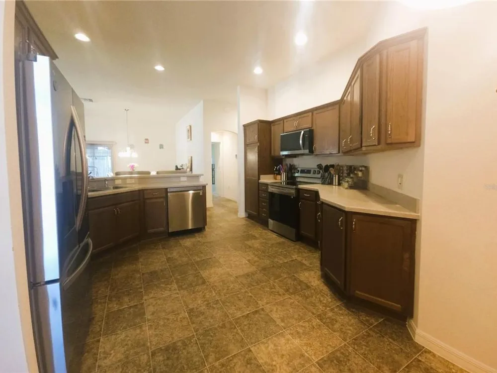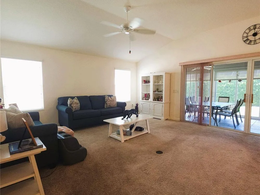 Welcome to 3161 Dressendorfer Dr in the Village of Pine Ridge. This beautifully cared-for Sunflower Model, also known as the Begonia or Mockingbird, offers 1,907 sq ft of living space plus a professionally enclosed 29' x 11' lanai with its own A/C unit and two ceiling fans. With another 319 sq ft under air, this lanai is perfect for relaxing summer afternoons, quiet mornings, or evening gatherings. Step outside and enjoy the natural privacy provided by mature landscaping directly behind the lanai, creating a peaceful retreat. Inside, the popular split-bedroom layout combines comfort and function. The kitchen features LG stainless steel appliances that are only two years old, a spacious pantry, and a bright breakfast nook. The living and dining areas flow easily toward the lanai, making entertaining effortless. The primary suite includes tray ceilings, two walk-in closets, and a spacious bath with dual sinks and a Roman-style walk-in shower. Guests are welcomed with their own wing at the front of the home, featuring two bedrooms and a full bath with a tub/shower combo. A two-car plus golf cart garage provides ample room for vehicles and storage. This home’s location is another highlight, near Colony Plaza Shopping Center and Colony Cottage Recreation Center with its sports pool and activities, and centered between Brownwood Paddock Square and Lake Sumter Landing for shopping, dining, and nightly entertainment. Motivated seller makes this an excellent opportunity to secure a Sunflower model with plenty of potential in one of The Villages’ most desirable locations.