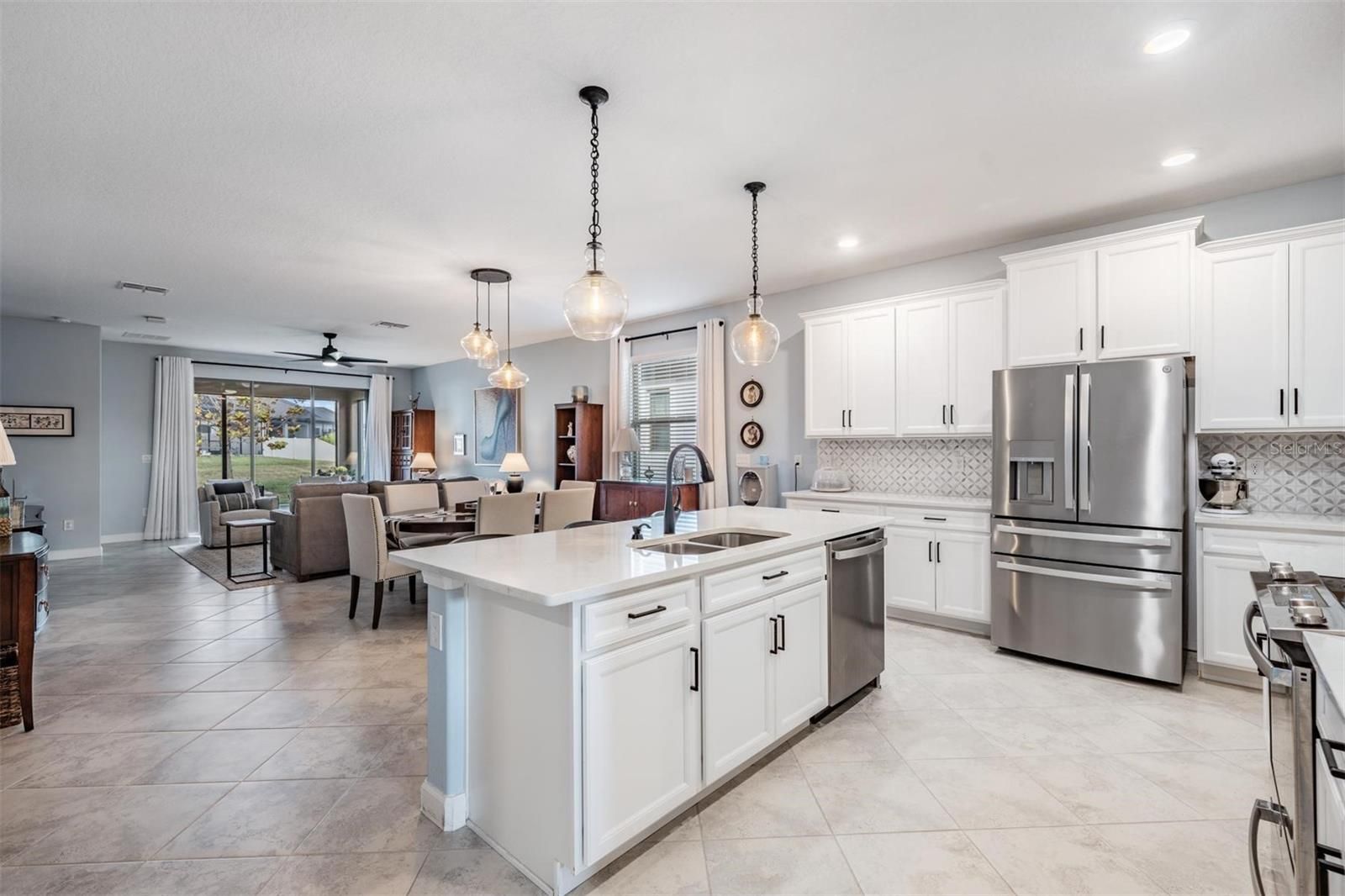 Medley Active Adult for those better than 55 years young presents an exceptional lifestyle just beyond the confines of your home. As a resident, you'll enjoy exclusive Clubhouse access with a full calendar of events daily! You will also enjoy a grill & bar, heated pool w/cabanas, ballroom, billiards room, card room, state of the art fitness center, pickleball & tennis courts, bocce ball, yoga, bingo, card games, line dancing and private active adult events. PLUS included in your HOA is a 15-acre lagoon membership w/soft, sandy beaches including a swim-up bar, kayaking, paddleboarding, obstacle course, waterslides, corn hole games, and tons of community events! This immaculate home will please even the most selective buyers! Comprised of 3 spacious bedrooms, 2 full baths, 1 half bath, and bonus room that could be used as an office or den. Your new home has quartz countertops throughout, UPGRADED stainless appliances and abundant cabinetry. Sliding glass doors lead to your screened and tiled Lanai. As you step inside, you'll be greeted by a seamless flow of open living spaces, making it ideal for both relaxation and entertaining. Get ready to make memories that will last a lifetime! Your dream home awaits; you will be enjoying the CAREFREE FLORIDA RESORT LIFESTYLE in your new home as quickly as you are able to move in! Gorgeous curb appeal on this block home with a 2-car garage plus a golf card garage. Enjoy 42" Cabinets, beautiful modern backsplash, and spacious walk-in Pantry in this gorgeous kitchen. Primary Suite includes ensuite bath, dual sinks, walk-in shower and Walk-in CUSTOM Closet to keep you organized, ceiling fans, & tile flooring. Seller has also added KITCHEN BACKSPLASH, TILE IN PRIMARY SUITE, RAIN GUTTERS, WATER SOFTENER, sliding screen door, sealed pavers, hanging storage in garage, Cabinets in laundry room, EXTRA FANS, UPGRADED LIGHTING, SCREENED LANAI for your enjoyment. Beautiful UPGRADED TROPICAL LANDSCAPING with rock & stacked stone border is a standout on curb appeal in this energy efficient home. High-speed (ULTRAFI) internet, premium cable, yard maintenance & exterior painting are included by the HOA. Situated in close proximity to premier shopping destinations, and an array of dining options, you'll find yourself immersed in a vibrant community that strikes a perfect balance between exclusivity and convenience. Ride your Golf Cart to the Clubhouse, Publix, Chick-fil-a, Starbucks, Farmers Market and more right in the neighborhood! Close to Advent Health Hospitals, BayCare Hospital, Florida Medical Clinic, Wire Grass Mall, Tampa Premium Outlet Mall, Krate at the Grove, Sam's Club, Costco, Golf Courses & Movie Theater. Easy access to I75, 275, Tampa International Airport, Downtown Tampa and Florida's amazing beaches. CDD IS ALREADY INCLUDED IN TAX AMOUNT.
