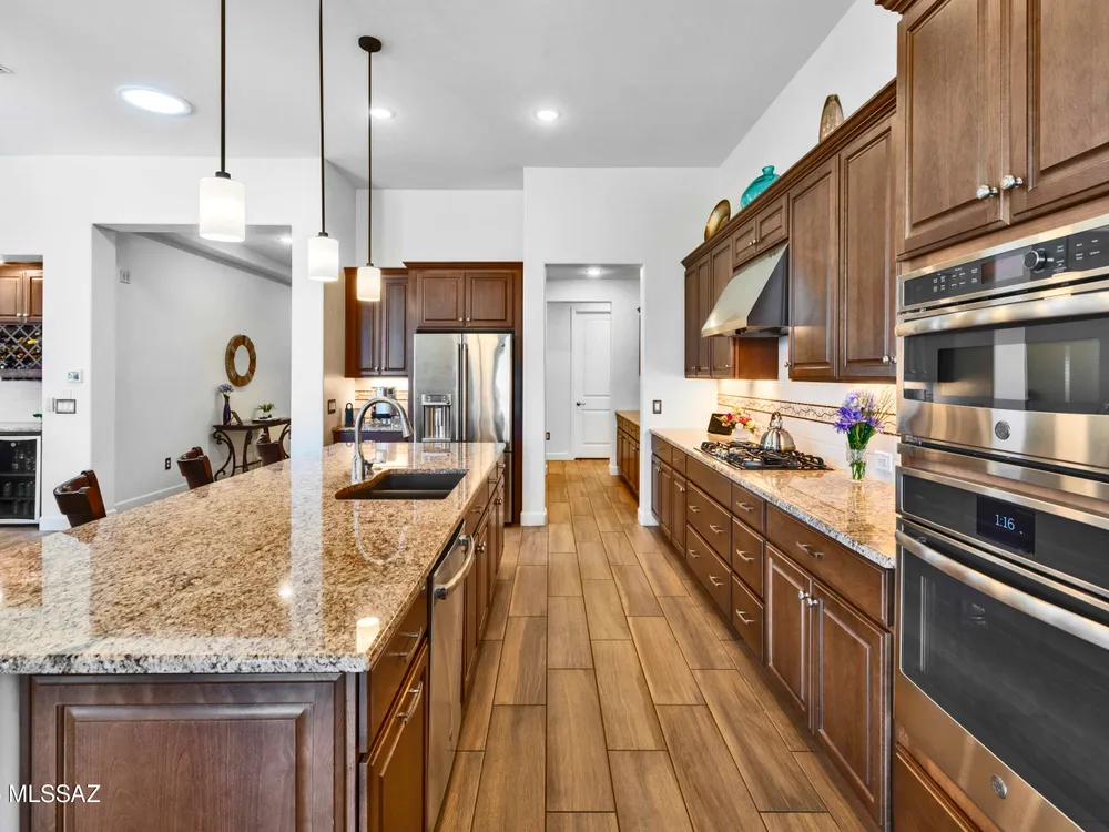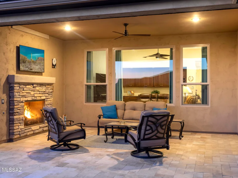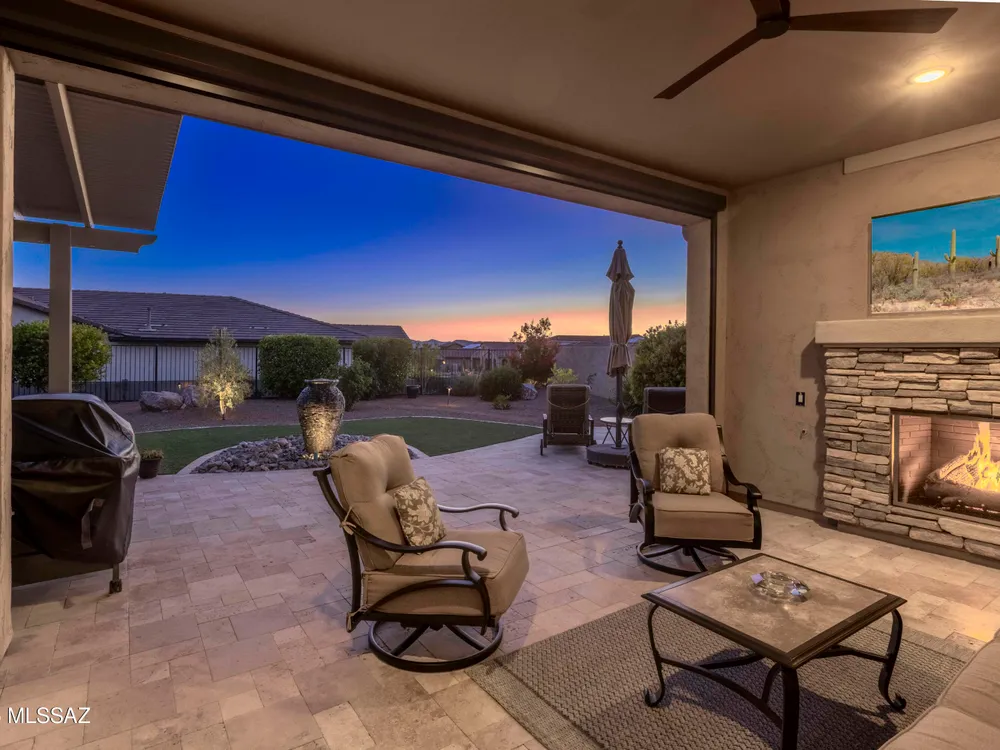 A highly Upgraded 2954 Sq. Ft. Exterior Design C Avalon 11,620 Sq. Ft. (.27 acres) on a corner lot w/Sunset Views! Structural changes to the home includes: Optional Guest Suite (that includes a Sitting Area, and Guest Suite En-Suite. This brings the home to 3-Bedroom En-Suites; Expanded Den; Great Room; Grand Island Kitchen with Butler's and Walk-In Pantries; Formal Dining Room with Custom Built-In Buffet; Powder Room; Extended 3-Car Garage; 280 Sq. Ft. 9'',10'', and 11'' Ceilings Hights Ceiling throughout the house. Outdoor Covered Living Space with Fireplace and Tucson Rolling Shades, A Travertine extended Back Patio; Pergola off Master Suite; and a Hot Point Above Ground Spa that conveys with the sale of the home!