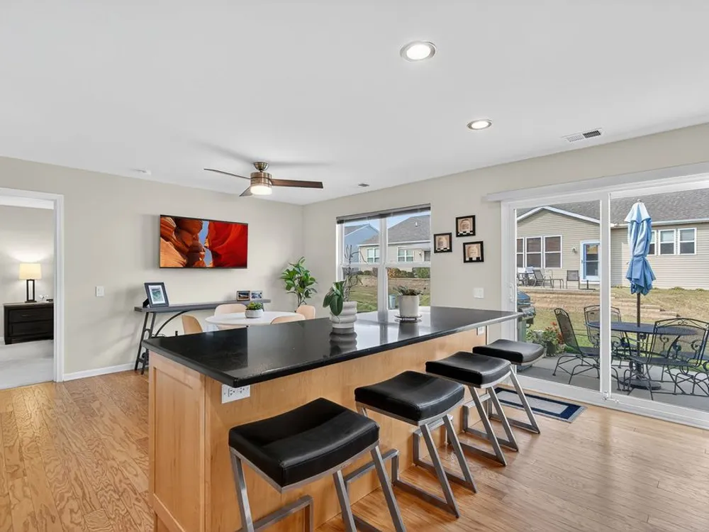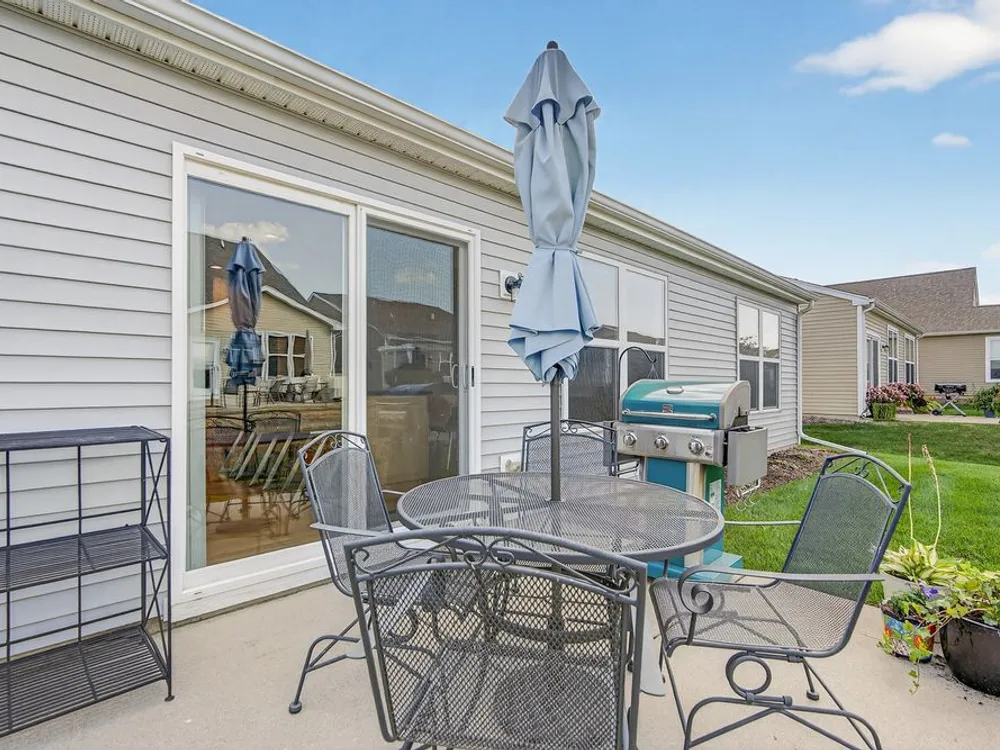 Welcome to Grand Dominion, an active 55+ community where comfort meets connection. This beautifully maintained home, built in 2014, features 2 bedrooms, 2 full baths, a private office/den, and gleaming hardwood floors throughout the main living areas. The kitchen is a true centerpiece-designed for both function and fun-with abundant cabinetry, generous counter space, a stylish backsplash, double oven, and a huge island that's perfect for cooking or casual gatherings. The primary suite offers a peaceful retreat with an oversized walk-in closet and a private bath complete with dual vanities and a walk-in shower. Additional highlights include a convenient laundry room with washer and dryer, a spacious 2-car garage, EV charger installed in 2024, and new overhead lighting added the same year. Enjoy the Grand Dominion lifestyle-social clubs, interest groups, clubhouse with indoor and outdoor pools, tennis, bocce, and scenic walking paths. HOA covers lawn care, snow removal, tree and plant trimming, driveway sealcoating, and more, leaving you free to simply enjoy life. Quiet, comfortable, and designed for easy living-this home offers the space to relax, entertain, and thrive. Don't miss this opportunity-schedule your private tour today!