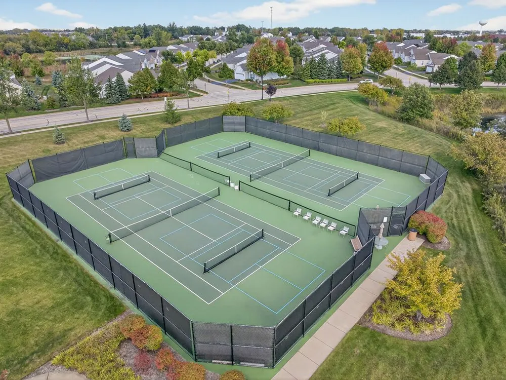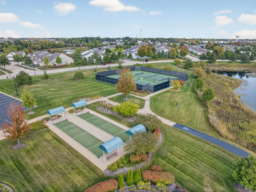 - Clubhouse, Pool, Tennis Court(s), Lake, Curbs, Sidewalks, Street Lights, Paved Streets