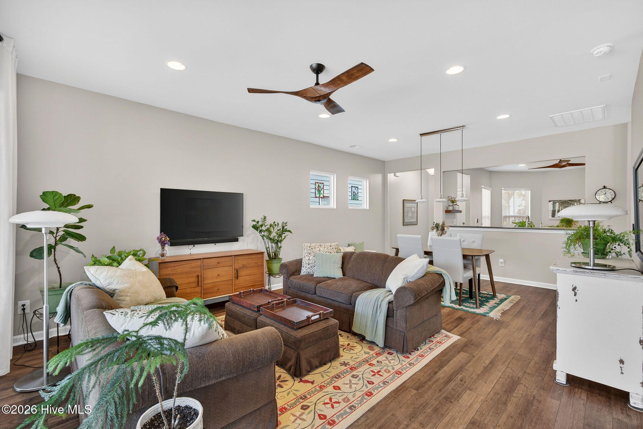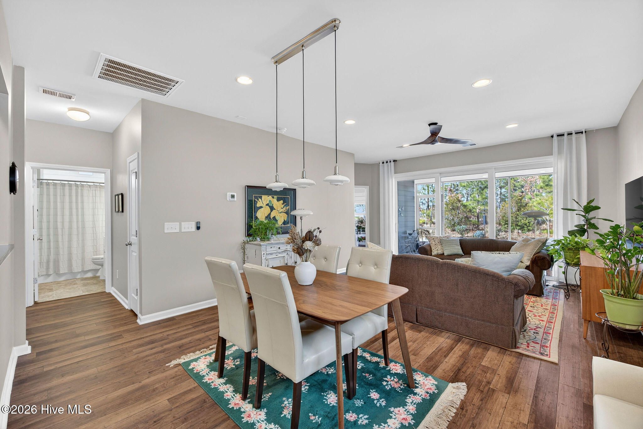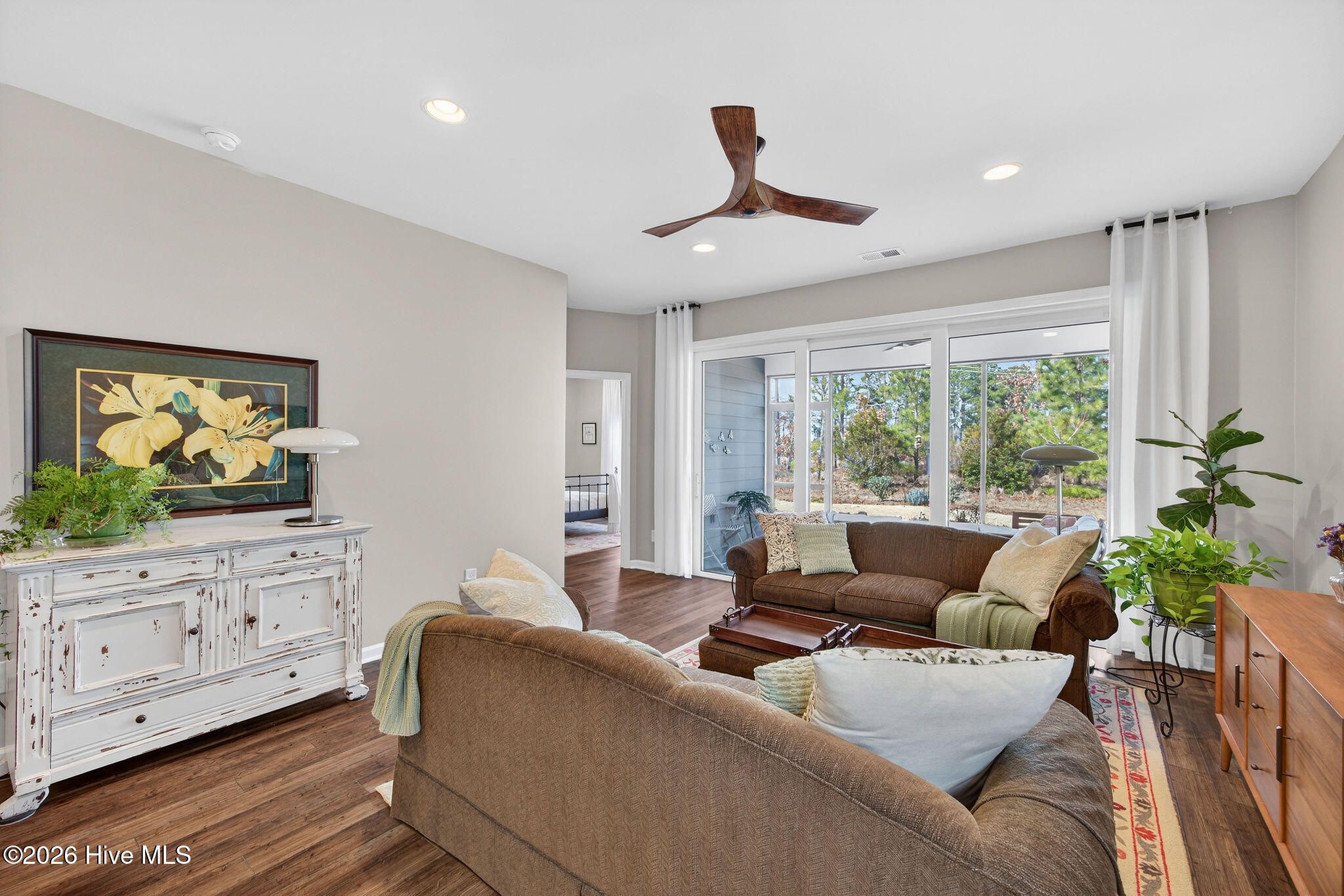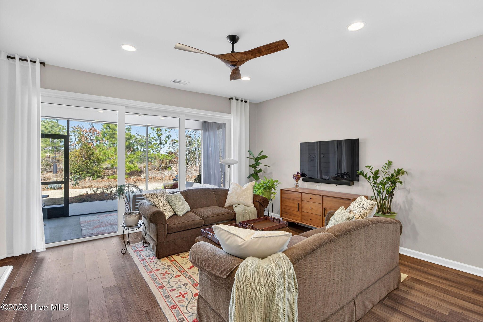 Lovely, low maintenance home in the amenity rich Riverlights- Del Webb Community. This original owner home has been well cared for and shows like new. Unique to this lot is natural space in the rear that provides peaceful nature views, great sunsets, and wonderful privacy. Upon entry you are greeted with LVP flooring that flows throughout the 2 BR home. The spacious kitchen features quartz counters, stainless steel appliances which all convey, a natural gas range and pantry. The comfortable living space leads to triple sliding glass doors opening to a fantastic covered, screened in porch. The elegant master suite has a double vanity, tiled shower and a generous walk in closet. The laundry room has cabinet space for storage and a folding station. The guest suite is ideal for a home office and is adjacent to a second full bath. The HOA handles all of your lawn maintenance so that you can spend your time enjoying all of the amenities, activities, and scheduled events offered in the community.