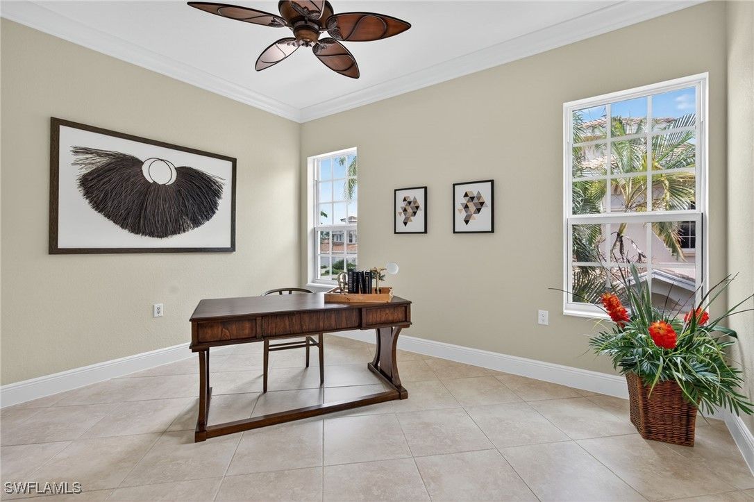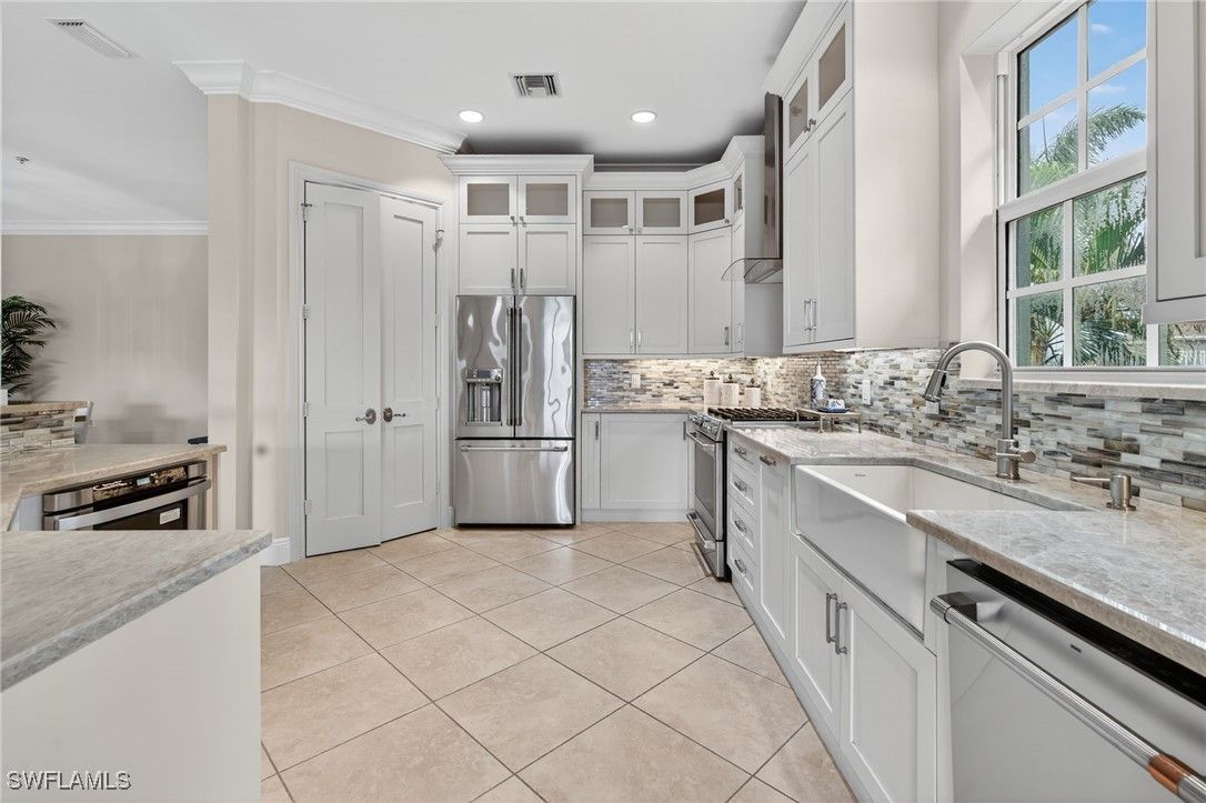 Discover this expansive 2nd-floor end-unit coach home in the sought-after Serena neighborhood of Fiddler’s Creek. With PRIVATE ELEVATOR and GENERATOR, this residence also features impact windows, storm shutters, a tankless water heater, and a newer roof—delivering both luxury and peace of mind. With over 3,000 sq. ft. of living space, the home offers 3 bedrooms plus a den, 3 full baths, and a spacious 2-car garage. The open, light-filled floor plan highlights a beautifully remodeled kitchen with stainless steel appliances, Taj Mahal quartzite countertops, and a custom backsplash, opening seamlessly to the large great room—perfect for entertaining. The primary suite boasts a stunning remodeled bath with dual quartz vanities, a walk-in glass shower, and a soaking tub. Two generously sized guest suites, each with en suite baths, provide comfort and privacy. Enjoy tranquil water views from the oversized screened lanai, along with access to the private community pool with heater and chiller, exclusively for Serena residents. Move-in ready, this rare offering combines upgrades, convenience, and resort-style living. Residents of Fiddler’s Creek enjoy access to world-class amenities, including a 54,000-square-foot Club & Spa with two on-site restaurants, resort-style pools, fitness center, tennis, pickleball, and bocce courts. Optional memberships are available for golf, beach, and boating. Ideally located just minutes from the white-sand beaches of Marco Island, downtown Naples, and an array of shopping and dining destinations.
