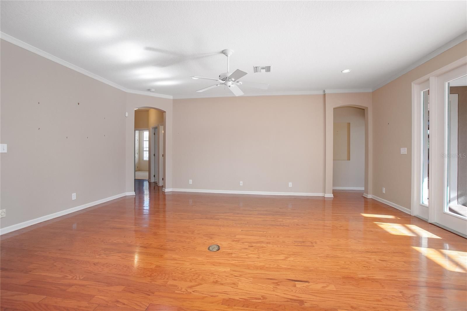 - Ceiling Fan(s), Crown Molding, Eat-in Kitchen, High Ceilings, Kitchen/Family Room Combo, Open Floorplan, Solid Surface Counters, Walk-In Closet(s), Window Treatments