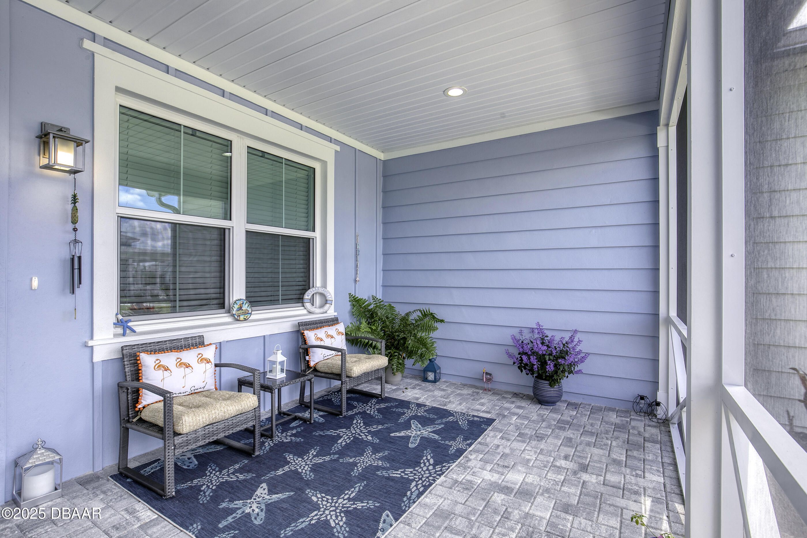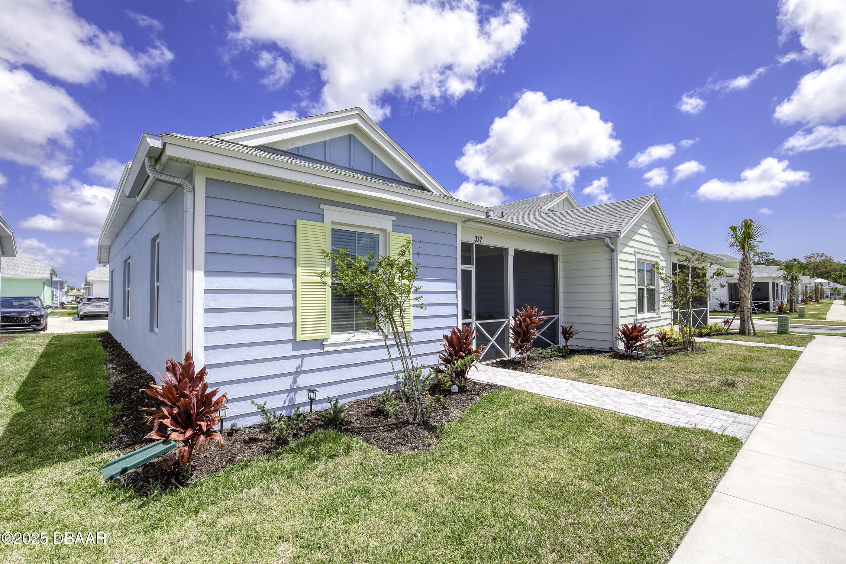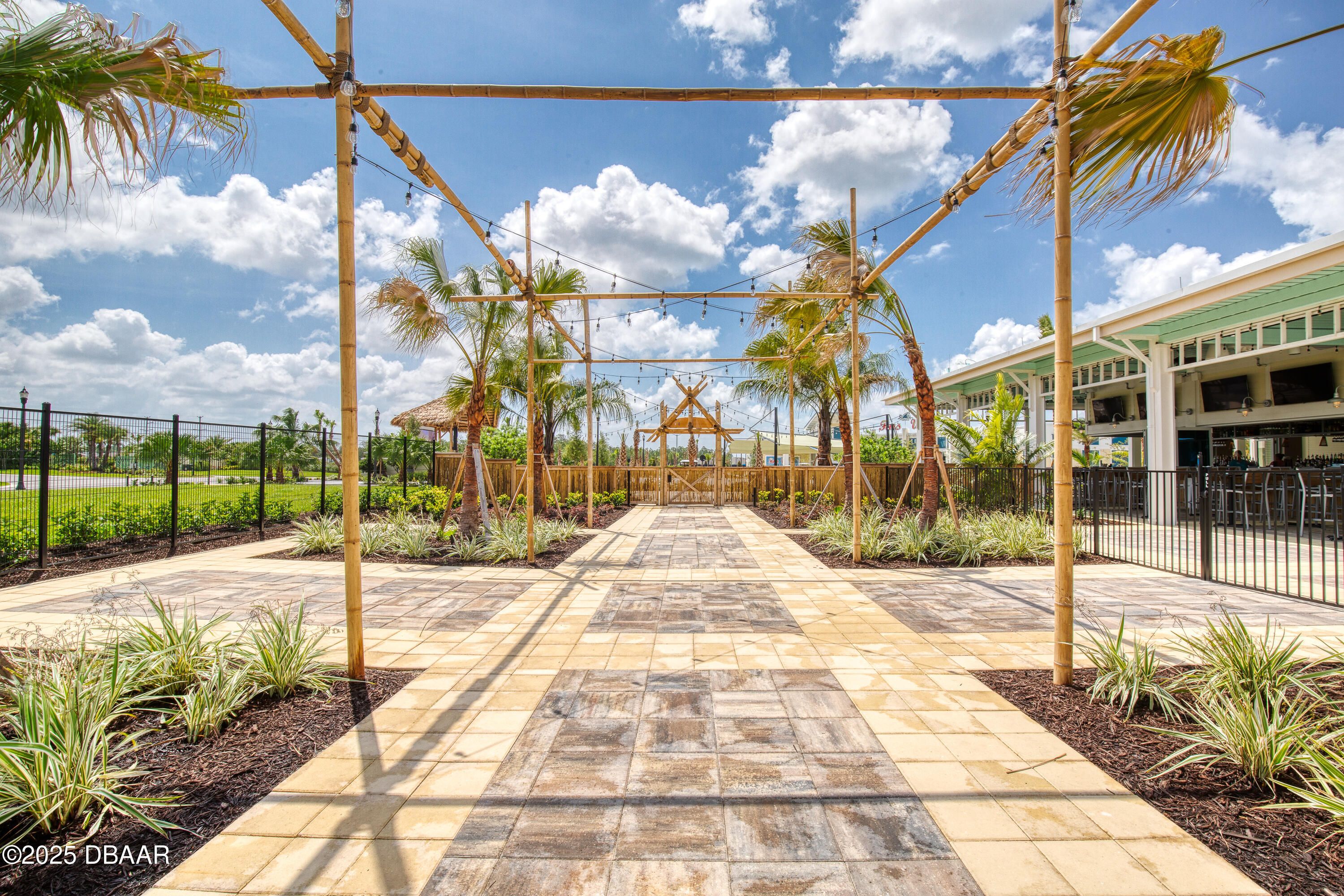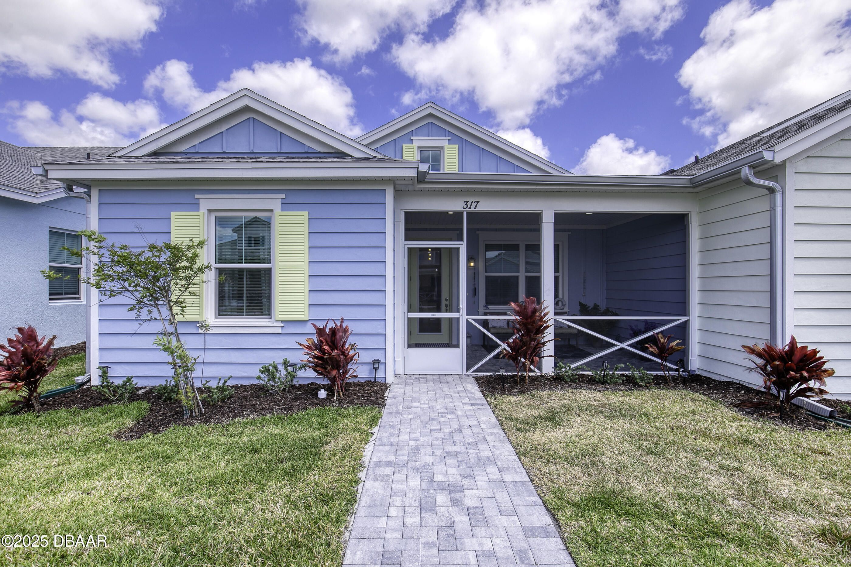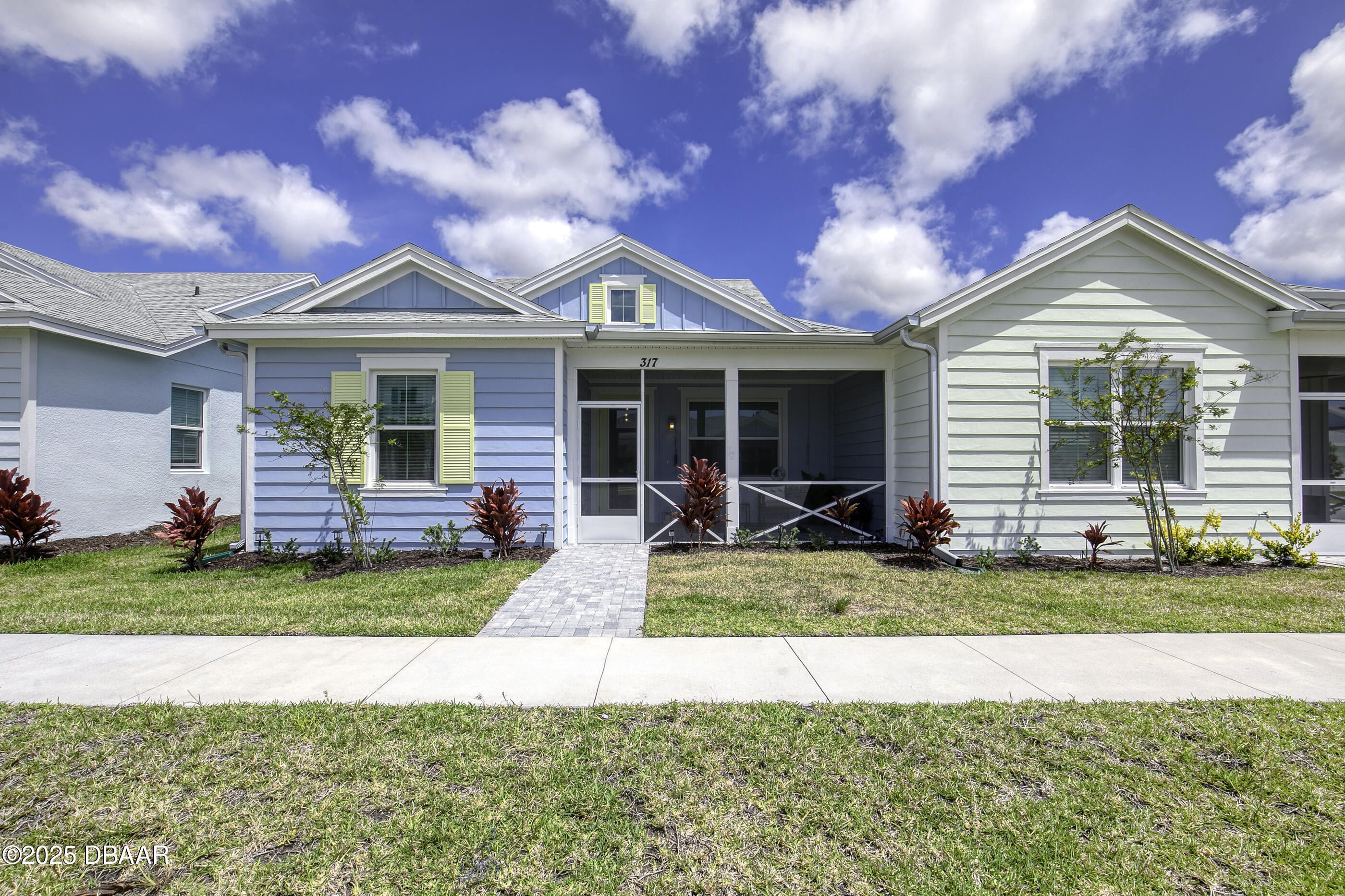 Welcome to your personal oasis in Latitude of Daytona Beach, a highly sought-after 55+ community inspired by the carefree coastal lifestyle. This nearly new Camelia model is less than a year old and showcases an open, airy floor plan with elegant designer finishes throughout. Enjoy durable and stylish plank tile flooring that flows through the entire home, enhanced by recessed lighting, ceiling fans, and gorgeous high-end fixtures. The gourmet kitchen is a showstopper, featuring quartz countertops with a matching backsplash, 42-inch cabinets with crown molding, a gas range, and sleek stainless steel appliances. Custom window treatments add both charm and privacy. The luxurious primary suite offers a peaceful retreat with a spa-inspired bathroom, complete with a center row of cabinetry, high-end quartz counters, and a tiled, glass-enclosed shower. A convenient pocket door separates the suite for added privacy. The guest bath echoes the same upscale finishes with quartz counters and a tiled shower surround. Step outside to the screened porch overlooking a wide open green space, perfect for enjoying serene mornings or breezy evenings. Live the good life with access to a vibrant community town center, where live music fills the air every Friday and Saturday night. Unwind at the stunning tropical lagoon-style resort pool, with live music daily, or enjoy two additional heated pools including a sports pool and an indoor lap pool. Sports lovers will enjoy tennis, pickleball, bocce, and pool volleyball, while furry friends have their own space at the golf cart-friendly dog park. Unleash your creativity in the pottery and woodworking studios, catch a show at the theater, or relax at the Bar & Chill restaurant with neighbors and friends. A private oceanfront beach club, complete with loungers, umbrellas, and a heated pool, adds the perfect coastal touch to this exceptional lifestyle. With lawn care, landscaping, exterior painting, and roof maintenance included, you'll have more time to enjoy everything this beautifully planned community has to offer. Schedule your private tour today and experience the resort-style lifestyle that awaits in Latitude of Daytona Beach! All information recorded in the MLS is intended to be accurate but cannot be guaranteed.