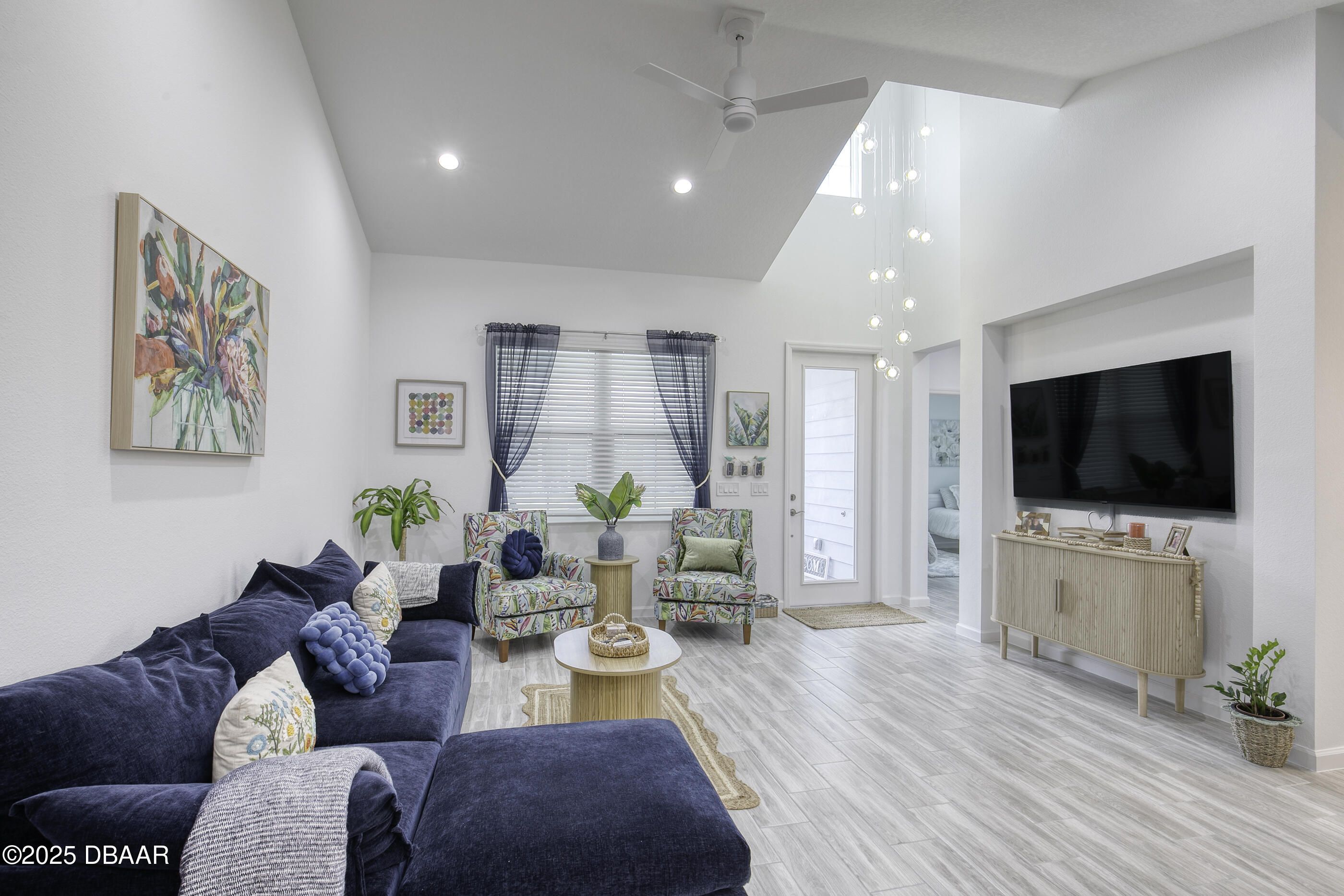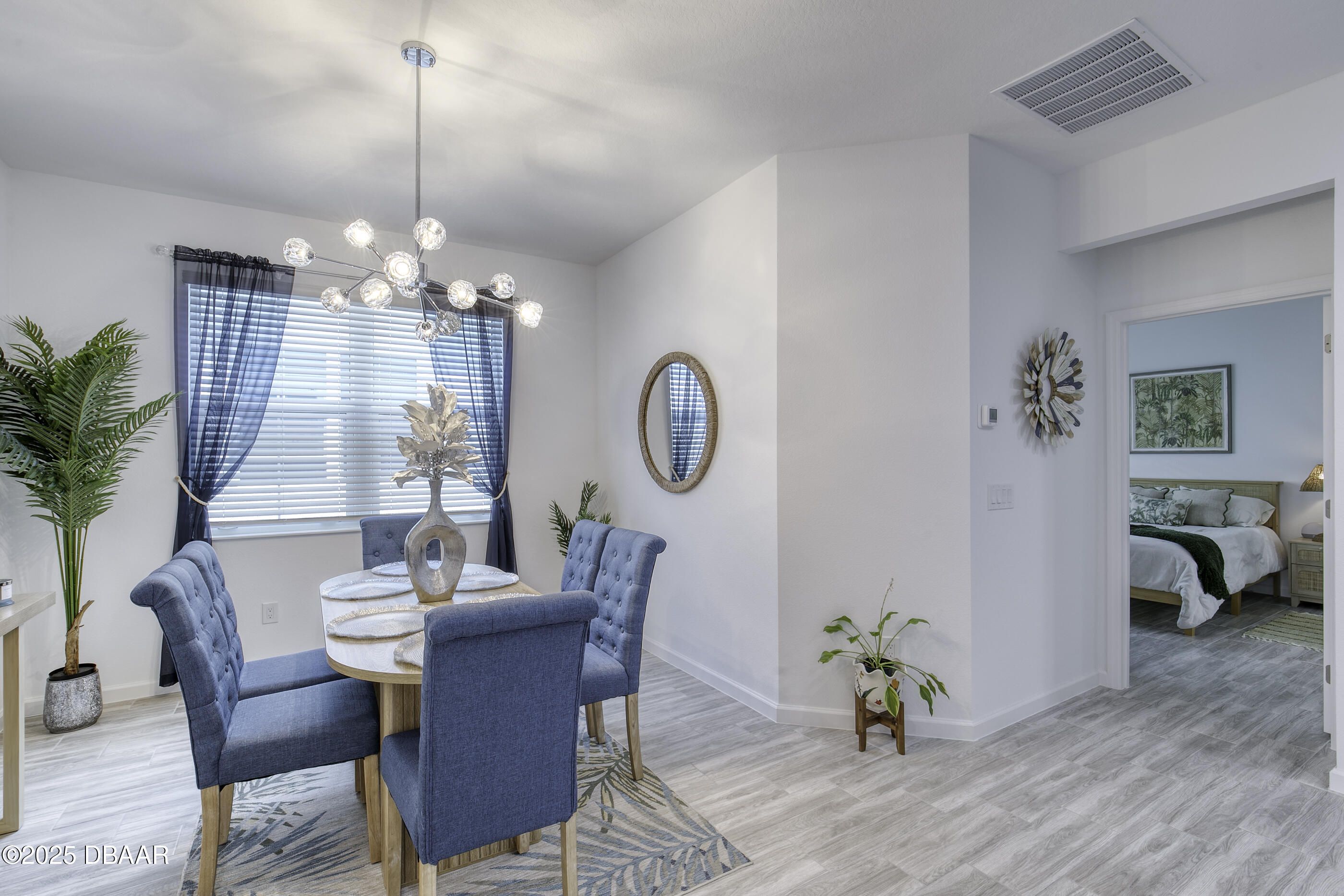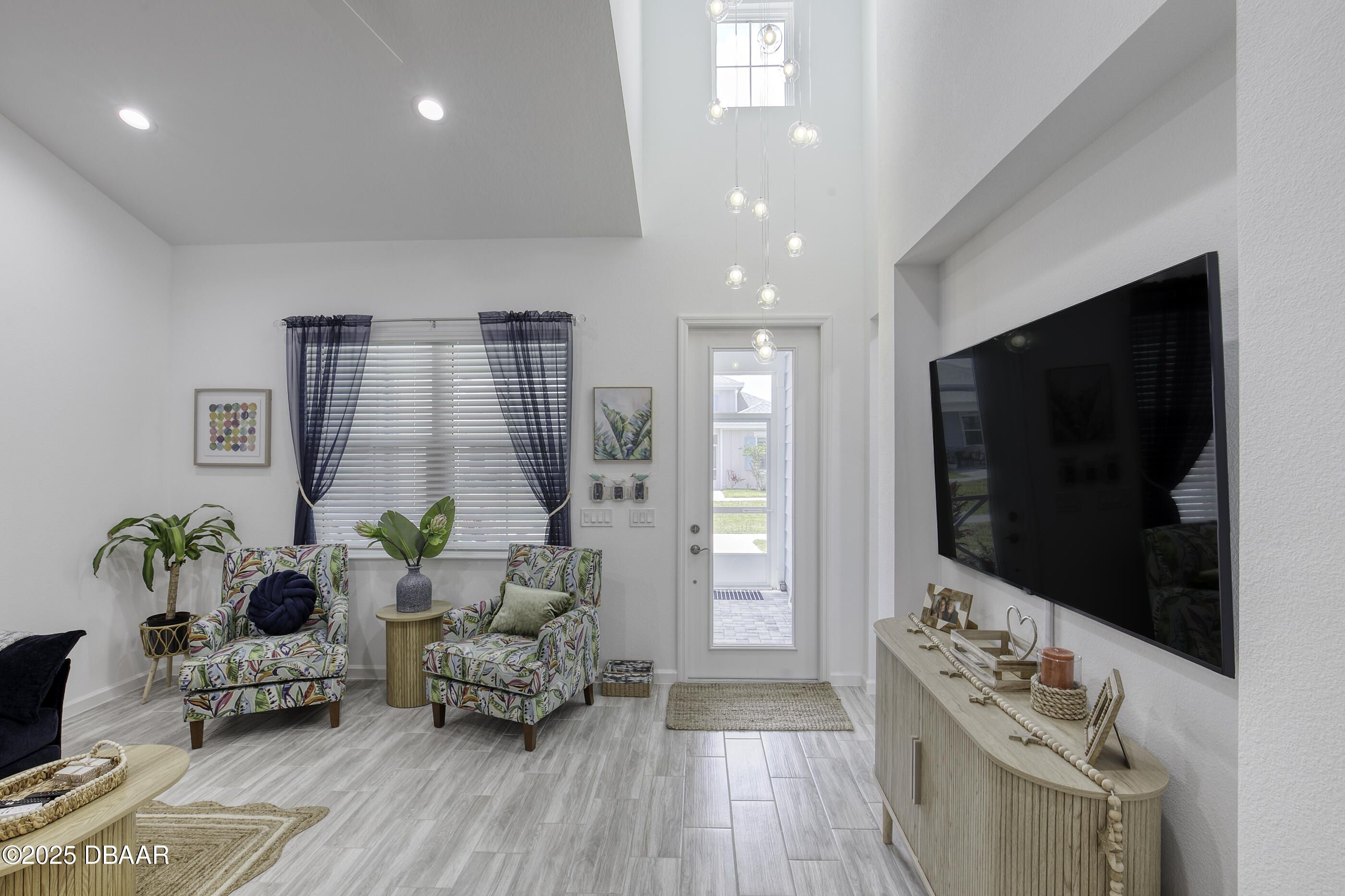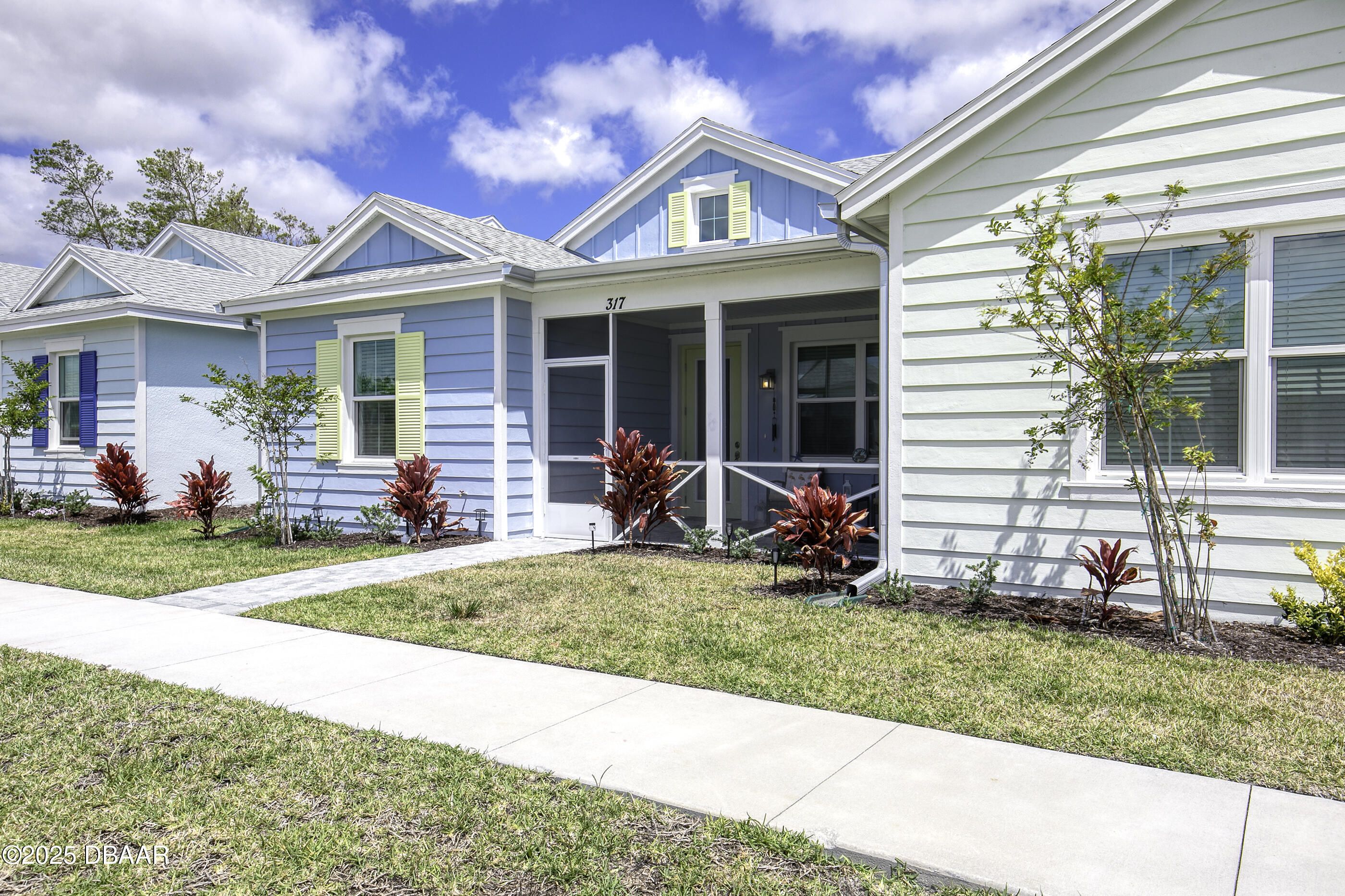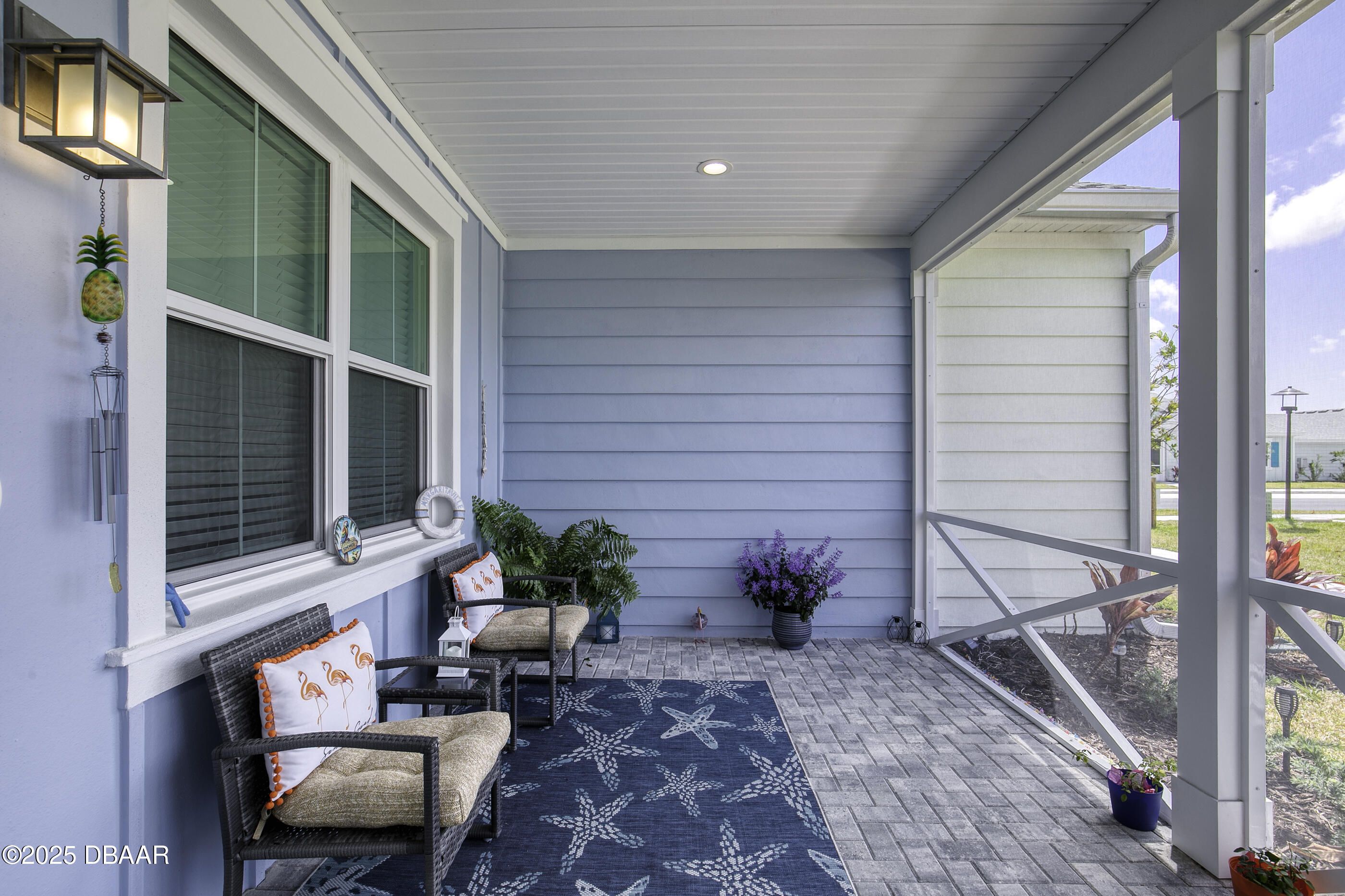 Welcome to your personal oasis in Latitude of Daytona Beach, a highly sought-after 55+ community inspired by the carefree coastal lifestyle. This nearly new Camelia model is less than a year old and showcases an open, airy floor plan with elegant designer finishes throughout. Enjoy durable and stylish plank tile flooring that flows through the entire home, enhanced by recessed lighting, ceiling fans, and gorgeous high-end fixtures. The gourmet kitchen is a showstopper, featuring quartz countertops with a matching backsplash, 42-inch cabinets with crown molding, a gas range, and sleek stainless steel appliances. Custom window treatments add both charm and privacy. The luxurious primary suite offers a peaceful retreat with a spa-inspired bathroom, complete with a center row of cabinetry, high-end quartz counters, and a tiled, glass-enclosed shower. A convenient pocket door separates the suite for added privacy. The guest bath echoes the same upscale finishes with quartz counters and a tiled shower surround. Step outside to the screened porch overlooking a wide open green space, perfect for enjoying serene mornings or breezy evenings. Live the good life with access to a vibrant community town center, where live music fills the air every Friday and Saturday night. Unwind at the stunning tropical lagoon-style resort pool, with live music daily, or enjoy two additional heated pools including a sports pool and an indoor lap pool. Sports lovers will enjoy tennis, pickleball, bocce, and pool volleyball, while furry friends have their own space at the golf cart-friendly dog park. Unleash your creativity in the pottery and woodworking studios, catch a show at the theater, or relax at the Bar & Chill restaurant with neighbors and friends. A private oceanfront beach club, complete with loungers, umbrellas, and a heated pool, adds the perfect coastal touch to this exceptional lifestyle. With lawn care, landscaping, exterior painting, and roof maintenance included, you'll have more time to enjoy everything this beautifully planned community has to offer. Schedule your private tour today and experience the resort-style lifestyle that awaits in Latitude of Daytona Beach! All information recorded in the MLS is intended to be accurate but cannot be guaranteed.