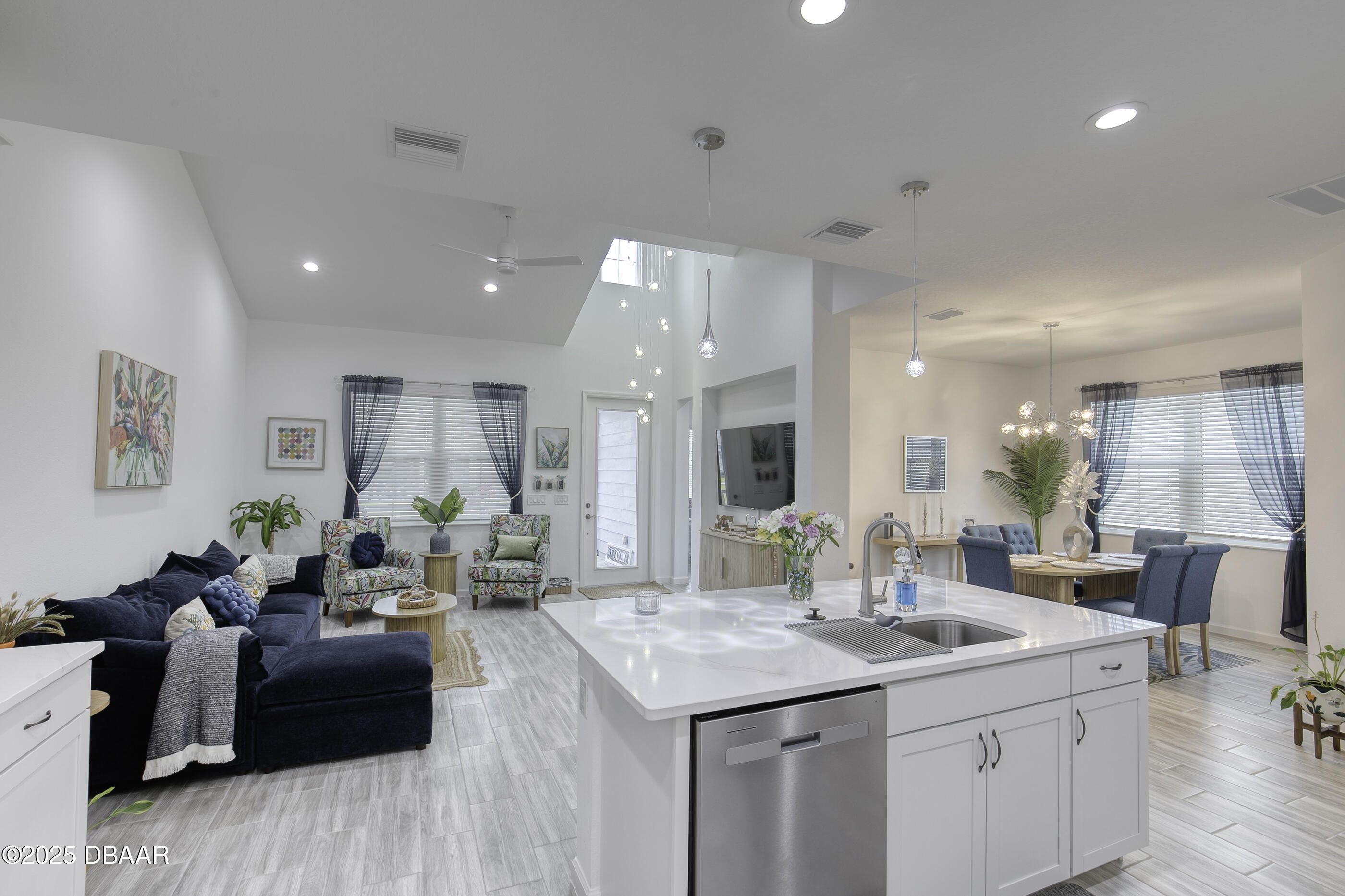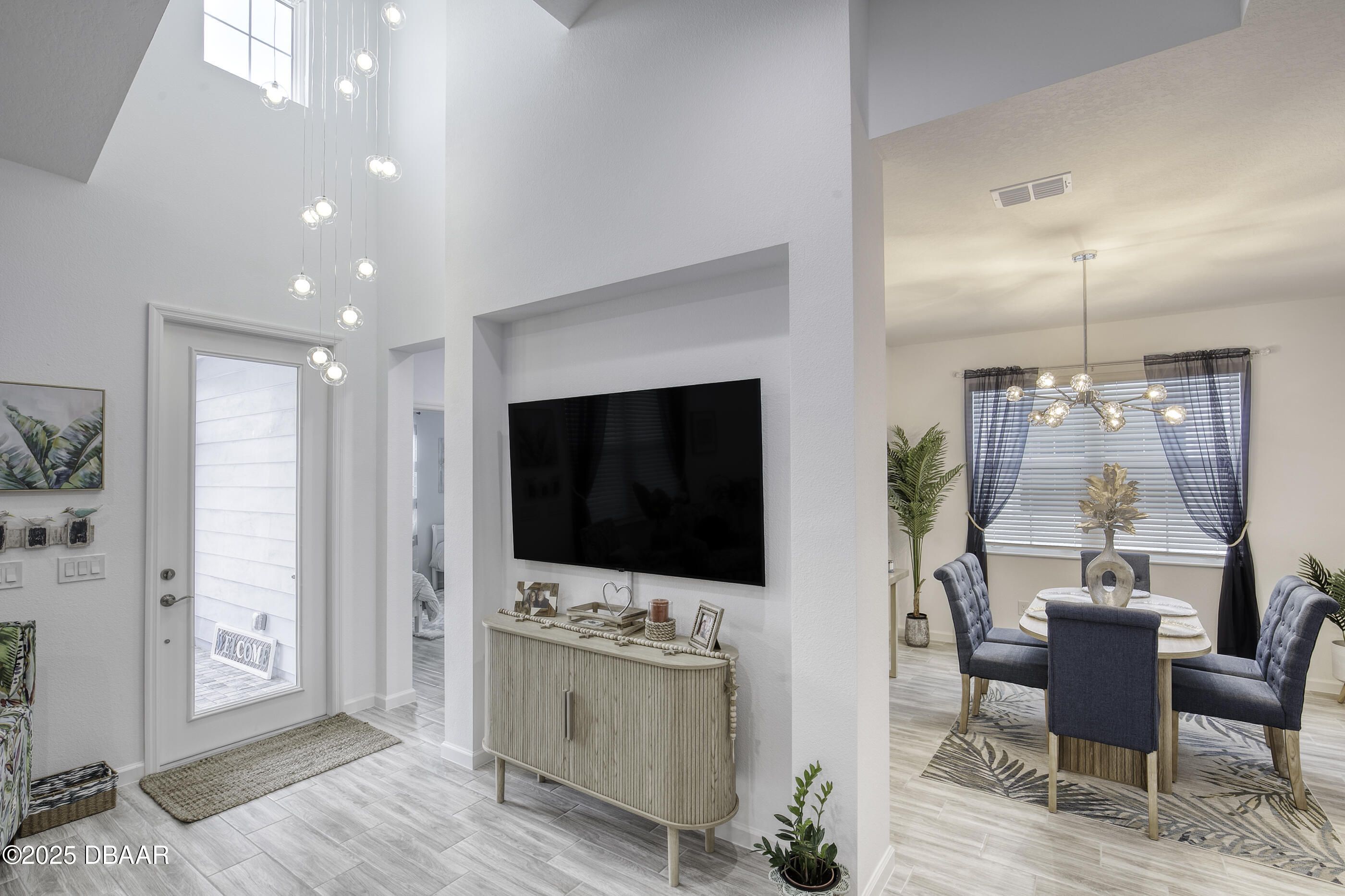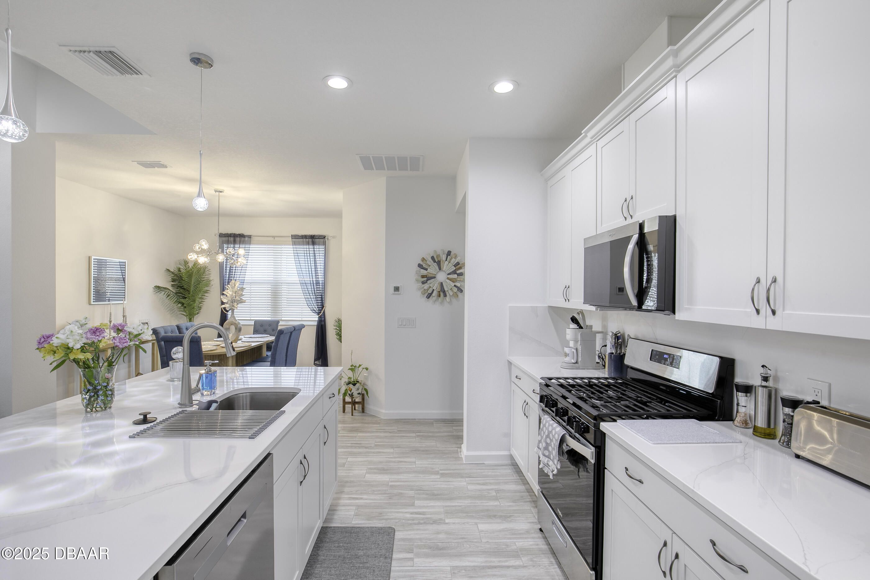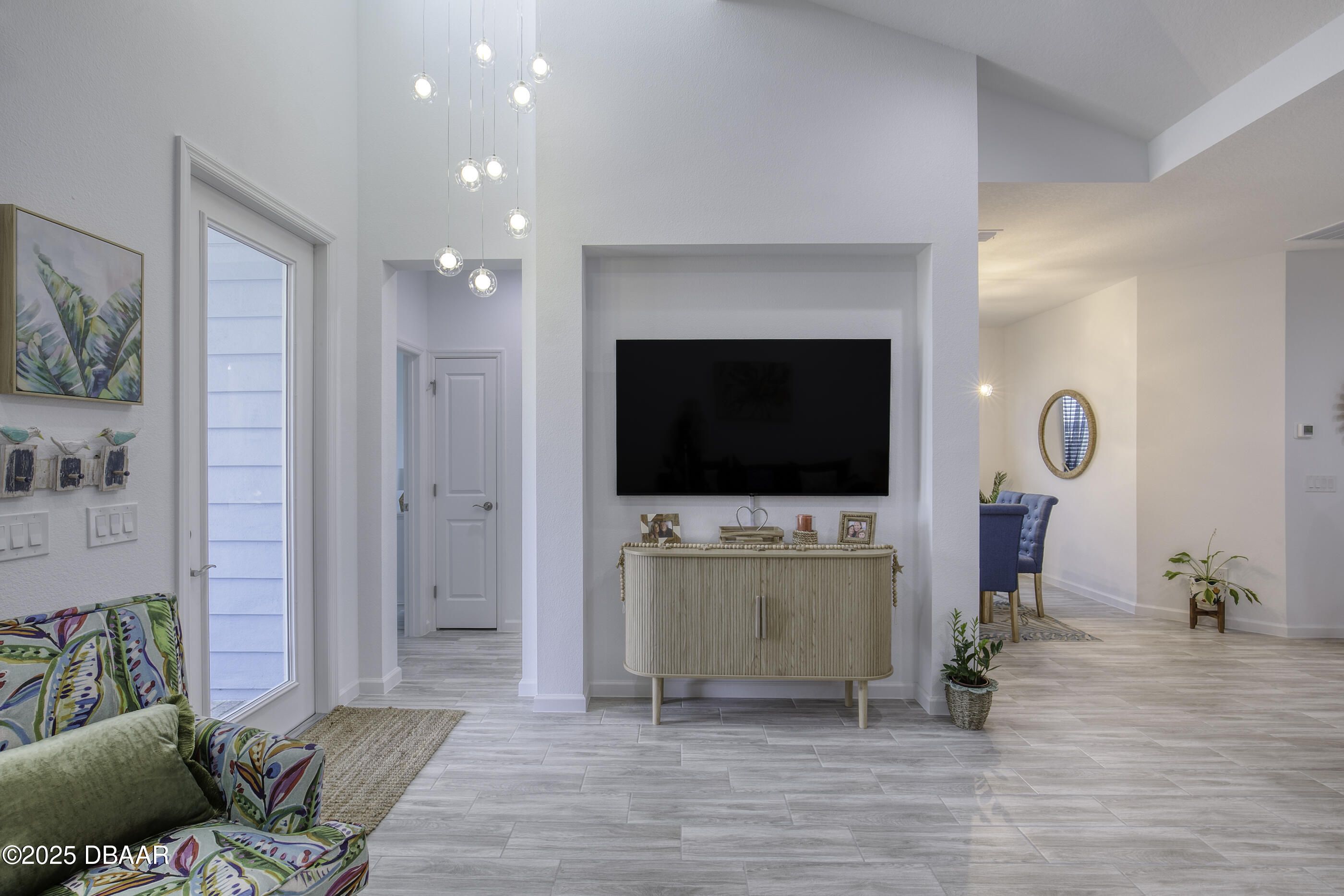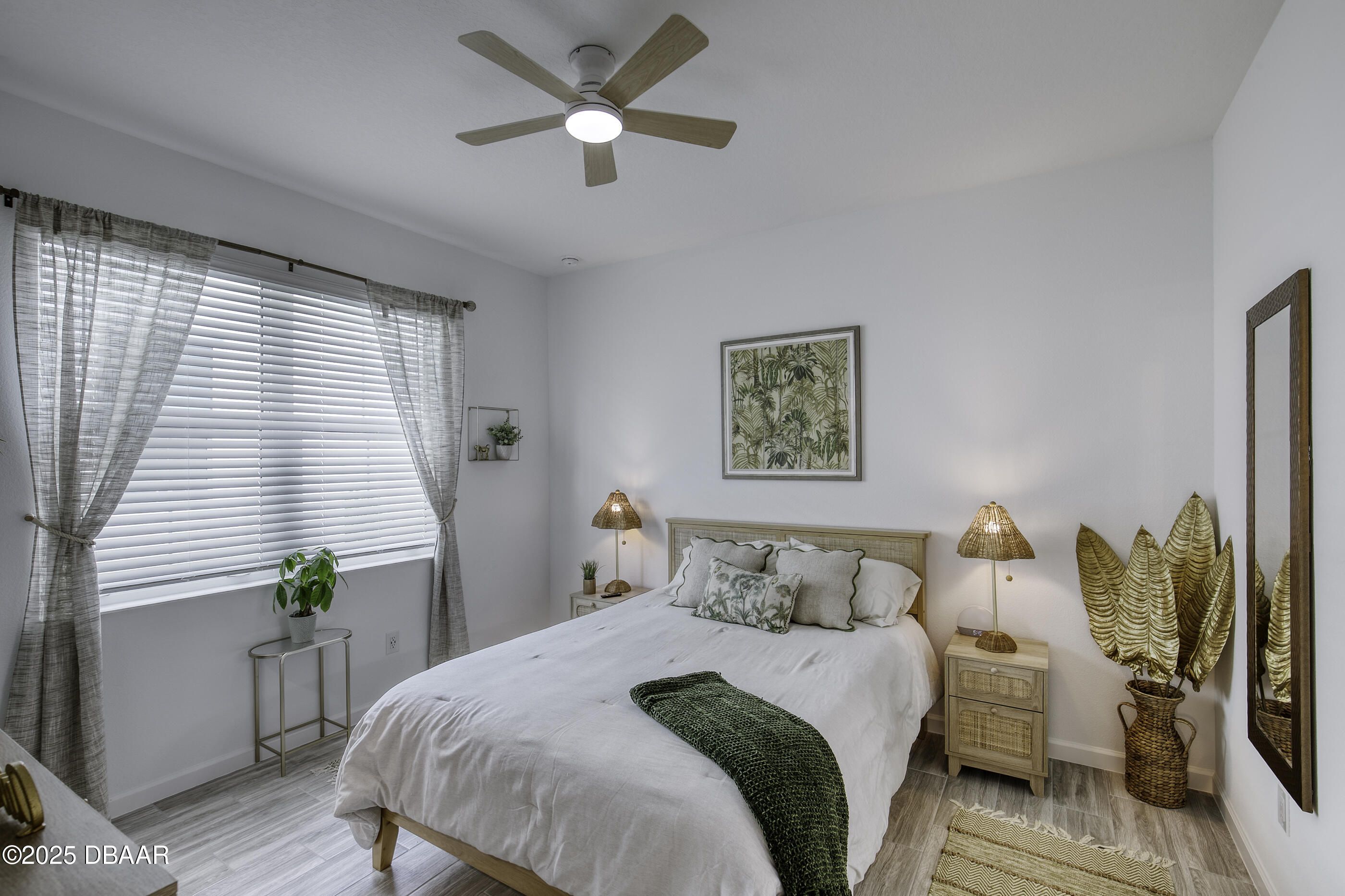 Welcome to your personal oasis in Latitude of Daytona Beach, a highly sought-after 55+ community inspired by the carefree coastal lifestyle. This nearly new Camelia model is less than a year old and showcases an open, airy floor plan with elegant designer finishes throughout. Enjoy durable and stylish plank tile flooring that flows through the entire home, enhanced by recessed lighting, ceiling fans, and gorgeous high-end fixtures. The gourmet kitchen is a showstopper, featuring quartz countertops with a matching backsplash, 42-inch cabinets with crown molding, a gas range, and sleek stainless steel appliances. Custom window treatments add both charm and privacy. The luxurious primary suite offers a peaceful retreat with a spa-inspired bathroom, complete with a center row of cabinetry, high-end quartz counters, and a tiled, glass-enclosed shower. A convenient pocket door separates the suite for added privacy. The guest bath echoes the same upscale finishes with quartz counters and a tiled shower surround. Step outside to the screened porch overlooking a wide open green space, perfect for enjoying serene mornings or breezy evenings. Live the good life with access to a vibrant community town center, where live music fills the air every Friday and Saturday night. Unwind at the stunning tropical lagoon-style resort pool, with live music daily, or enjoy two additional heated pools including a sports pool and an indoor lap pool. Sports lovers will enjoy tennis, pickleball, bocce, and pool volleyball, while furry friends have their own space at the golf cart-friendly dog park. Unleash your creativity in the pottery and woodworking studios, catch a show at the theater, or relax at the Bar & Chill restaurant with neighbors and friends. A private oceanfront beach club, complete with loungers, umbrellas, and a heated pool, adds the perfect coastal touch to this exceptional lifestyle. With lawn care, landscaping, exterior painting, and roof maintenance included, you'll have more time to enjoy everything this beautifully planned community has to offer. Schedule your private tour today and experience the resort-style lifestyle that awaits in Latitude of Daytona Beach! All information recorded in the MLS is intended to be accurate but cannot be guaranteed.