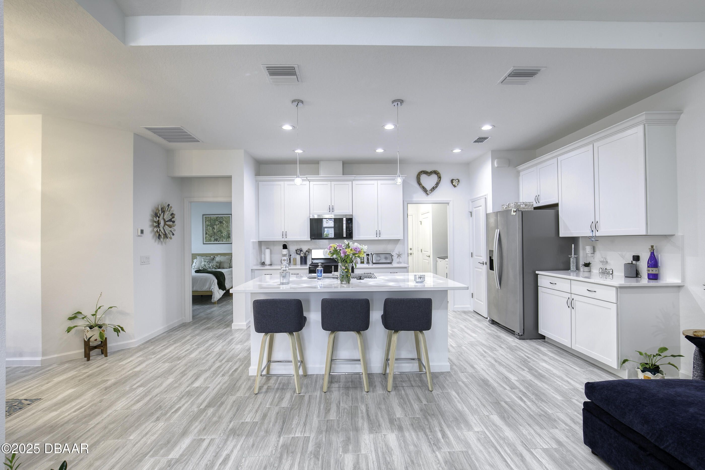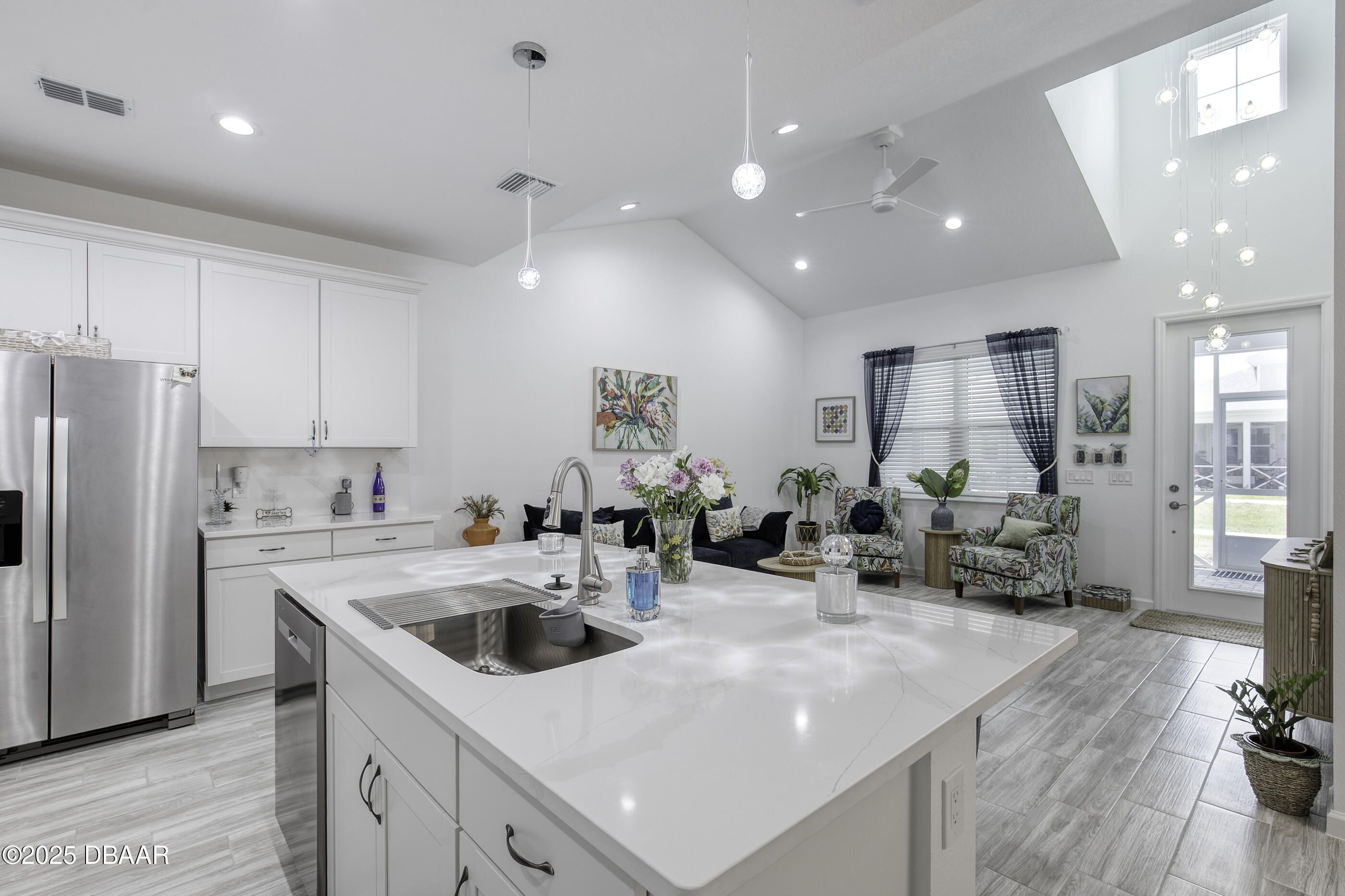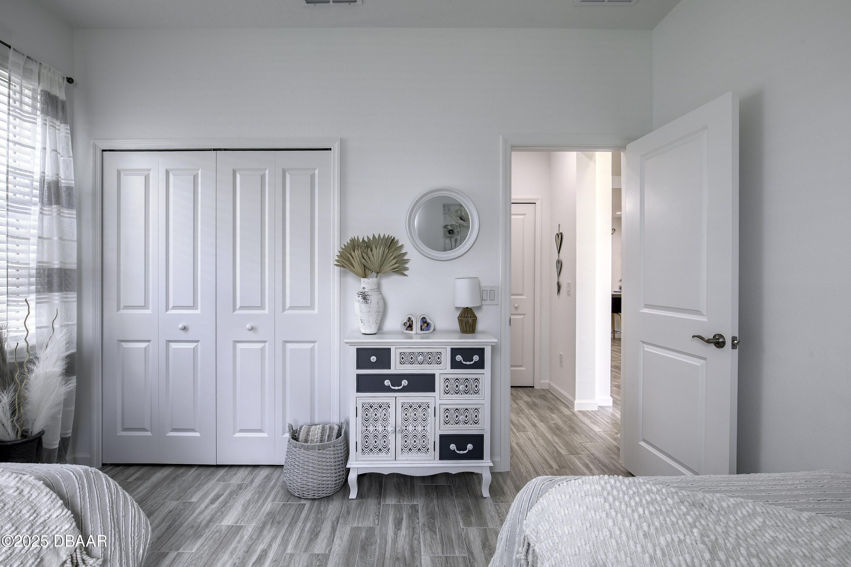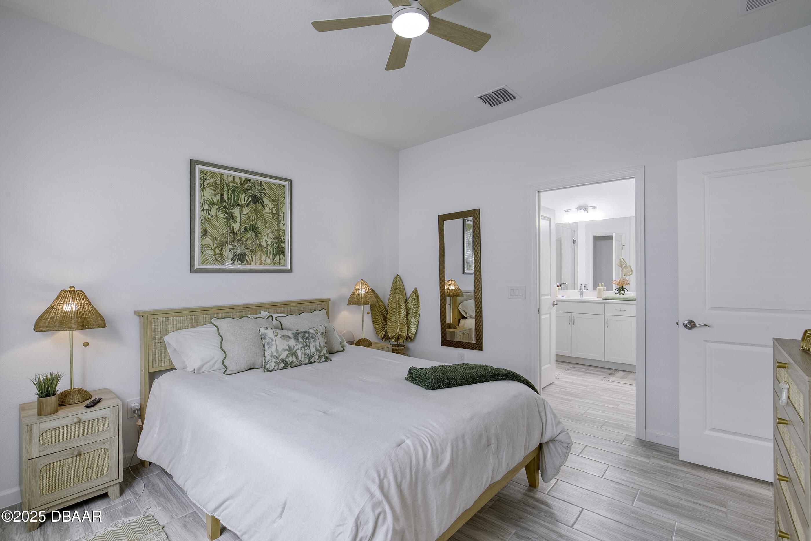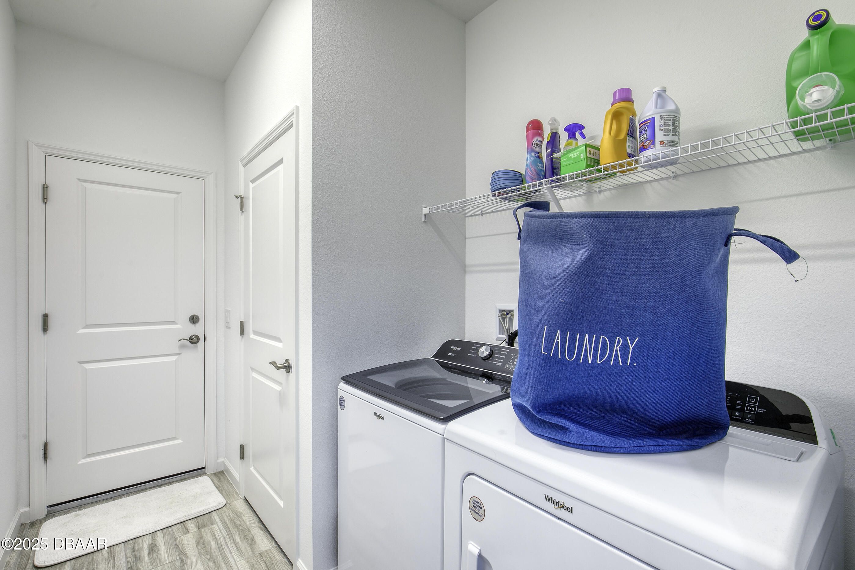 Welcome to your personal oasis in Latitude of Daytona Beach, a highly sought-after 55+ community inspired by the carefree coastal lifestyle. This nearly new Camelia model is less than a year old and showcases an open, airy floor plan with elegant designer finishes throughout. Enjoy durable and stylish plank tile flooring that flows through the entire home, enhanced by recessed lighting, ceiling fans, and gorgeous high-end fixtures. The gourmet kitchen is a showstopper, featuring quartz countertops with a matching backsplash, 42-inch cabinets with crown molding, a gas range, and sleek stainless steel appliances. Custom window treatments add both charm and privacy. The luxurious primary suite offers a peaceful retreat with a spa-inspired bathroom, complete with a center row of cabinetry, high-end quartz counters, and a tiled, glass-enclosed shower. A convenient pocket door separates the suite for added privacy. The guest bath echoes the same upscale finishes with quartz counters and a tiled shower surround. Step outside to the screened porch overlooking a wide open green space, perfect for enjoying serene mornings or breezy evenings. Live the good life with access to a vibrant community town center, where live music fills the air every Friday and Saturday night. Unwind at the stunning tropical lagoon-style resort pool, with live music daily, or enjoy two additional heated pools including a sports pool and an indoor lap pool. Sports lovers will enjoy tennis, pickleball, bocce, and pool volleyball, while furry friends have their own space at the golf cart-friendly dog park. Unleash your creativity in the pottery and woodworking studios, catch a show at the theater, or relax at the Bar & Chill restaurant with neighbors and friends. A private oceanfront beach club, complete with loungers, umbrellas, and a heated pool, adds the perfect coastal touch to this exceptional lifestyle. With lawn care, landscaping, exterior painting, and roof maintenance included, you'll have more time to enjoy everything this beautifully planned community has to offer. Schedule your private tour today and experience the resort-style lifestyle that awaits in Latitude of Daytona Beach! All information recorded in the MLS is intended to be accurate but cannot be guaranteed.