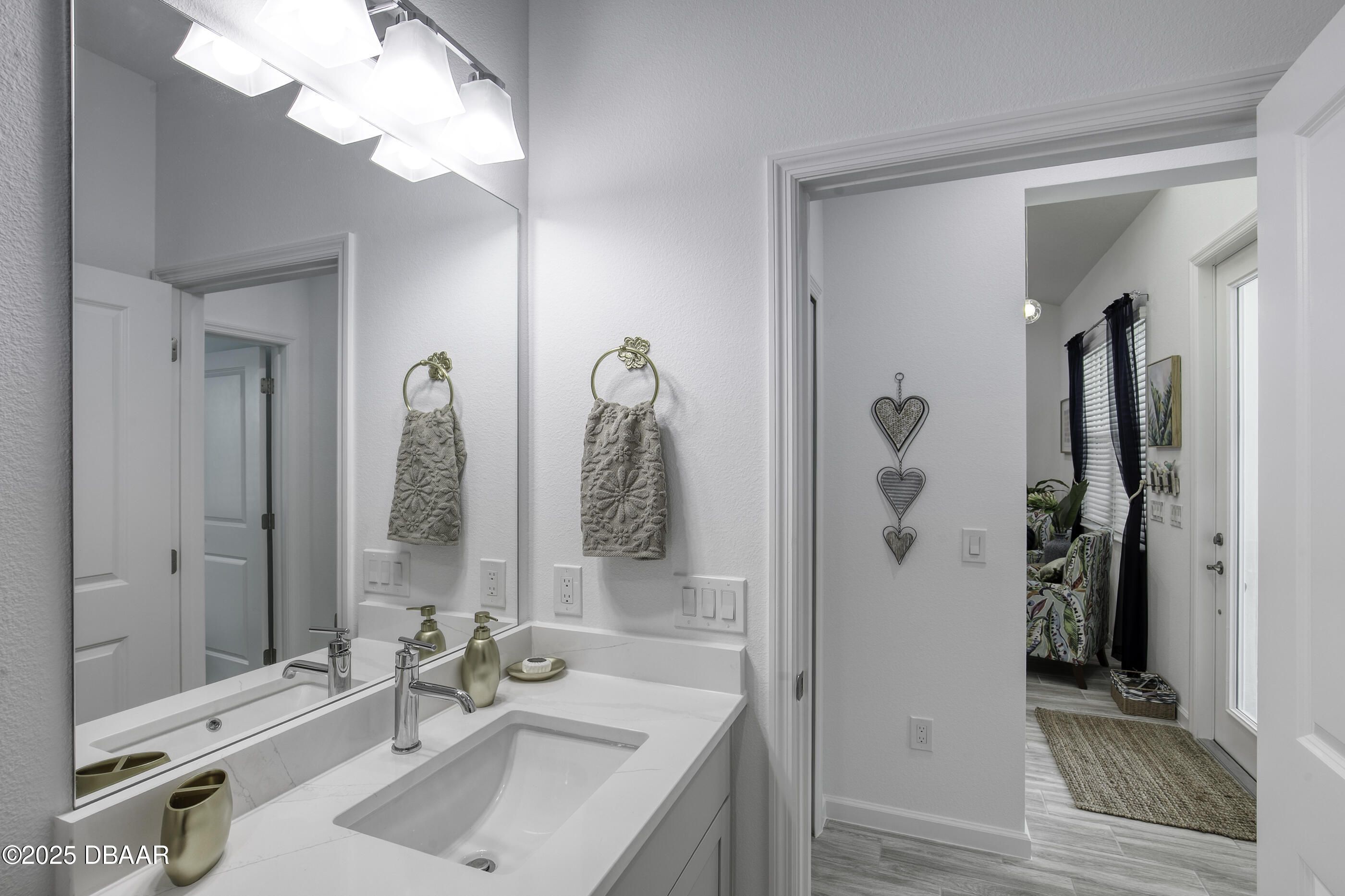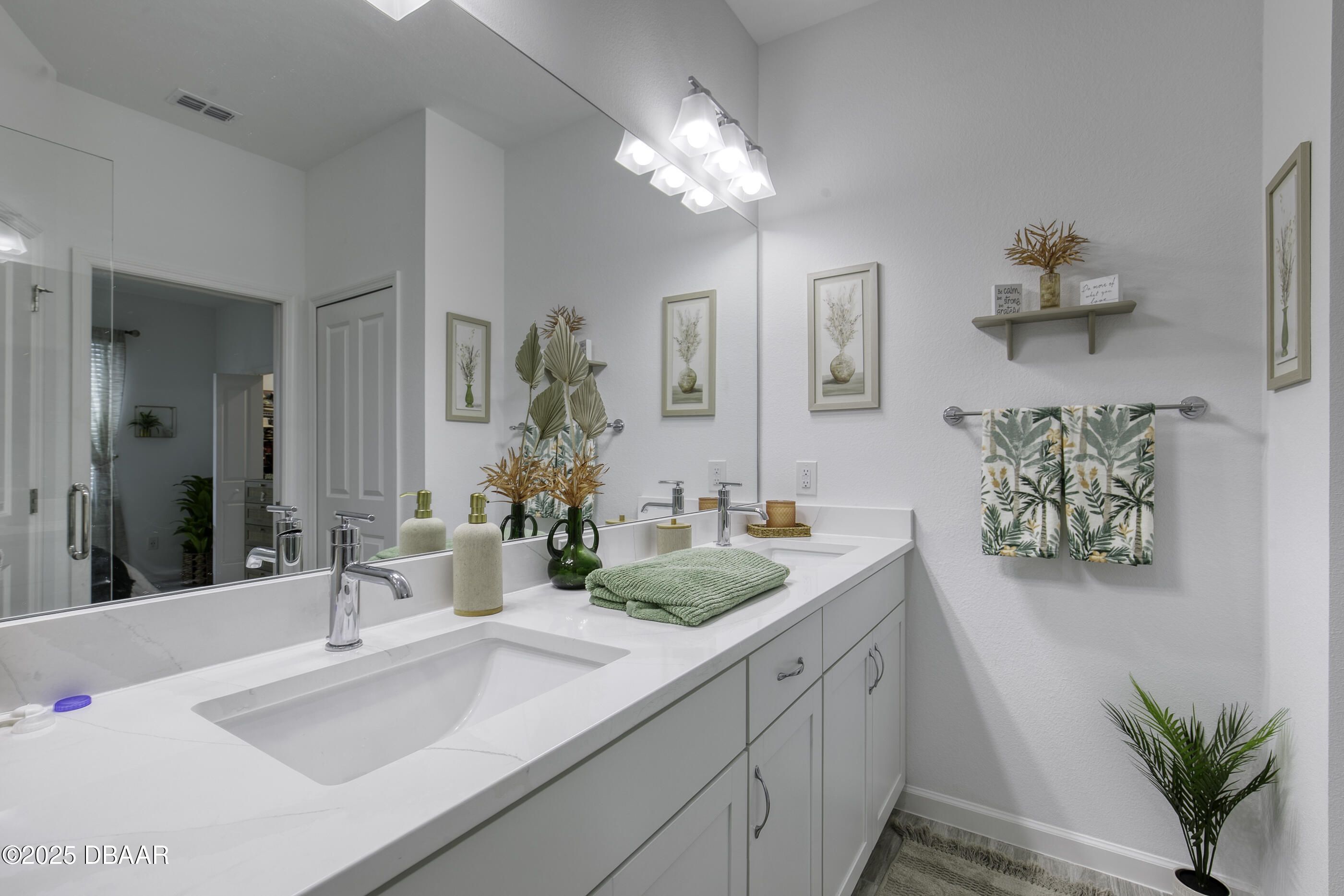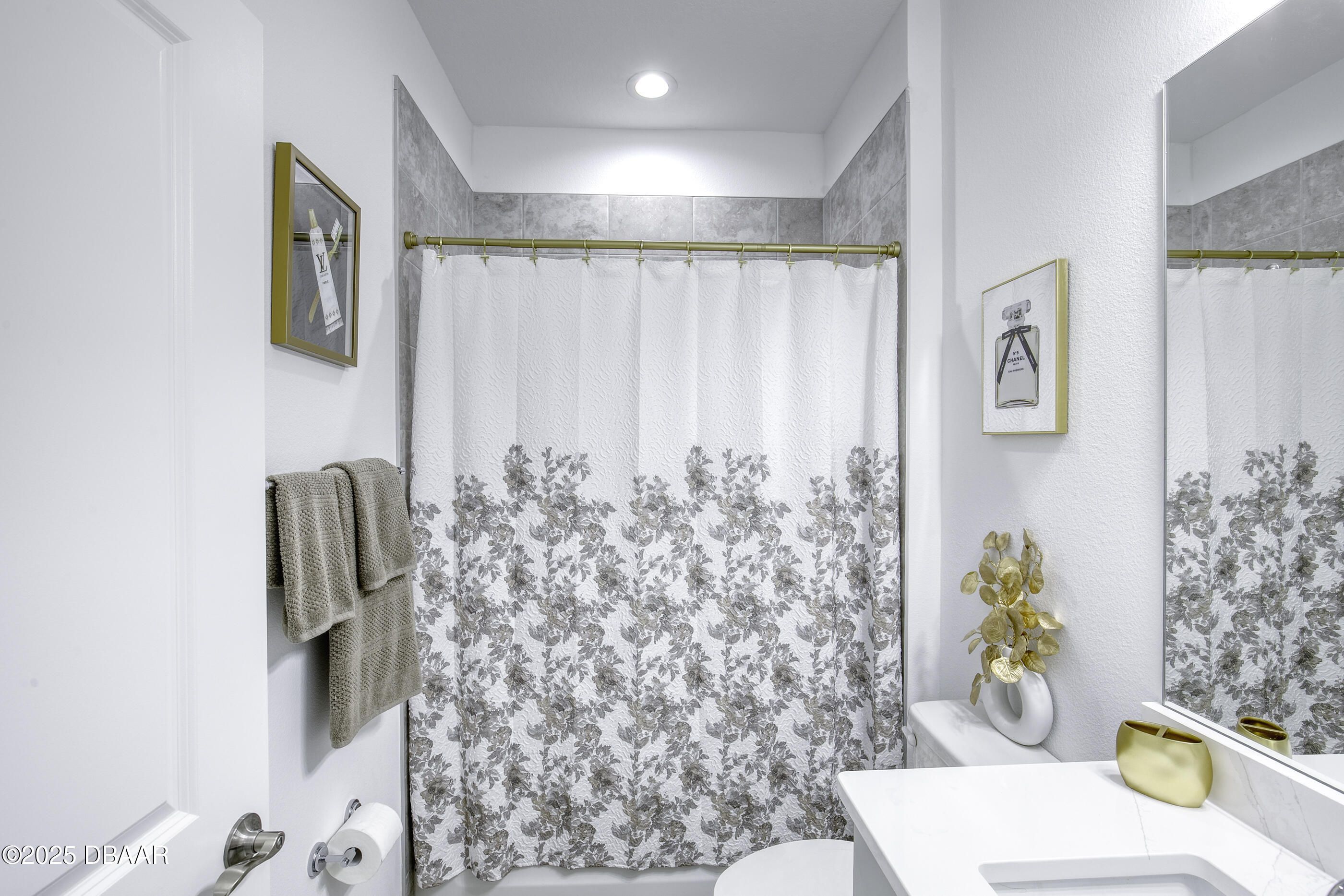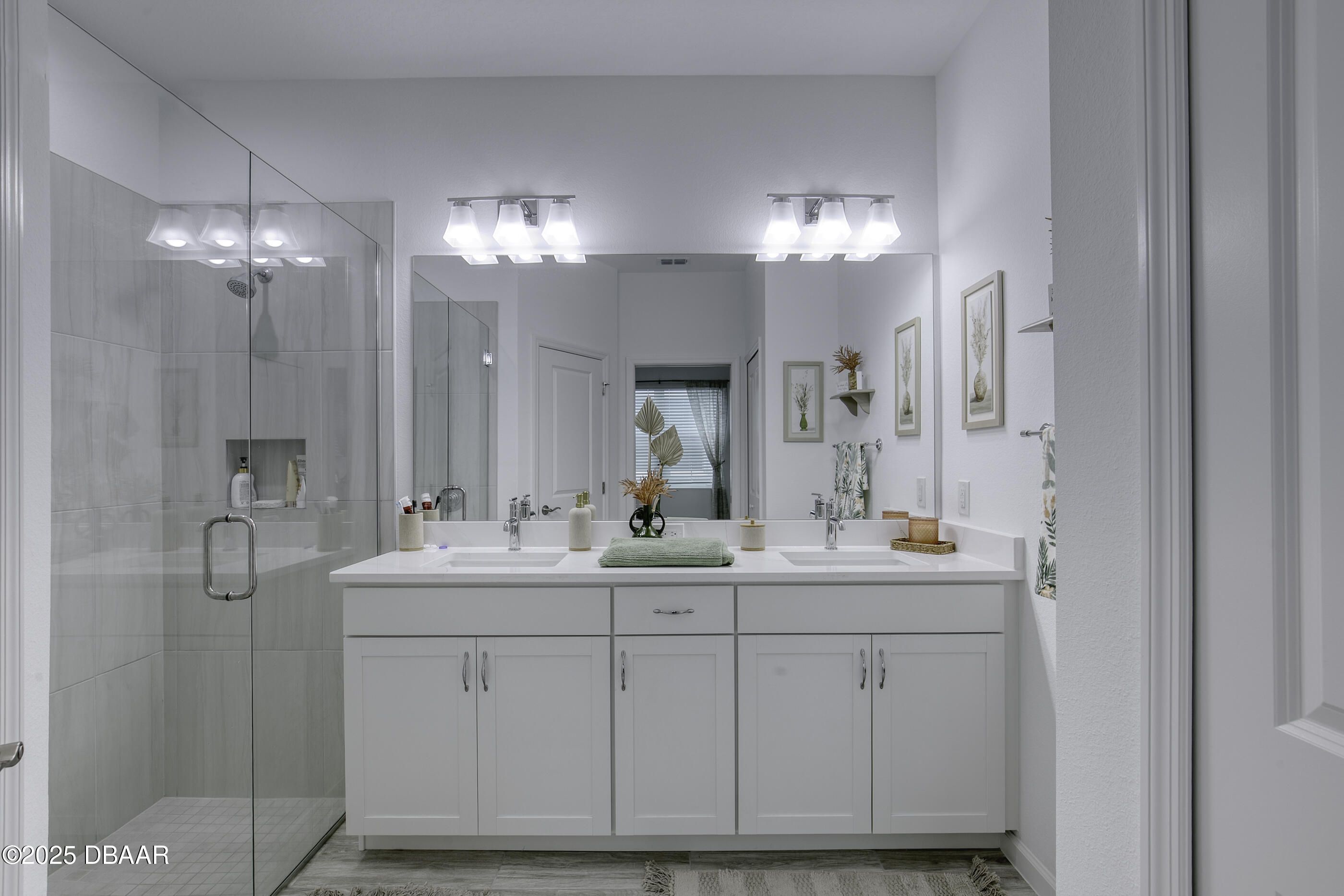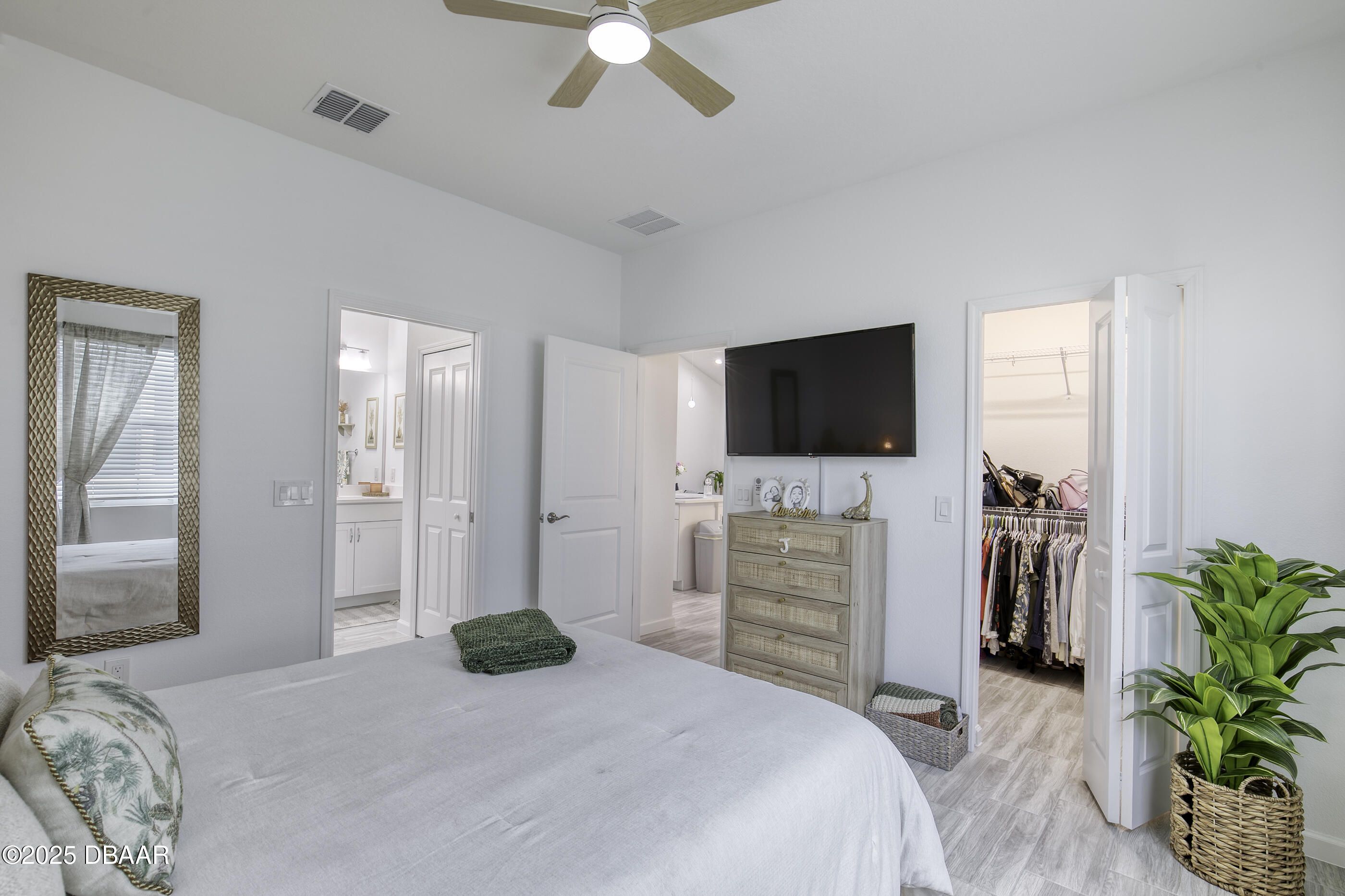 Welcome to your personal oasis in Latitude of Daytona Beach, a highly sought-after 55+ community inspired by the carefree coastal lifestyle. This nearly new Camelia model is less than a year old and showcases an open, airy floor plan with elegant designer finishes throughout. Enjoy durable and stylish plank tile flooring that flows through the entire home, enhanced by recessed lighting, ceiling fans, and gorgeous high-end fixtures. The gourmet kitchen is a showstopper, featuring quartz countertops with a matching backsplash, 42-inch cabinets with crown molding, a gas range, and sleek stainless steel appliances. Custom window treatments add both charm and privacy. The luxurious primary suite offers a peaceful retreat with a spa-inspired bathroom, complete with a center row of cabinetry, high-end quartz counters, and a tiled, glass-enclosed shower. A convenient pocket door separates the suite for added privacy. The guest bath echoes the same upscale finishes with quartz counters and a tiled shower surround. Step outside to the screened porch overlooking a wide open green space, perfect for enjoying serene mornings or breezy evenings. Live the good life with access to a vibrant community town center, where live music fills the air every Friday and Saturday night. Unwind at the stunning tropical lagoon-style resort pool, with live music daily, or enjoy two additional heated pools including a sports pool and an indoor lap pool. Sports lovers will enjoy tennis, pickleball, bocce, and pool volleyball, while furry friends have their own space at the golf cart-friendly dog park. Unleash your creativity in the pottery and woodworking studios, catch a show at the theater, or relax at the Bar & Chill restaurant with neighbors and friends. A private oceanfront beach club, complete with loungers, umbrellas, and a heated pool, adds the perfect coastal touch to this exceptional lifestyle. With lawn care, landscaping, exterior painting, and roof maintenance included, you'll have more time to enjoy everything this beautifully planned community has to offer. Schedule your private tour today and experience the resort-style lifestyle that awaits in Latitude of Daytona Beach! All information recorded in the MLS is intended to be accurate but cannot be guaranteed.