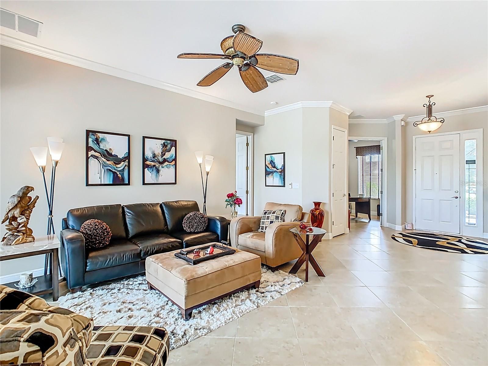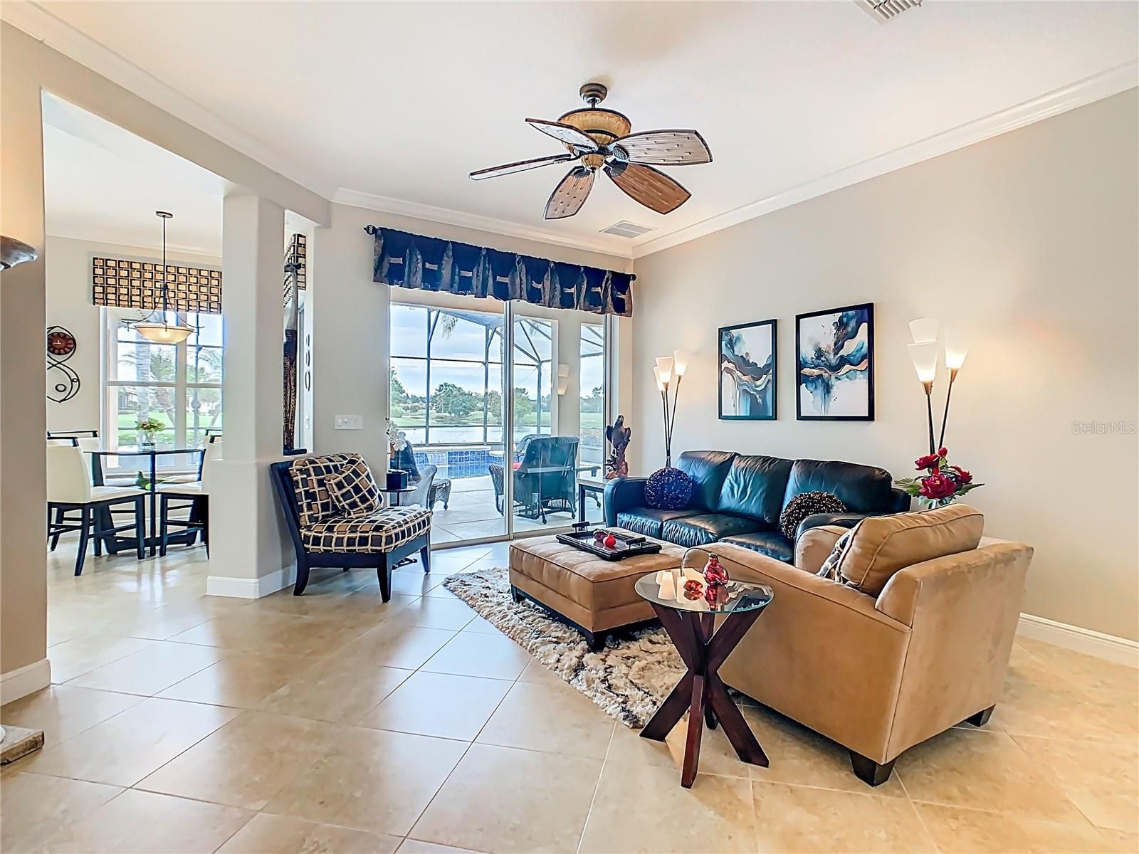Financing fell through! Your opportunity to buy this ABSOLUTELY STUNNING Operetta model with a SALT WATER POOL on a POND with $$ MILLION $$ WATER & GOLF COURSE views in the Bella Viana subdivision of Solivita. THREE CAR GARAGE! HVAC new 2019. Roof new 2016. 50 gallon Water Heater NEW 2016. Great Curb appeal with Landscape Curbing surrounding the front flower beds. Stones w/ some fresh plantings in the flower beds. Front entryway is screened. 8' doors, 5.5" BASEBOARDS, ROUNDED CORNERS, DOUBLE PANE WINDOWS & SLIDERS throughout. Extensive CROWN MOLDING. Custom CLOSET ORGANIZERS in bedrooms. 20" CERAMIC TILE ON THE DIAGONAL in all main living areas with LAMINATE in bedrooms (NO CARPET). Kitchen features QUARTZ counters, 42" upper cabinets with Crown Molding, several GLASS WINDOWS & a WINE RACK, pull-out drawers in lower cabinets, a moveable ISLAND w/ GRANITE counter, 2 SKYLIGHTS, STAINLESS STEEL APPLIANCES including a SLIDE-IN RANGE, pantry w/ custom doors matching the cabinetry & pull-out drawers and RECESSED & UNDER CABINET lights. BREAKFAST BAR. FLORIDA ROOM has excellent views of WATER. Primary Bedroom has 2 WALK IN CLOSETS. The bathroom boasts DUAL sinks, QUARTZ counters, LARGE WALK-IN *ACCESSIBLE* SHOWER & Glass Block windows. Second Bathroom has QUARTZ counter and a tub w/ shower. Powder Room has Corian counters. LARGE *Custom* LAUNDRY ROOM has Corian Counters, a wash basin & built-in cabinets. Shown Washer & Dryer do not convey but will be replaced w/ another W/D. Garage includes two overhead storage racks & is PLUMBED for WATER SOFTENER. Garage floor is painted with Epoxy & Confetti Chips. Outdoor living to it's finest with HUGE LANAI & POOL deck which is EXTENDED & SCREENED. LARGE 13' X 25" Pool has a SALT System, is SELF CLEANING & heated by SOLAR PANELS. Exclusions include drapes in Florida Room & Primary Bedroom. **See the FULL LENGTH VIDEO on Tour Link 1.** ***Solivita is an active adult 55+ community located in Kissimmee, Florida. It is approximately 50 minutes from Disney World & the Orlando International Airport. Solivita has a total of 5,470 homes. Approximately 10,000 - 11,000 people live in Solivita during the winter while approximately 7,500 live in Solivita during the summer. Enjoy your active years in this piece of paradise. Solivita's amenities include: - a manicured SOFTBALL diamond & field - 36 holes of CHAMPIONSHIP GOLF that can be played by joining the Stonegate Golf Club or paying as you go - 2 STATE of the Art AMENITY centers with updated exercise equipment, yoga studio & meeting rooms - 3 restaurants - 14 HEATED POOLS - 17 PICKLEBALL courts - 9 TENNIS courts - 4 BOCCE BALL courts - 4 SHUFFLEBOARD courts - 3 HORSESHOE pits - a BILLIARDS room - miles of bike paths - 2 DOG PARKS (Small & Large Dogs) - Corn Hole - Tot Lot PLAYGROUND - COMMUNITY GARDEN - over 250 resident clubs. The HOA: - maintains the LANDSCAPING & IRRIGATION systems in the common areas as well as at individual homesites - maintains the roads throughout the community - PROVIDES SECURITY with gate guards - allows AUTOMATED GATE ACCESS for residents via license plate readers - provides residents with Fiber Optic Internet & TV service.***Poinciana Lakes Plaza is a MAJOR NEW SHOPPING CENTER that opened directly across from the Solivita Main Gate in Summer of 2024. It features Sprouts Grocery, TJ MAXX, Ross, Burlington, Rack Room Shoes, 5 Below, Ulta, Outback, First Watch, 5 Guys, Urgent Care, Dentist, TD Bank, Petco & Hair Cuttery.***