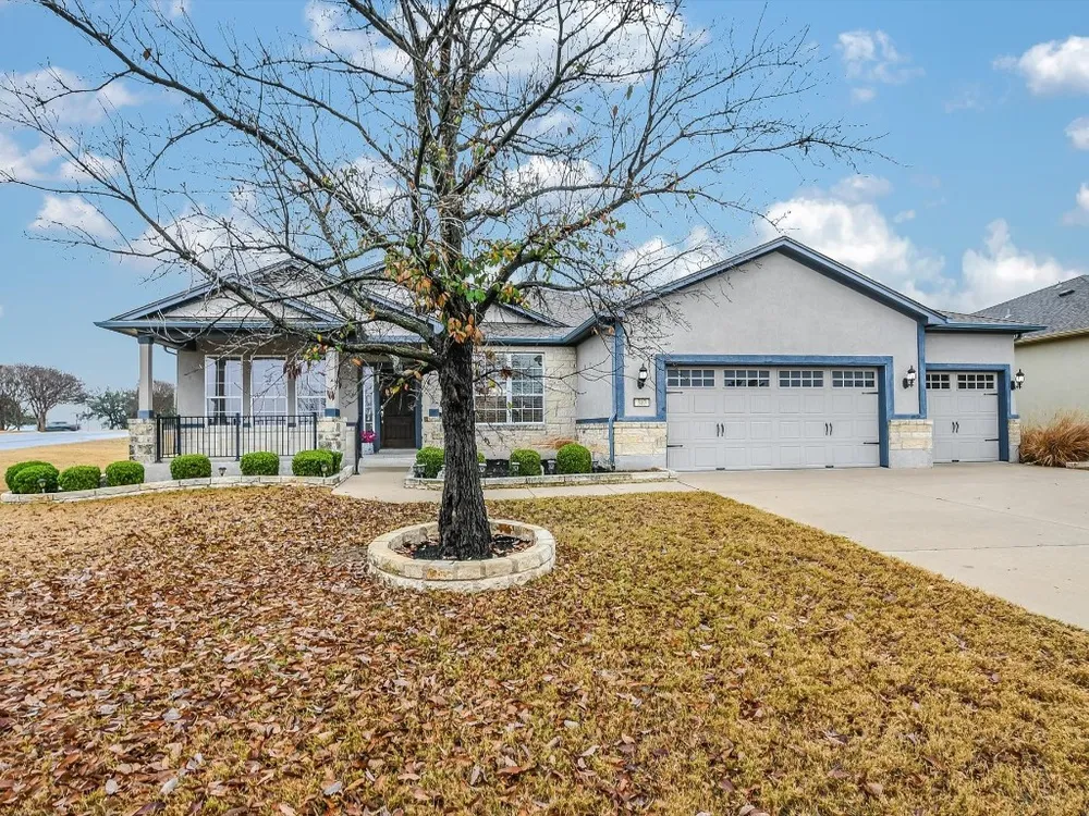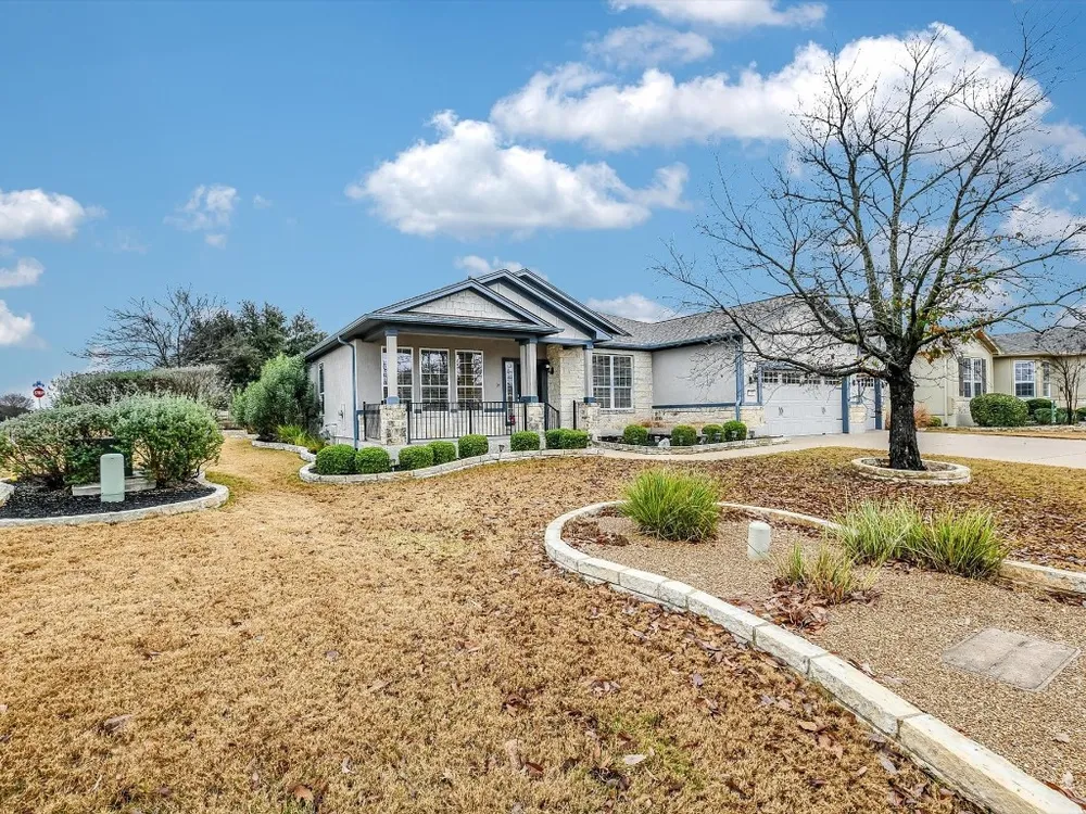 This Sun City Texas Morningside Lane Model sits on a corner lot, and features three bedroom suites, a kitchen w dark wood cherry cabinets topped with Granite Countertops and accompanying GE Profile Stainless Appliances, Butler's Pantry, and a full Pantry Room for your Home goods Storage! The Kitchen also features an eat in bar that is open to the Great Room that overlooks the rear covered patio, and wooded back yard area. The Split Floor-plan in this home has the Primary Bedroom Suite on one side, with the two guest bedrooms and Laundry room on the opposite side of the home with each Bedroom having it's own full bathroom. As you enter from the front covered entry you are welcomed by a spacious formal dining room that comes with a Butler's Pantry for enhanced entertaining possibilities! A Bonus room also is located in the front section of the home, which could serve as a home office, den, or living room. The Morningside Lane model is known for the extra garage space, and this property has a deep two car garage, with a third bay that is also deep, allowing for Golf Cart Storage, and storage of the extra items folks have. A 240 Volt Outlet is available that could be used as a Charging Port for an Electric Vehicle. With it's Spacious rooms, extra large garage, split floor-plan, fresh interior paint and new carpets, this property is ready for it's next Sun City Active Lifestyle Homeowner! Sun City's three award winning golf courses, Pickle Ball and Tennis Courts, Swimming, Workout Facilities, and multiple Social Clubs offer an exciting lifestyle for today's active retiree! Don't miss a chance to see this Sun City Morningside Lane Model!