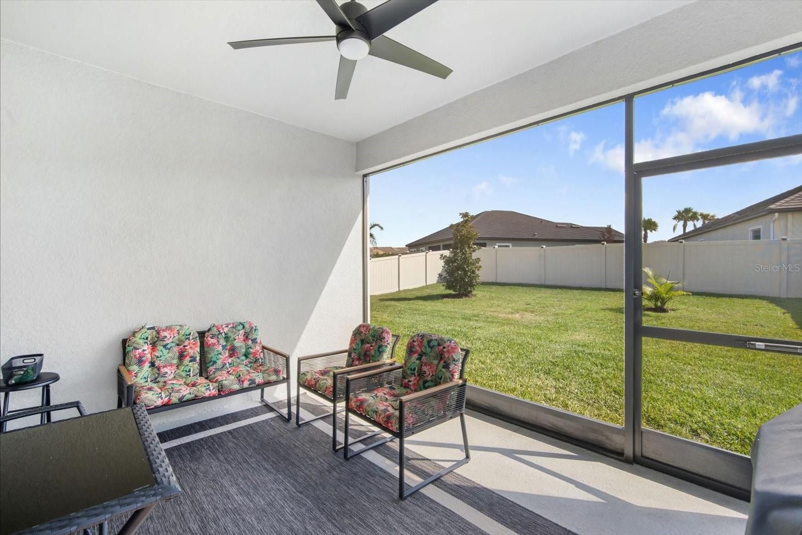 Come live where others dream about vacationing. True resort and lagoon style 55+ gated community awaits you. This single family, delightfully upgraded home, with 2 beds/2 baths/ 2 car garage and bonus flex room, is ready for new owners. Pulling up the drive, take note of the beautiful pavered drive that leads to upgraded epoxy floor garage. Water heater is modern and specially designed for energy efficiency. Walking up to the covered front porch, imagine yourself being able to sit and relax and interact with neighbors if you wanted. Entering the home, you will notice the upgraded tile throughout (only the second bedroom has carpet). Upgraded lighting allows for various levels of lighting throughout the open floorplan. The kitchen has beautiful and spacious "easy access" cabinets, large pantry, and trash storage. No worries about lack of storage if you were downsizing, there are plenty of closets for you to organize as you wish. Flex room can give you that added peace of mind for where to put that desk, daybed, or other toys. Primary bedroom is spacious enough for large furniture. Ensuite bath has dual sinks and enough counter space for all of your routines and rituals. Slider from the living room leads out onto covered and screened porch. Enjoy the outside with the added privacy of a fully fenced backyard (one of the biggest in the neighborhood). Upgraded solar lights on the fence create a nice ambiance (and keep you from stumbling in the dark). Other features include ring alarm and doorbell, water softener, and that is just your house! The community includes a state of the art club house with restaurant, ballroom for meetings and events, cabana bar, pool, lap pool, room for activities, all your sports on tv, fitness center, pickle ball, tennis, shuffle board, boccie ball, walking trails, fire features, golf cart parking, events and activities, and more. And that, doesn't include the features beyond the gate including Mirada's lagoon and all that it has to showcase, the dog park, playgrounds, walking trails and more. If you always wanted to live in a resort style community, don't wait to schedule your showing. Your new lifestyle awaits!