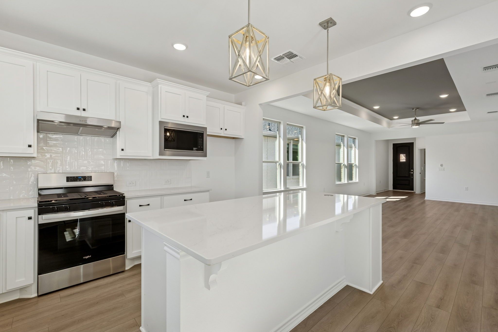 - Kitchen Island, Solid Surface Counters, Tub Shower