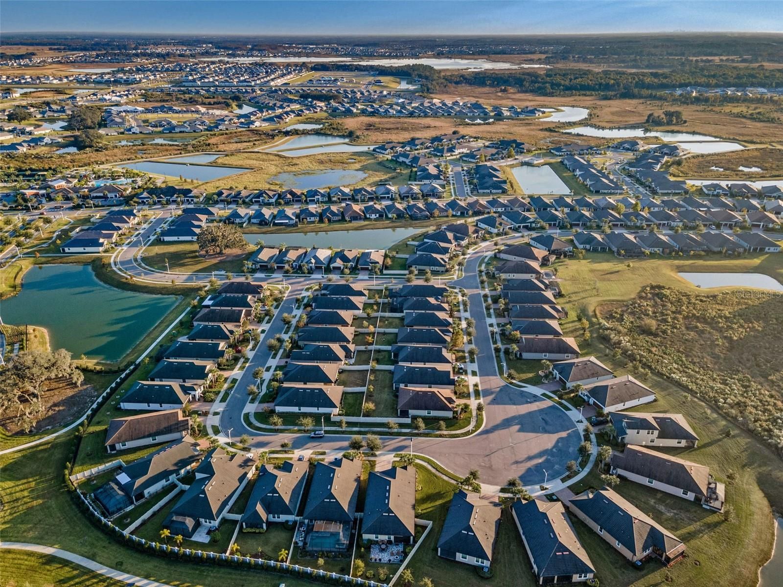 Exceptional 3 bedroom plus office/flex space with 2 1/2 bathrooms located in the heart of Medley at Mirada, the premier 55+ gated community in Pasco County designed specifically for an active and social lifestyle. Experience resort-style living with exclusive access to a private clubhouse, daily events, restaurant & bar, heated pool with cabanas, ballroom, billiards and card rooms, and a state-of-the-art fitness center. Stay active with pickleball, tennis, bocce ball, yoga and line dancing, plus activities tailored for active adults. Your HOA also includes access to Mirada’s breathtaking 15-acre Crystal Lagoon, the nation’s largest man-made recreational lagoon, featuring sandy beaches, a swim-up bar, kayaking, paddleboarding, waterslides, and year-round entertainment. As you step inside to this 3 bedroom 2 ½ bath with separate office/flex space you are greeted with an open floorplan that provides comfort and functionality.  The gourmet kitchen boasts leather granite countertops, elegant backsplash, a spacious island, premium appliances, large walk-in pantry with custom shelving and plenty of cabinet space.  Flowing comfortably from the kitchen, the dining and living room provide a welcoming space for daily living, cozy evenings or entertaining guests. The owner’s suite is light and bright and offers an oversized walk-in closet with a custom shelving system and spa-like bath with new granite counter tops and linen cupboard.  Secondary bedrooms are tucked away from the rest of the home and share an updated bathroom for privacy and convenience. A spacious laundry room with custom cabinetry and a door for added peace and quiet.  The flex room located at the front of the home can serve as an office, bedroom, exercise space or additional living area.  Luxury Vinyl flooring is throughout the main areas of the home with carpet in the bedrooms for added comfort. Step outside to the screened lanai designed for relaxation featuring a built-in bar area and electric sun shade for those sunny afternoons.  The enclosed backyard is ideal for gatherings with pavered patio area, firepit, sun awning and custom landscaping that is enclosed with new PVC fencing ideal for privacy and pets. Additional bonuses include a golf cart garage, whole-house water filtration and softener, plantation shutters, garage entry drop zone with custom cabinets with granite counter, overhead garage storage shelving, and epoxy-coated garage floor. HOA perks cover private landscape maintenance, exterior painting, high-speed internet, an expansive cable package, and access to Medley’s private amenity center and the Crystal Lagoon. Medley offers a resort-style pool, pool bar, café, 24/7 fitness center, card and billiard rooms, yoga and banquet spaces, pickleball, tennis, shuffleboard, bocce courts, a pet park, tot-lot, and even an indoor pet washing station. Golf cart friendly to zip around the community and down to the new Publix with in the community! Conveniently located just minutes from I-75, this home blends suburban living with easy access to downtown Tampa, Ocala, Lakeland and Orlando. And only 45 minutes to Tampa International Airport. Don’t miss your chance to own this stunning Florida lifestyle retreat!