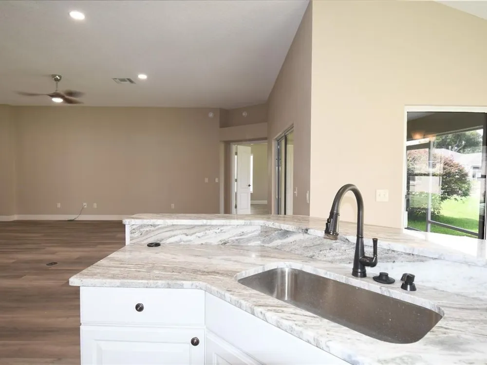 Check out this TOTALLY UPGRADED AND MODIFIED GRAND FICUS MODEL as it should have originally been designed by The Villages! BOND PAID! FULLY RENOVATED! Located in the desirable VILLAGE OF POLO RIDGE, this stunning home boasts BRAND NEW LVP FLOORING throughout the entire home and PROFESSIONALLY PAINTED with a fresh coat of modern TAUPE COLORED PAINT to match walls and floors perfectly together along with New HIGH BASEBOARDS to give the home that modern updated look. NEW EPOXY PAINTED GARAGE FLOOR AND BACK PATIO. The kitchen and bathrooms showcase elegant, newly installed, GORGEOUS GRANITE COUNTER TOPS, a testament to refined taste. This home features three bedrooms (the third bedroom/OFFICE does not include a closet) and two bathrooms. Indulge in the comfort of FULLY RENOVATED BATHROOMS; master bath a private oasis featuring contemporary WALK-IN SHOWER. The residence is further enhanced by sleek KNOCK-DOWN CEILINGS. Thoughtful, modern conveniences include a NEW GARBAGE DISPOSAL, a full suite of BRAND NEW HIGH END LG STAINLESS STEEL APPLIANCES, a NEW GARAGE DOOR OPENER ensuring seamless access, and stylish NEW BLINDS adorning every window. Nestled conveniently less than 10 minutes from the vibrant Lake Sumter Square, this location offers easy access to its charming marketplace atmosphere, diverse shops, delectable dining, and nightly live entertainment along the picturesque waterfront. Minutes away from Southern Trace shopping center, for all the shopping you need! Please reach out for your private tour of this beautiful home! Roof replaced in 2020 and HVAC 2015! Did we mention "No Bond!"? Get an exclusive look at this incredible home! Watch our video on the Homes Around The Villages YouTube Channel, https://youtu.be/kpcy3DUZED4?si=YuZKBlqoWMsAHYJ0.