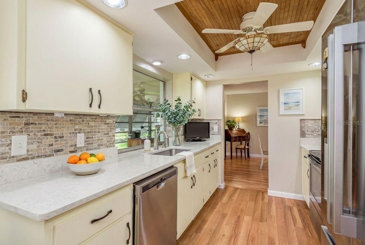 One or more photo(s) has been virtually staged. Live the Florida dream in the highly sought-after Highland Lakes Golf Community in Palm Harbor, Florida, one of Pinellas County’s premier 55+ active lifestyle neighborhoods. This beautifully maintained 1,855 heated square foot single-family home offers two spacious bedrooms, two full baths, a generous primary suite with walk-in closet, indoor laundry room, and a two-car garage, all wrapped in a layout designed for comfort and easy living. A covered entry leads into a bright, open interior where the eat-in kitchen features granite countertops, tile backsplash, and stainless Whirlpool appliances, flowing seamlessly into a large combined living and dining area, plus an additional air-conditioned bonus room overlooking the manicured, landscaped backyard—perfect as a Florida room, home office, or hobby space. The home is truly move-in ready with fresh interior and exterior paint, wood and luxury vinyl plank flooring throughout, plantation shutters, ceiling fans, a sprinkler system, new roof (2020), Trane HVAC (2017), Rheem water heater (2016), and a new electric panel, providing peace of mind and long-term value. Sidewalk-lined streets invite you to connect with neighbors, while Highland Lakes’ unmatched amenities keep life vibrant year-round, including 27 holes of championship golf, two heated community pools, a main golf clubhouse, pickleball, tennis, bocce, shuffleboard, billiards, arts and crafts, woodworking, and over 75 clubs and social groups. The scenic Lakeside Lodge offers panoramic lake views, a second pool and deck, gardens, picnic areas, grills, horseshoe pits, and resident pontoon boats for cruising the lake or visiting lakeside dining, along with RV and boat parking with ramp access. Ideally located near Palm Harbor beaches, shopping, dining, and all of Tampa Bay’s cultural, sports, and entertainment venues, this exceptional Highland Lakes home delivers the perfect blend of comfort, community, and the quintessential Florida lifestyle—whether you’re seeking a full-time residence or a seasonal retreat.