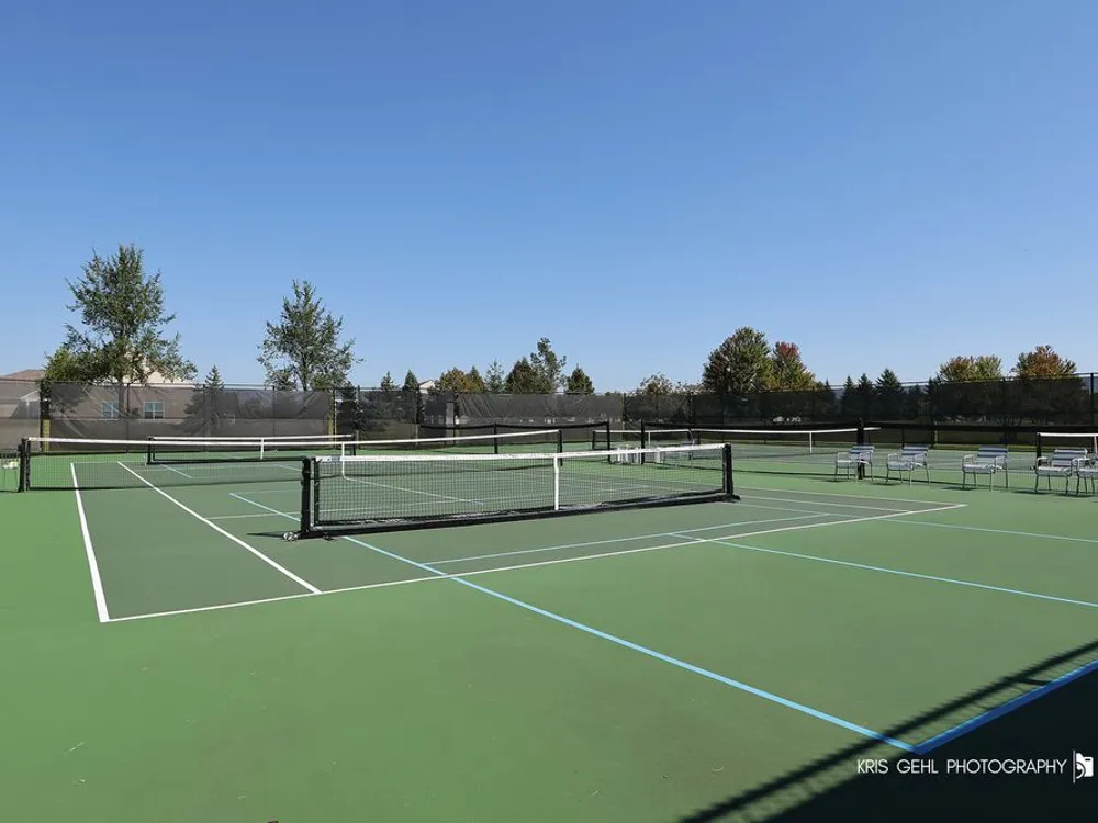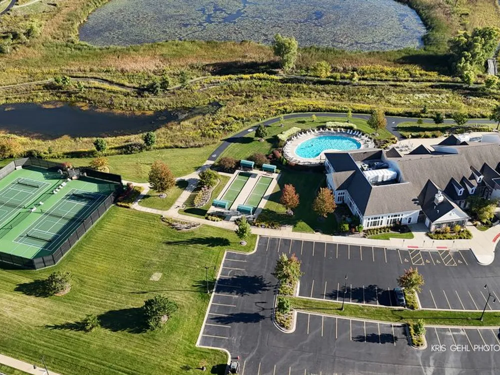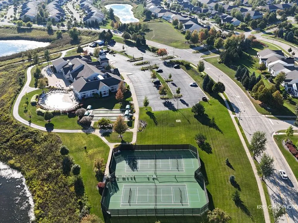 - Clubhouse, Pool, Tennis Court(s), Lake, Curbs, Sidewalks, Paved Streets