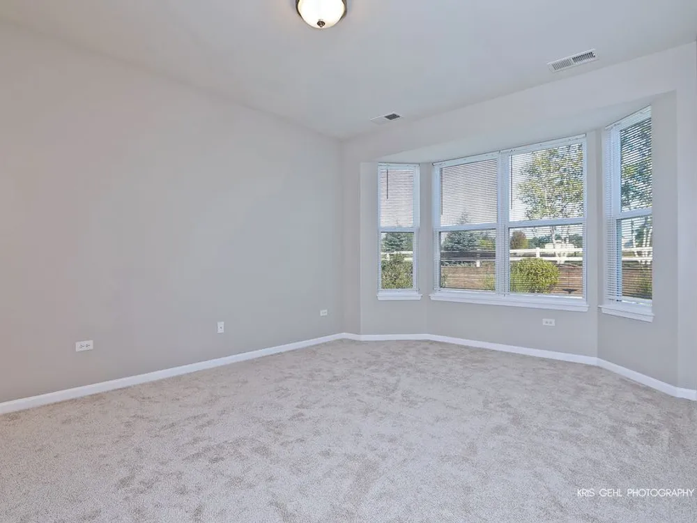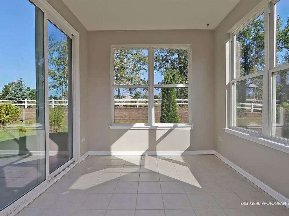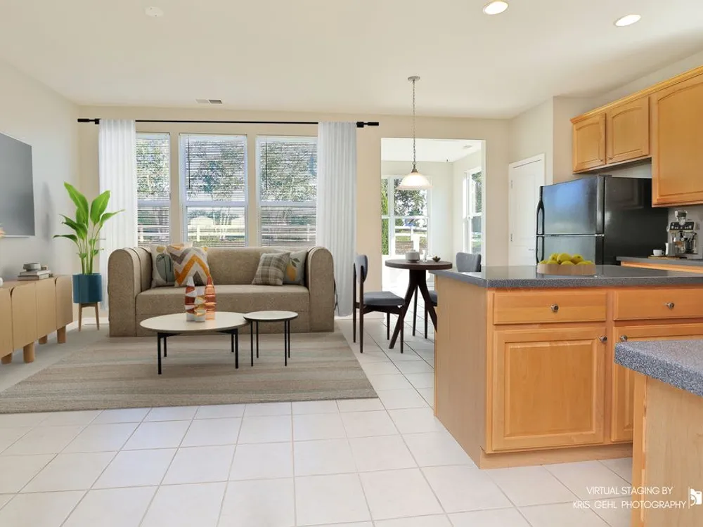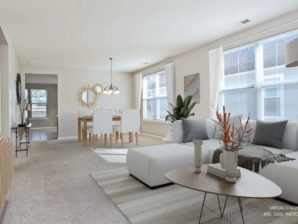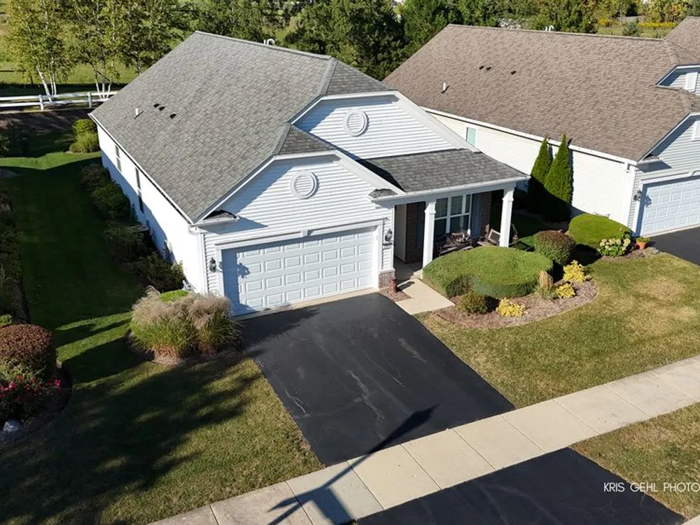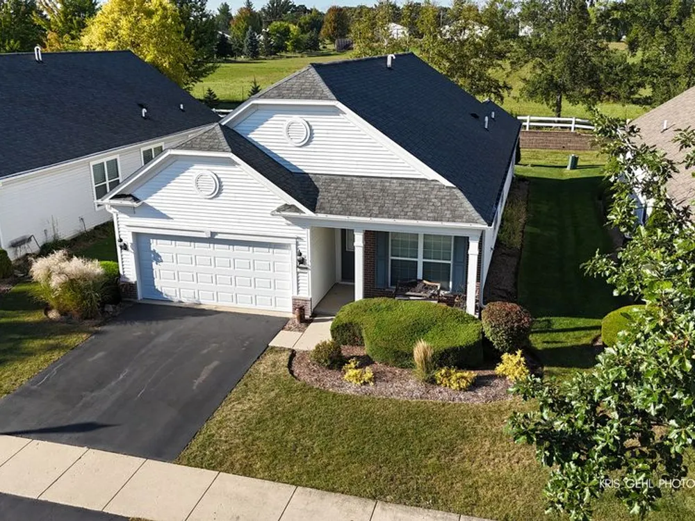 Welcome home to this spacious 3-bedroom, 2-bath ranch with a 2-car garage, perfectly situated on a premium cul-de-sac lot with no homes behind you and peaceful pond views from the front yard. The flexible front bedroom with French doors makes a great home office or den. Inside, you'll find a large living and dining room combo, a bright sunroom overlooking the patio and open space with a retaining wall, and a laundry room equipped with Kenmore front loaders (with storage drawers beneath) plus cabinets above for extra organization. The kitchen is a true highlight, featuring 42" cabinets, Corian counters, a spacious island, and all appliances included. Added perks like the 5-burner stove and garbage disposal make both cooking and cleanup a breeze. Ceramic tile floors flow through the kitchen and both full baths. The primary suite offers a generous walk-in closet with added storage, brand new carpet, and a private bath with a walk-in shower and raised dual sink vanity.The furnace and A/C have been lovingly maintained, the water heater was replaced in 2021, and this home is move-in ready. Don't miss the chance to settle in while the weather is still nice-just in time to celebrate the holidays in your new home!